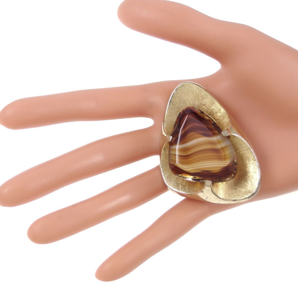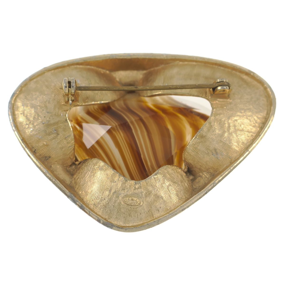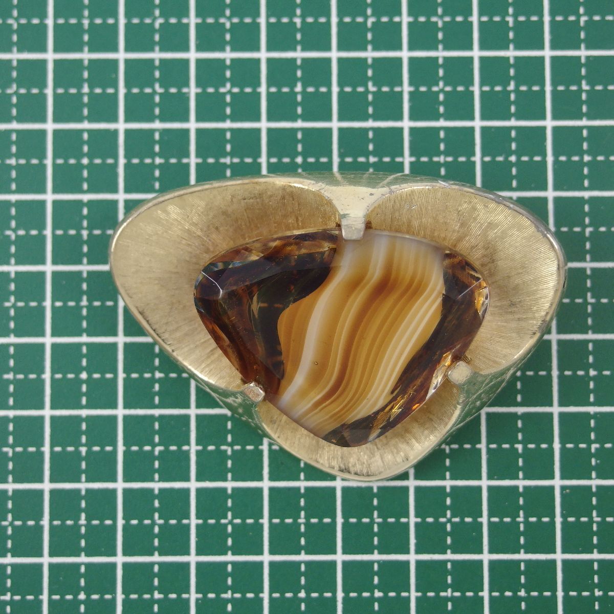 UK3944◆【SPHINX】◆ ブラウン系マーブルガラスストーン 三角形 艶消しゴールドトーン 色石 イギリス 英国 ◆ ヴィンテージブローチ ◆