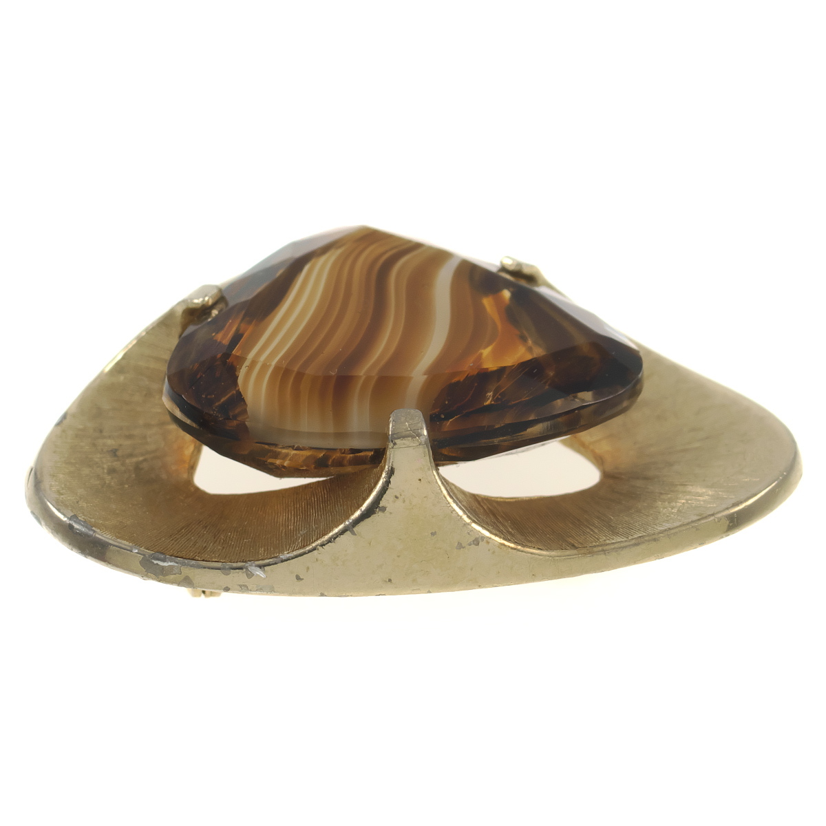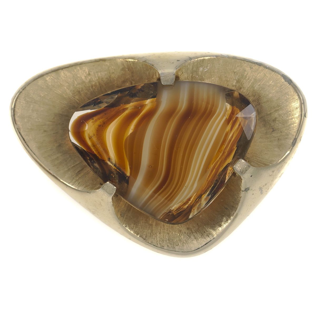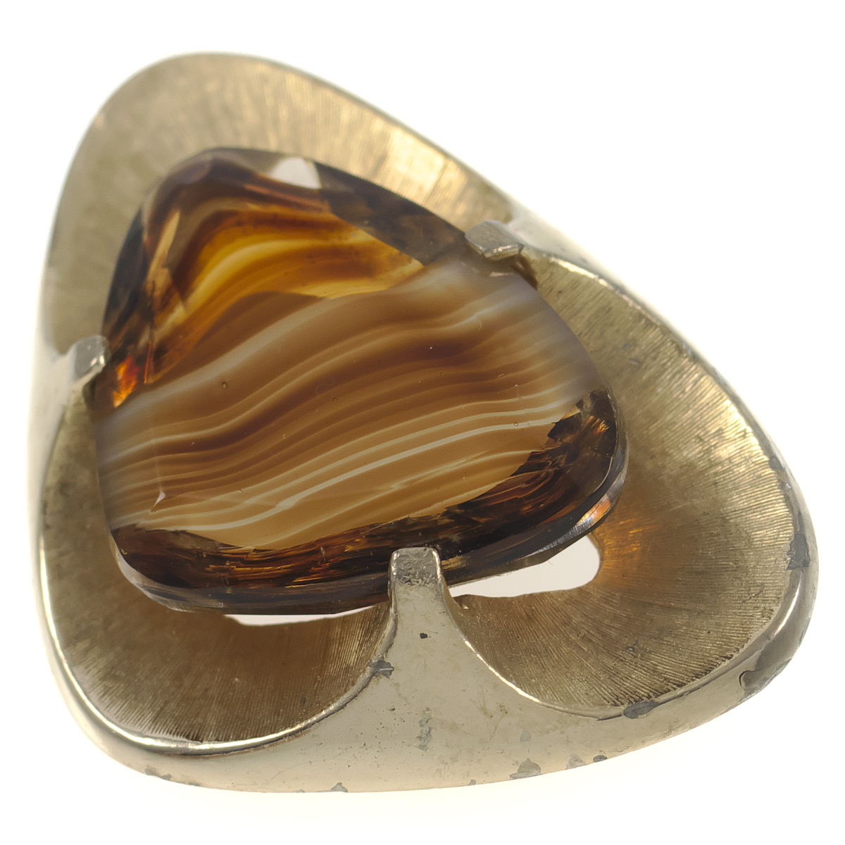 UK3944◆【SPHINX】◆ ブラウン系マーブルガラスストーン 三角形 艶消しゴールドトーン 色石 イギリス 英国 ◆ ヴィンテージブローチ ◆