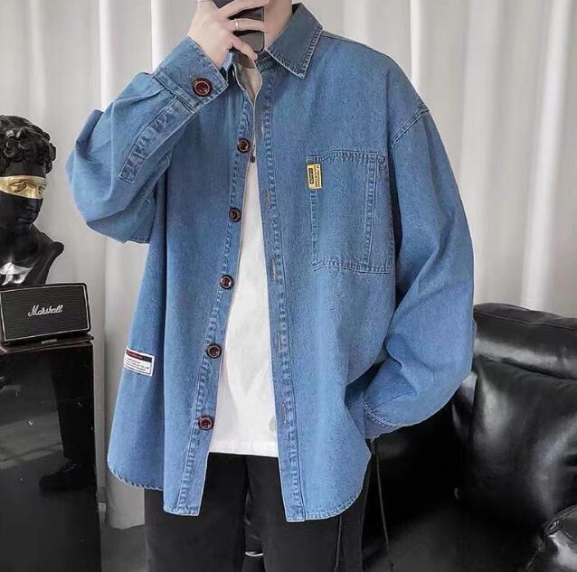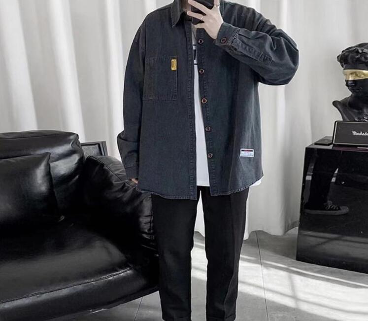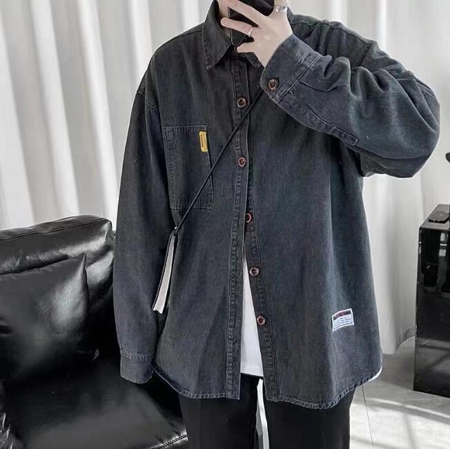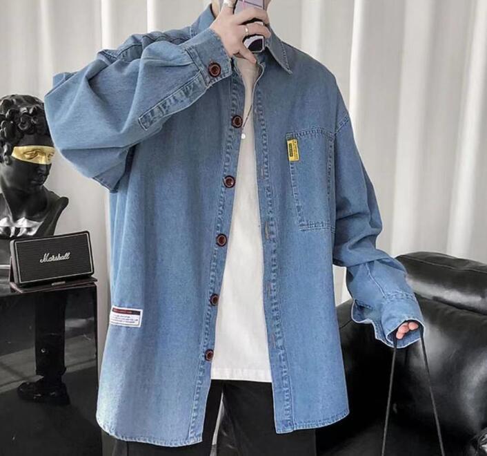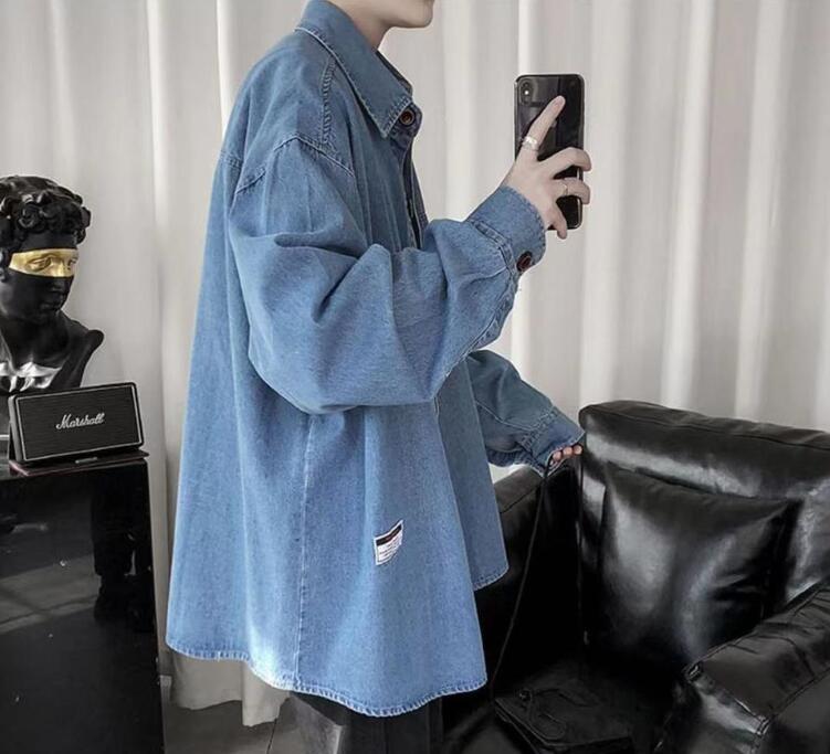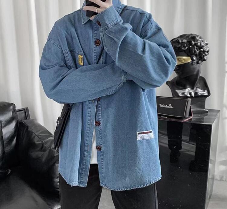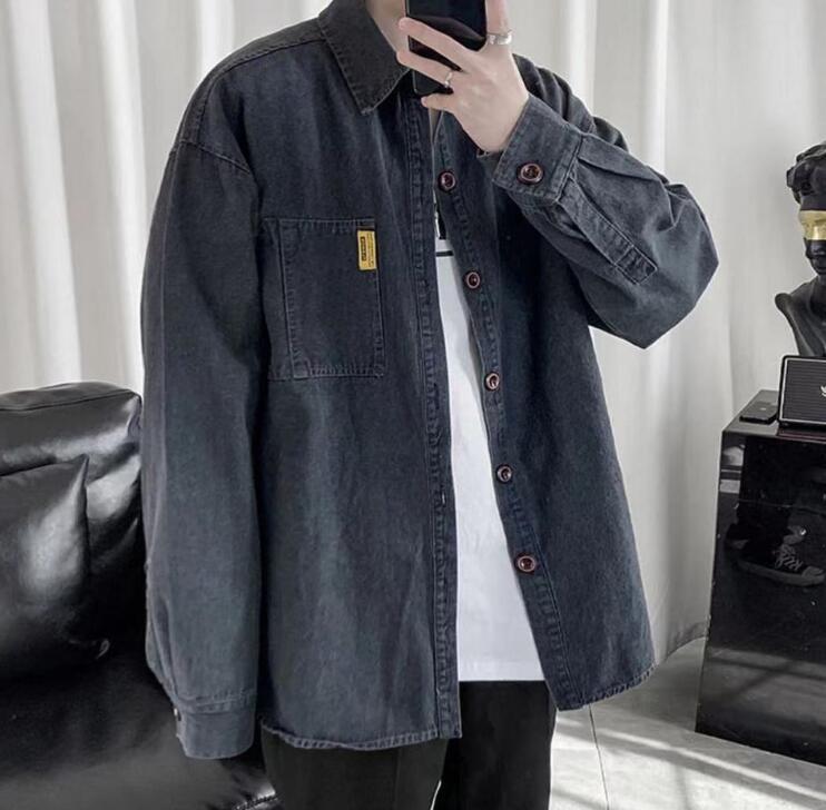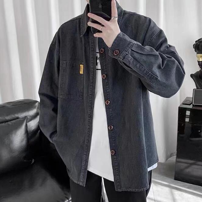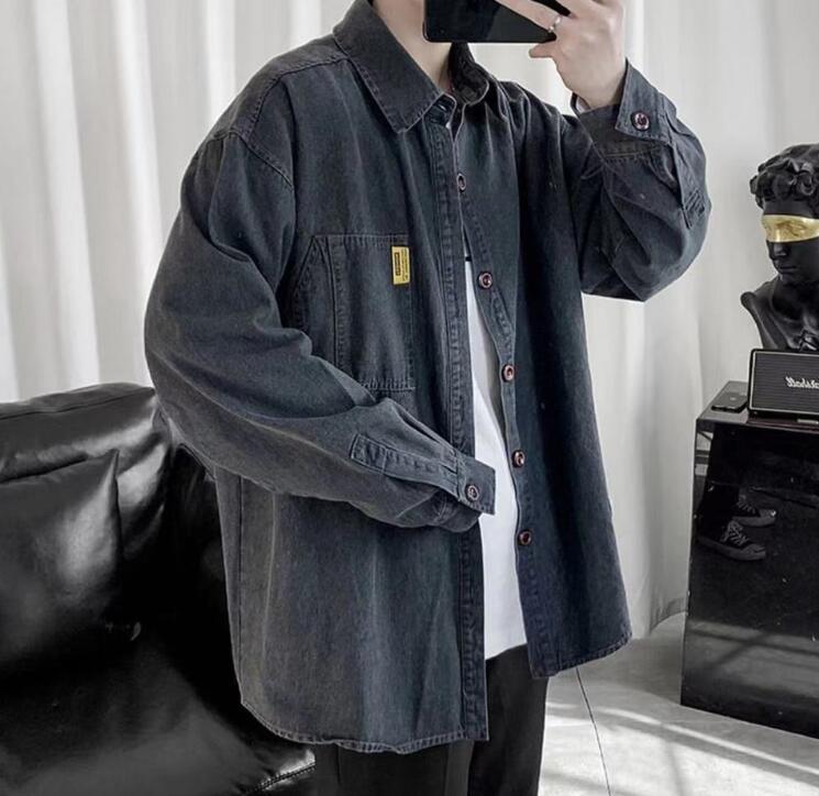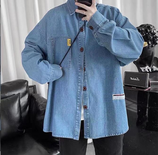 新入荷メンズ デニムシャツ アウター トップス 大きいサイズ 開襟シャツ 韓国風 長袖 春秋 無地 ゆったり カジュアル(2色S-4XL)