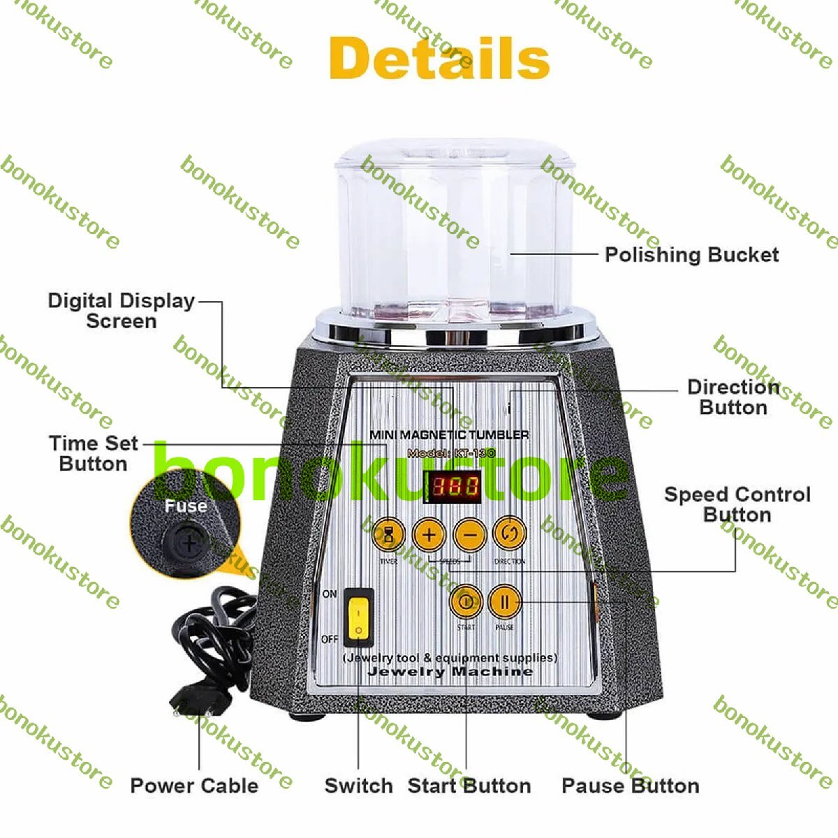 MINIマグネティックタンブラー、250Wジュエリーポリッシャーマシン、時間機能付き、600g容量、110V / 220V、ジュエリー、アクセサリー、パーツ、電子アクセサリー用