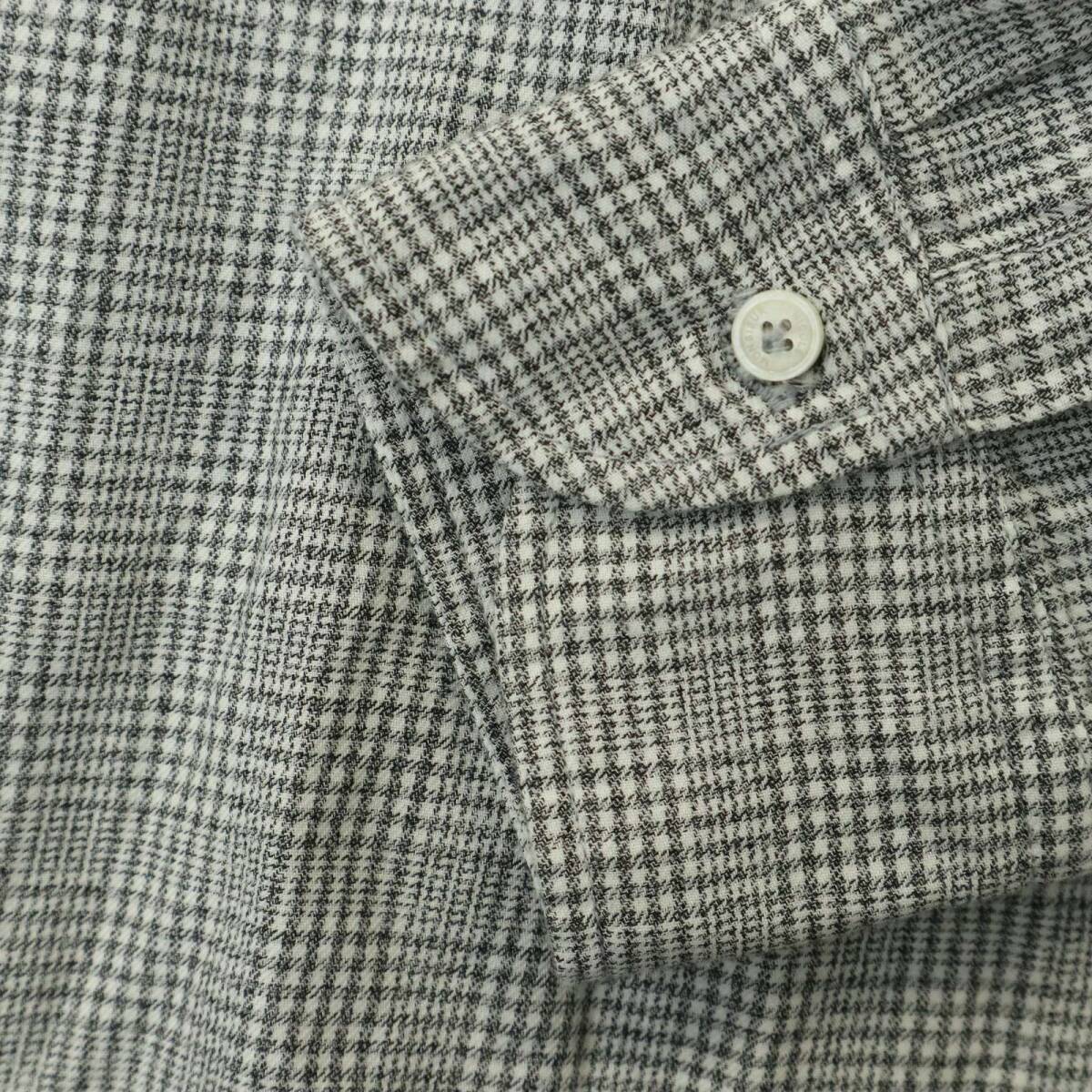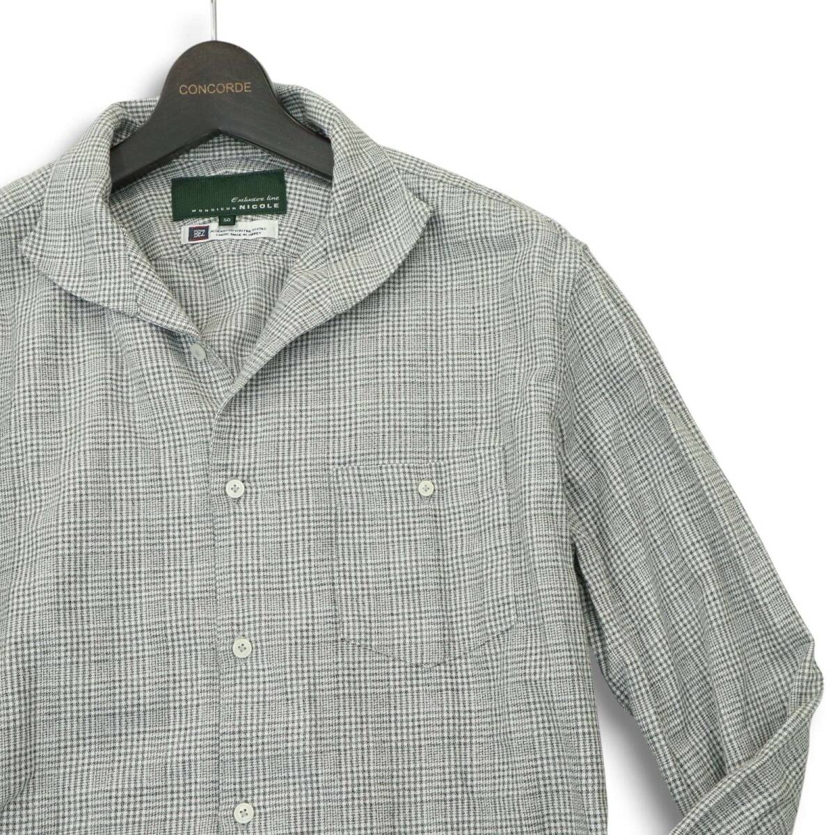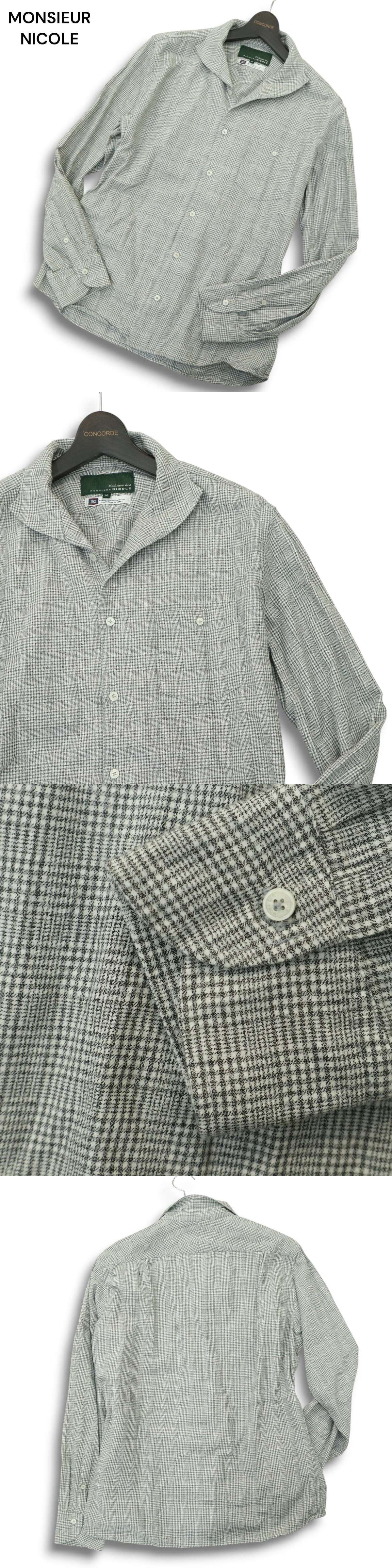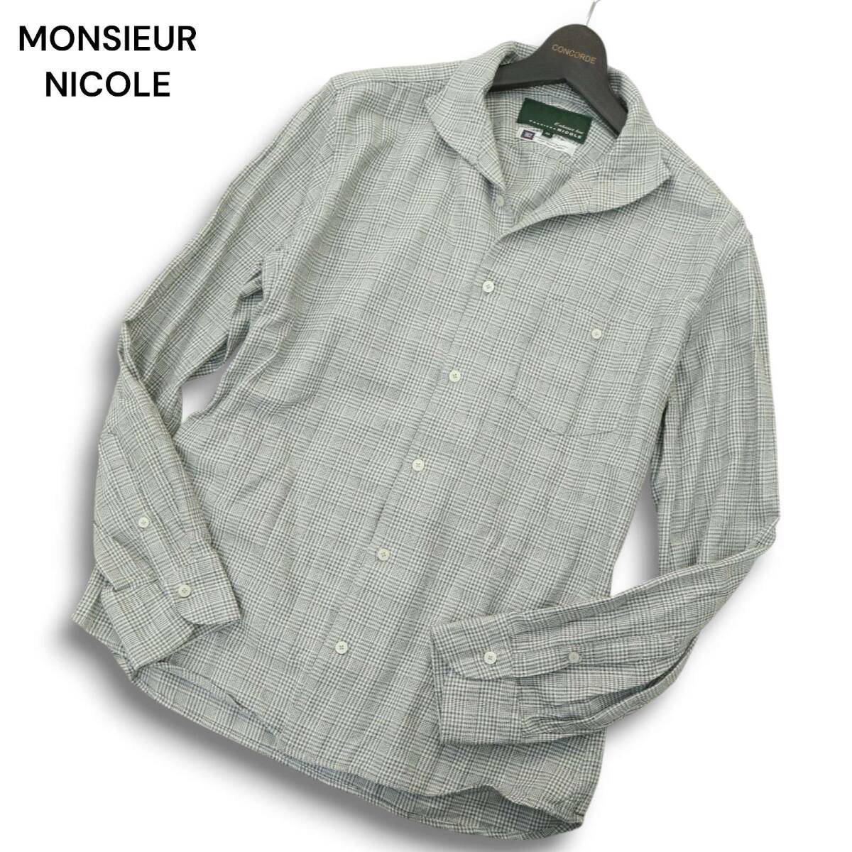 MONSIEUR NICOLE ムッシュ ニコル BEZ社★ 長袖 ドビー イタリアンカラー グレンチェック シャツ Sz.50 メンズ グレー