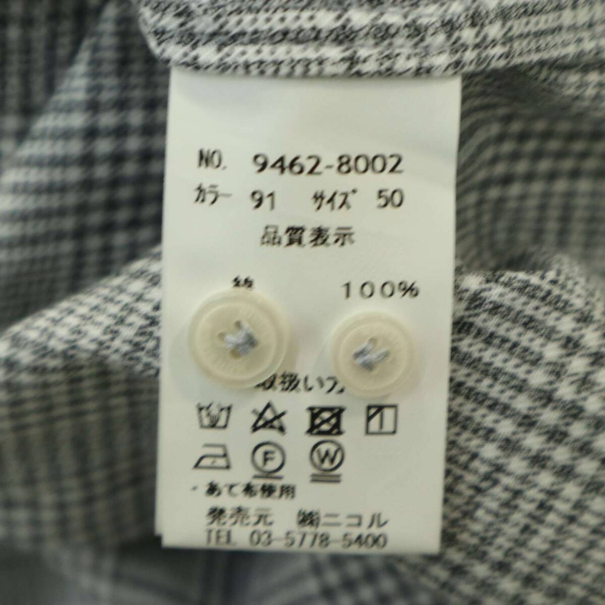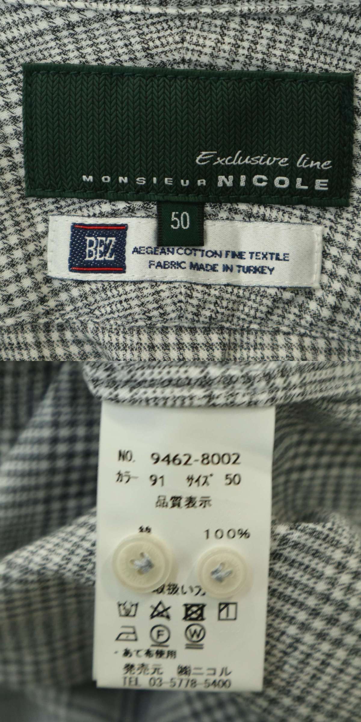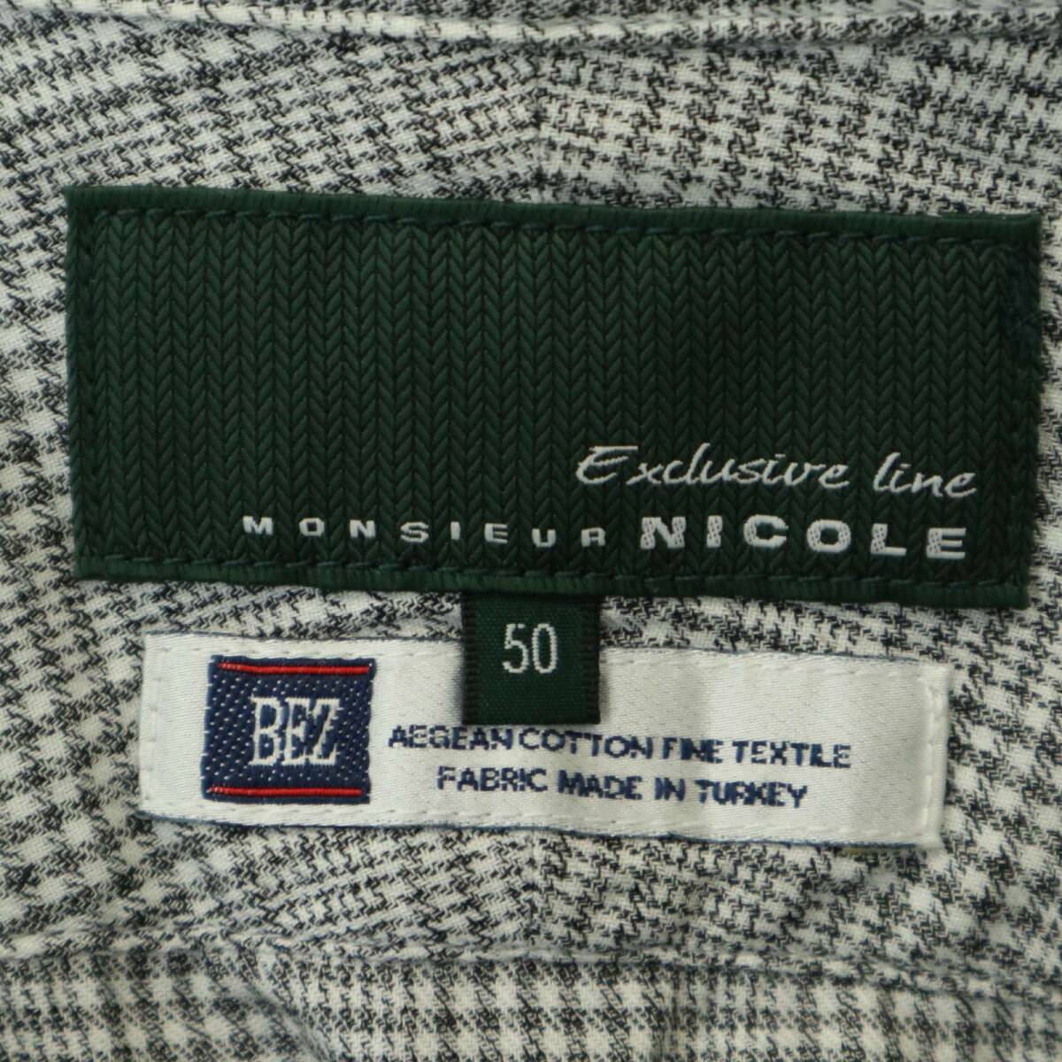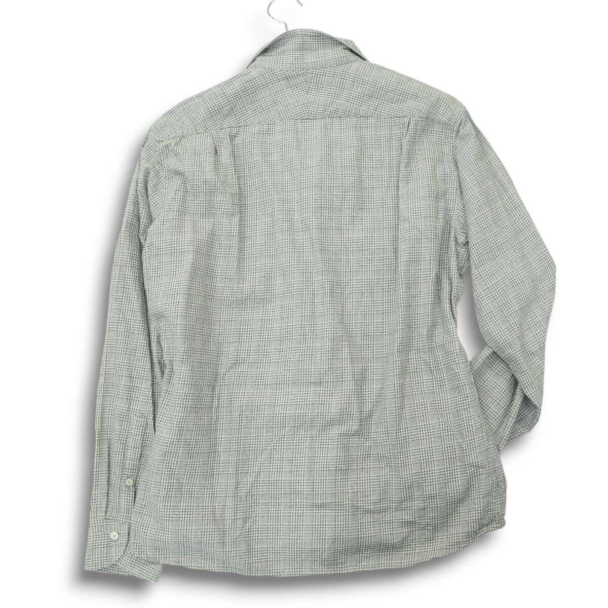 MONSIEUR NICOLE ムッシュ ニコル BEZ社★ 長袖 ドビー イタリアンカラー グレンチェック シャツ Sz.50 メンズ グレー