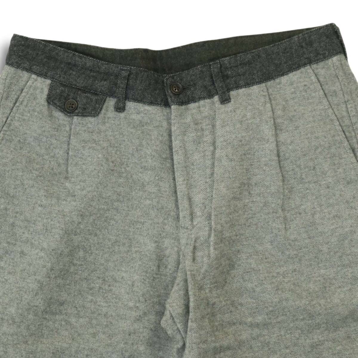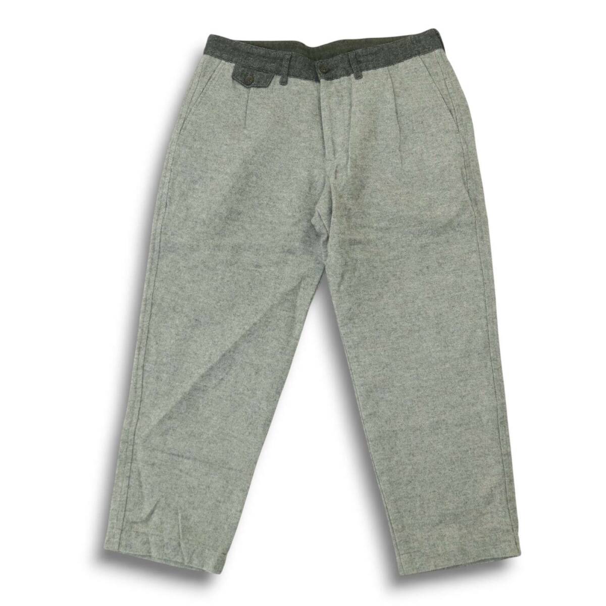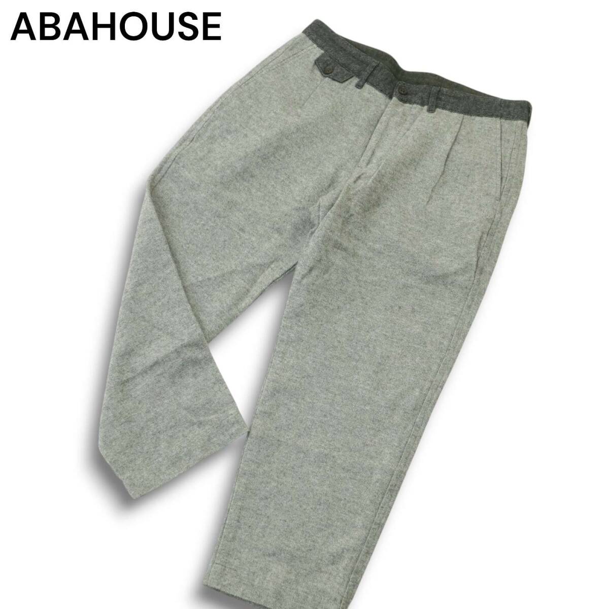 ABAHOUSE アバハウス 秋冬 デニム切替★ タック入り ウール混 ツイード テーパード パンツ Sz.3 メンズ グレー