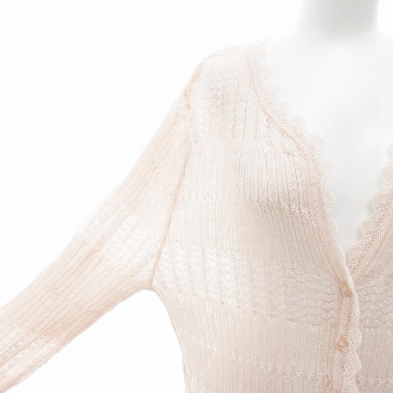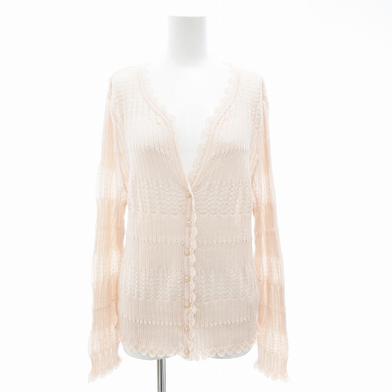 23区 オンワード樫山 美品 カーディガン ニット Vネック レース 46 XXL ピンク 大きいサイズ /AE ■GY99 レディース