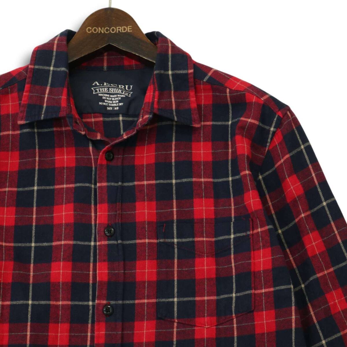 美品★ A.ECRU ABAHOUSE アバハウス 秋冬 長袖 チェック ネル シャツ Sz.48 メンズ