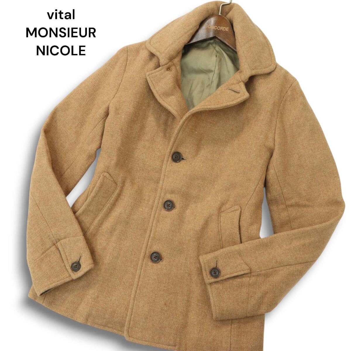 vital MONSIEUR NICOLE ムッシュ ニコル 秋冬 メルトン ウール★ シングル コート Sz.46 メンズ ベージュ