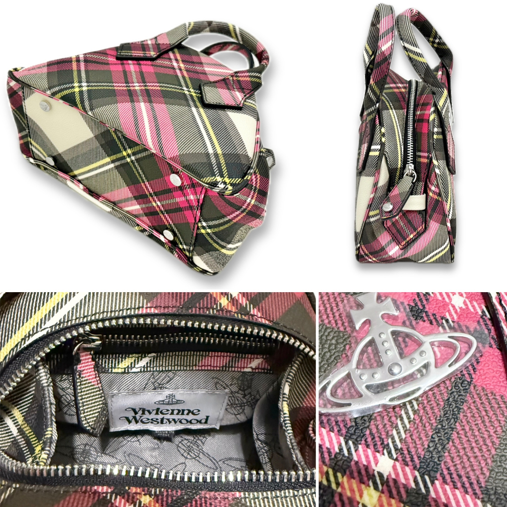 英国発の人気ブランド【Vivienne Westwood(ヴィヴィアン・ウエストウッド)】から、ブランドらしいタータンチェック柄とオーブロゴが目を引く2WAYバッグが登場。ハンドバッグとしても、付属のショルダーストラップをつけてクロスボディとしても使える便利な仕様です。 鮮やかなピンク×カーキの配色がコーデのアクセントにぴったり。コンパクトながらもマチがしっかりあり、財布・スマホ・コスメなど必需品がしっかり収納可能。個性派ファッションを楽しみたい方におすすめの一点です。 |