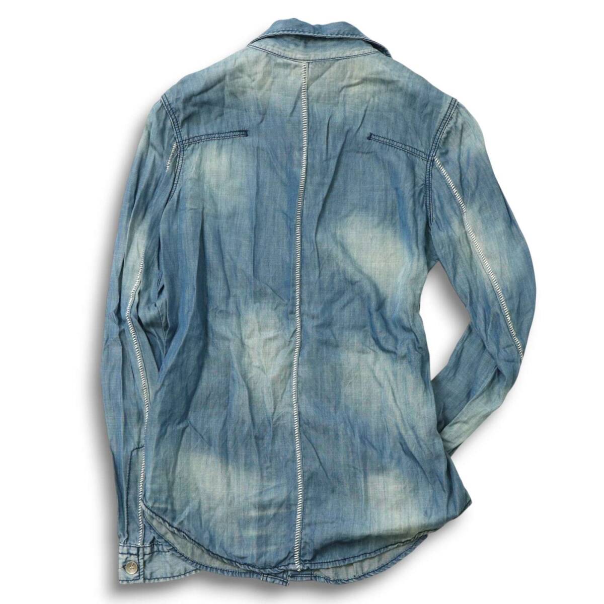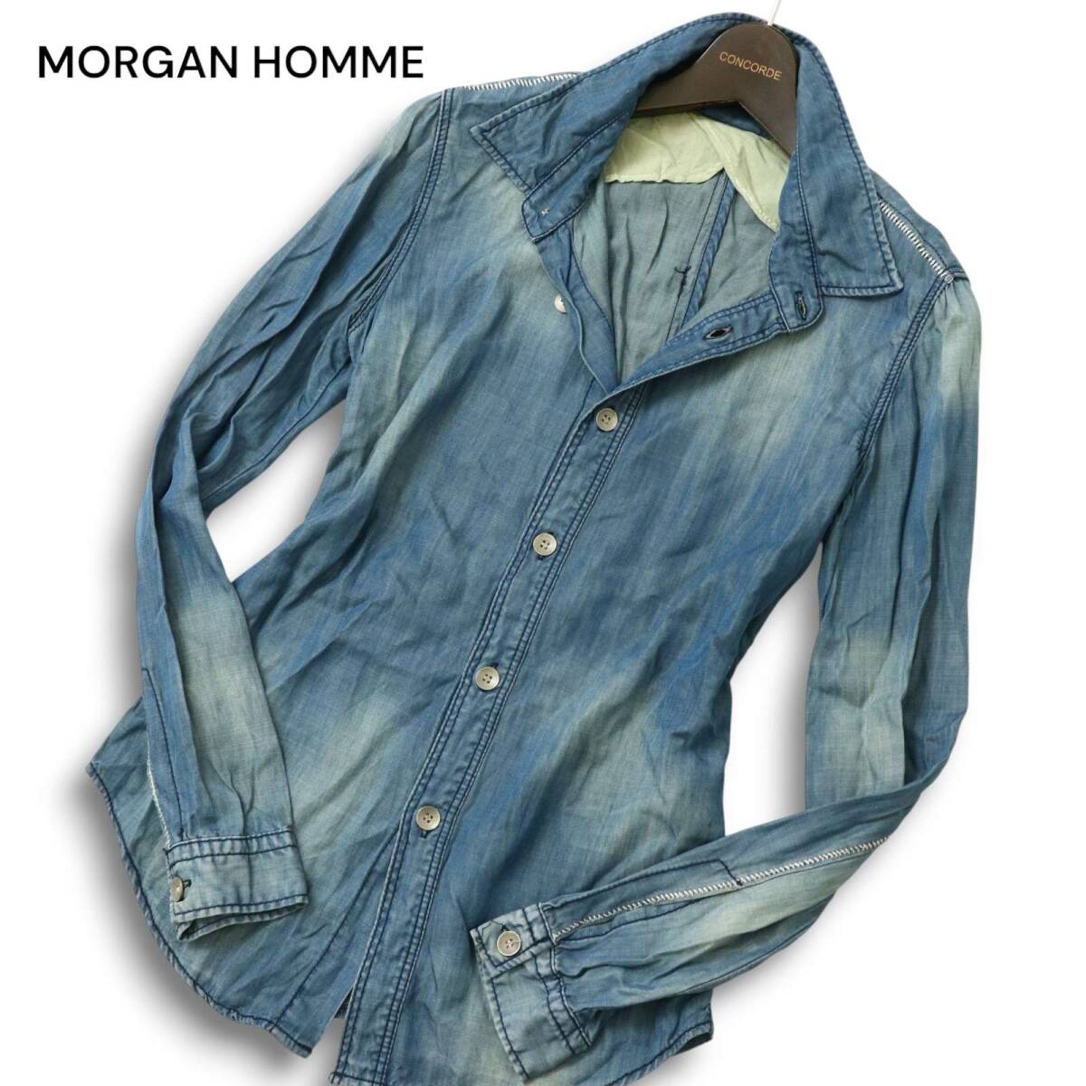 MORGAN HOMME モルガン オム 通年 USED加工★ テンセル 長袖 デニム シャツ Sz.M メンズ インディゴ