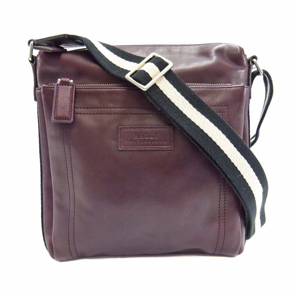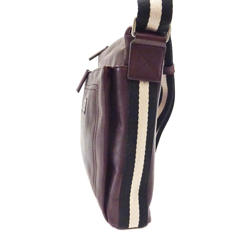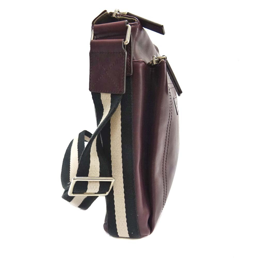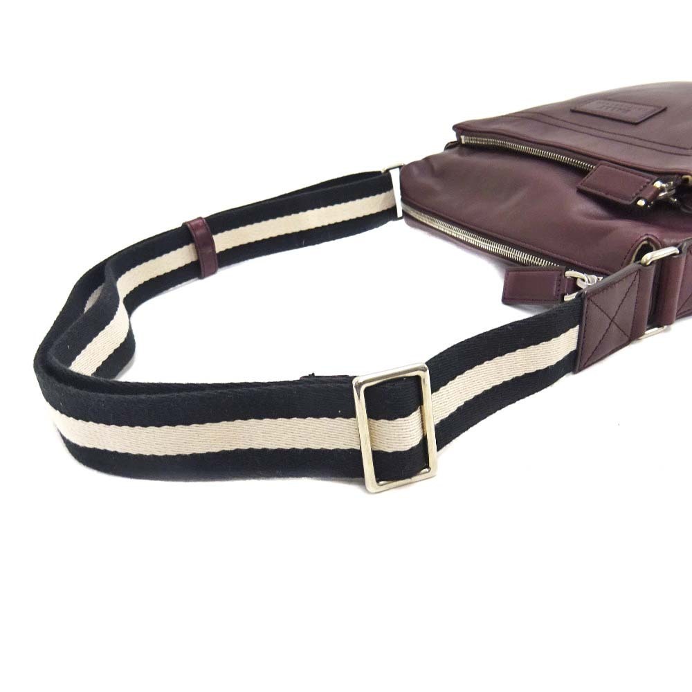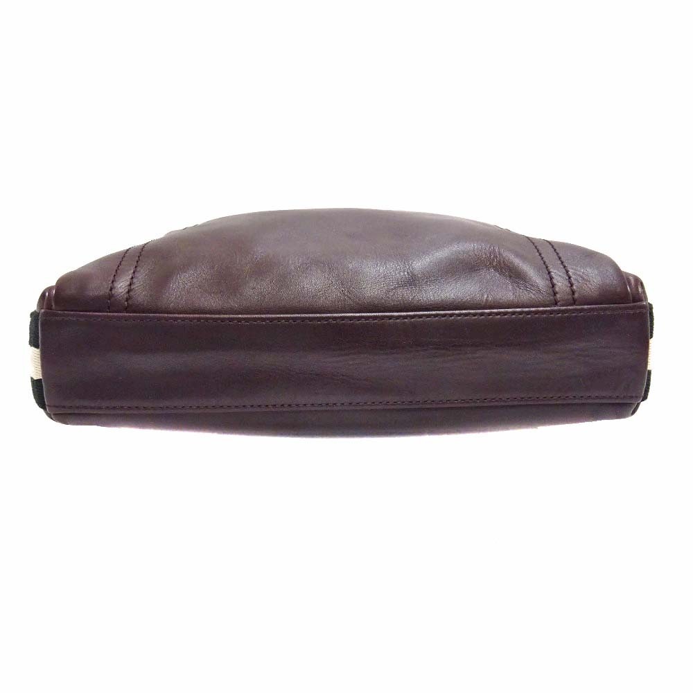 バリー ストライプ ショルダーバッグ ユニセックス レザー キャンバス ボルドー 中古 送料無料 BALLY