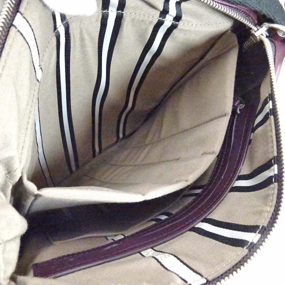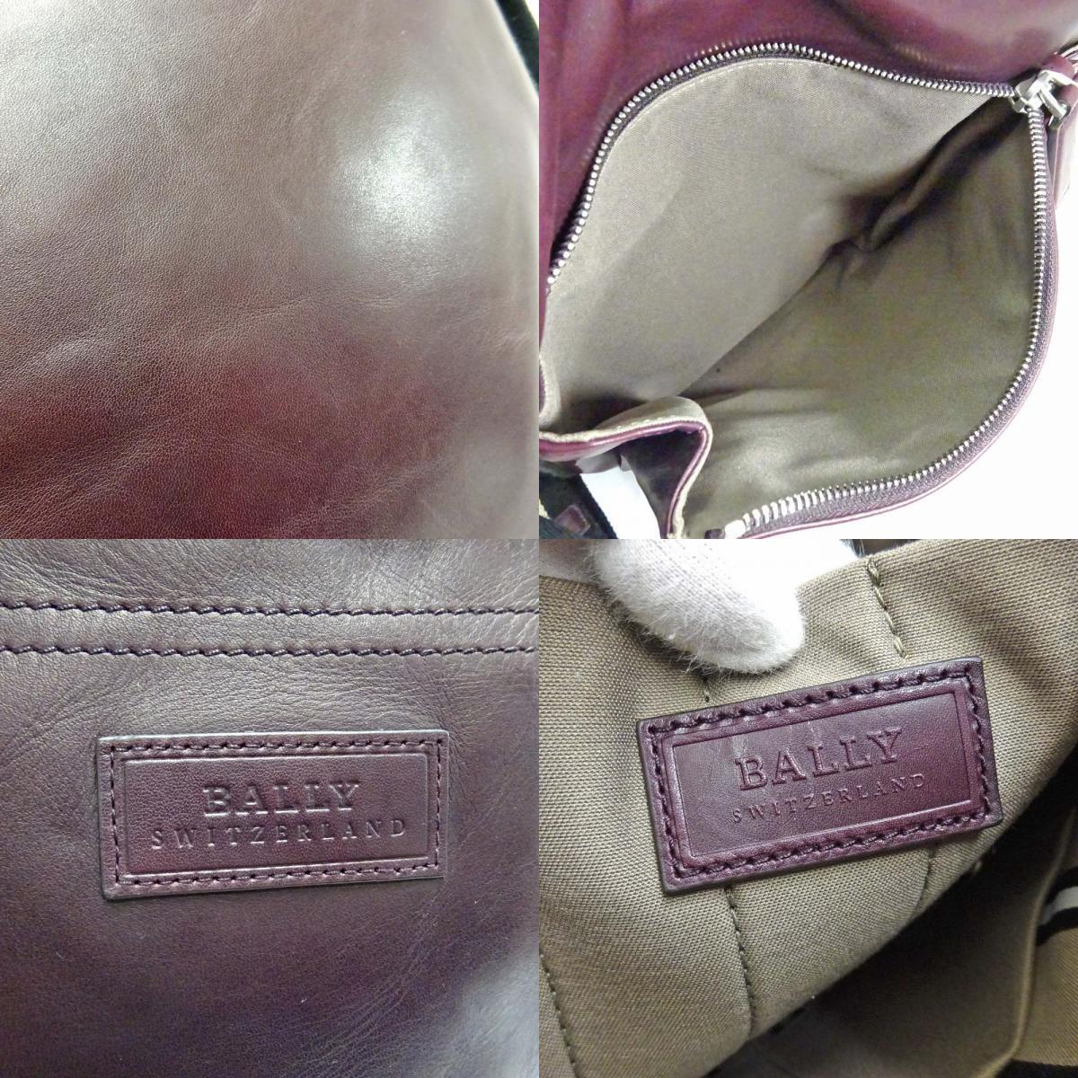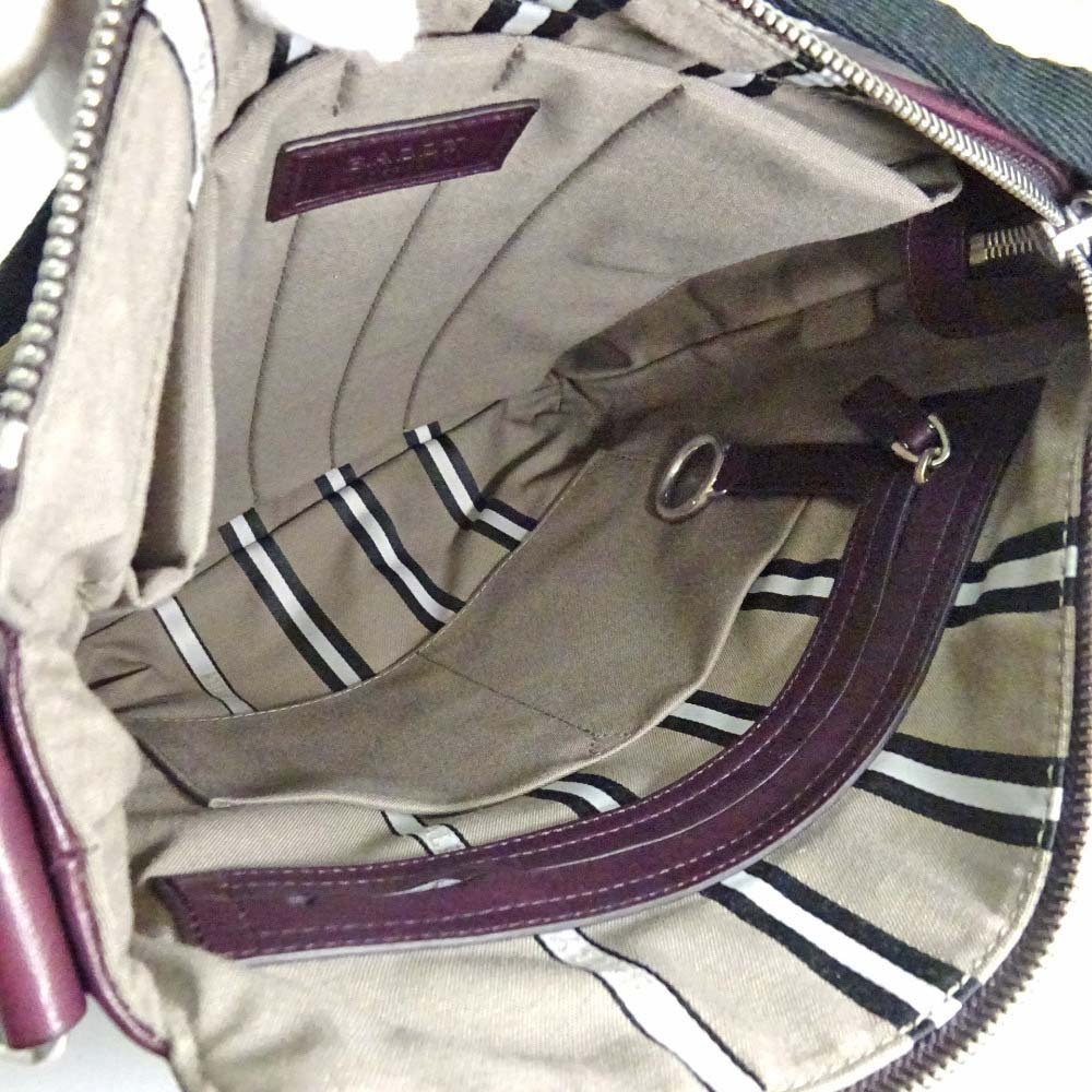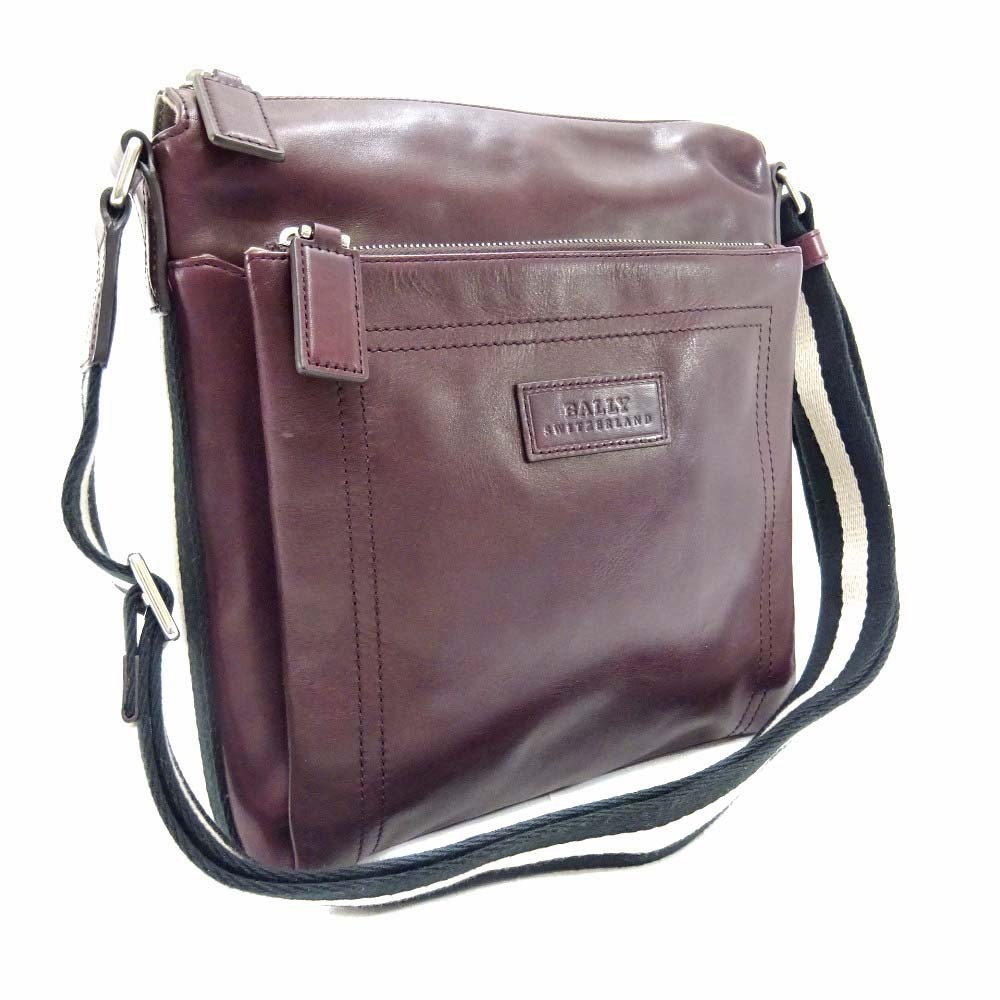 バリー ストライプ ショルダーバッグ ユニセックス レザー キャンバス ボルドー 中古 送料無料 BALLY