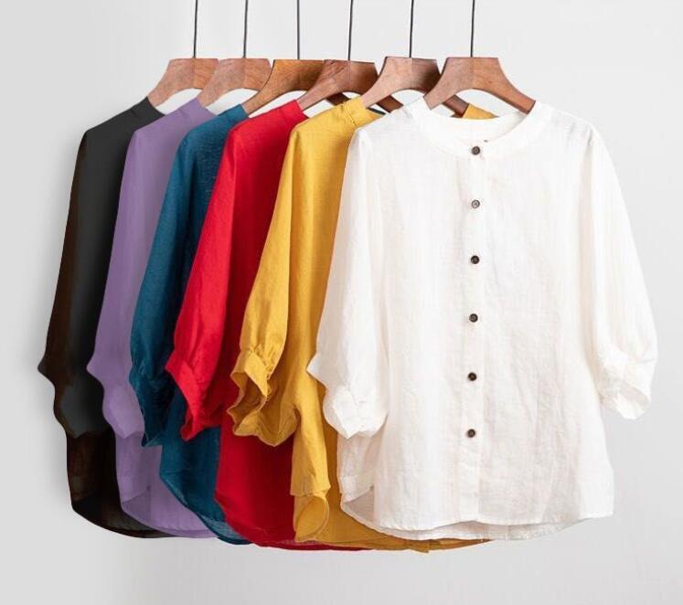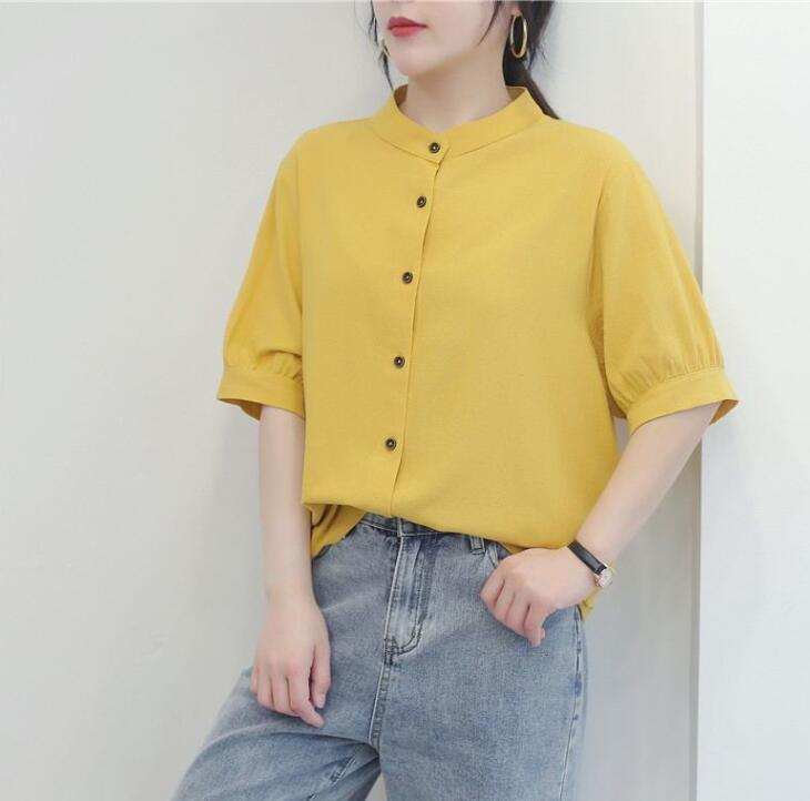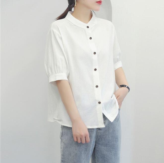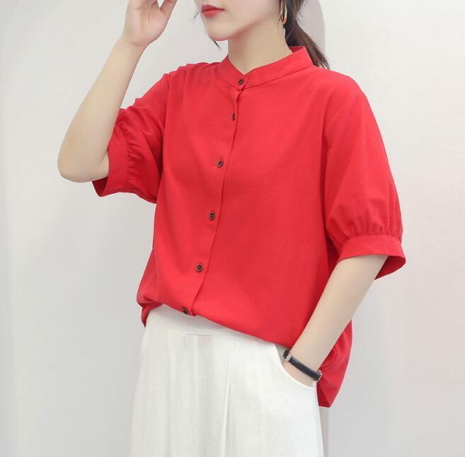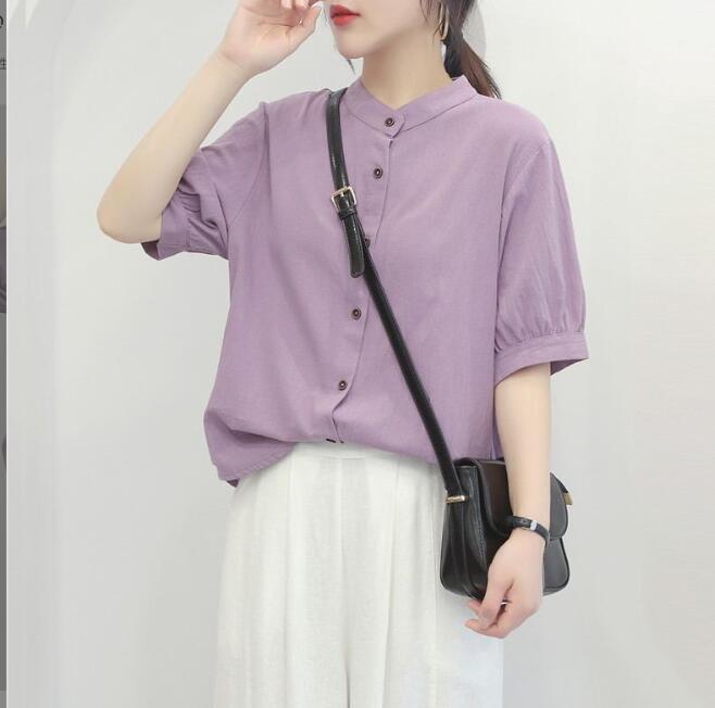 新作夏 重ね着 涼しい 半袖シャツ ブラウス レディース トップス 綿麻 ゆったり 無地 ファッション サイズ 2XL