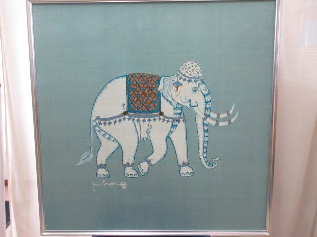 | ご覧頂きありがとうございます。 | ジム・トンプソンJim Thompson 「象図」タイシルク 額装 80cm×80cm 大型作品 タペストリー 送料無料! ot2-170 250705 |