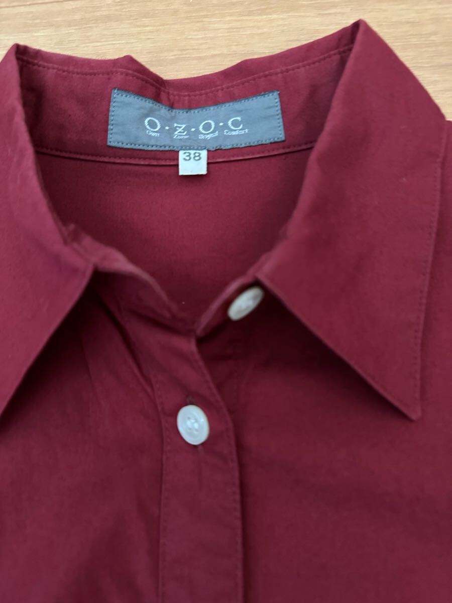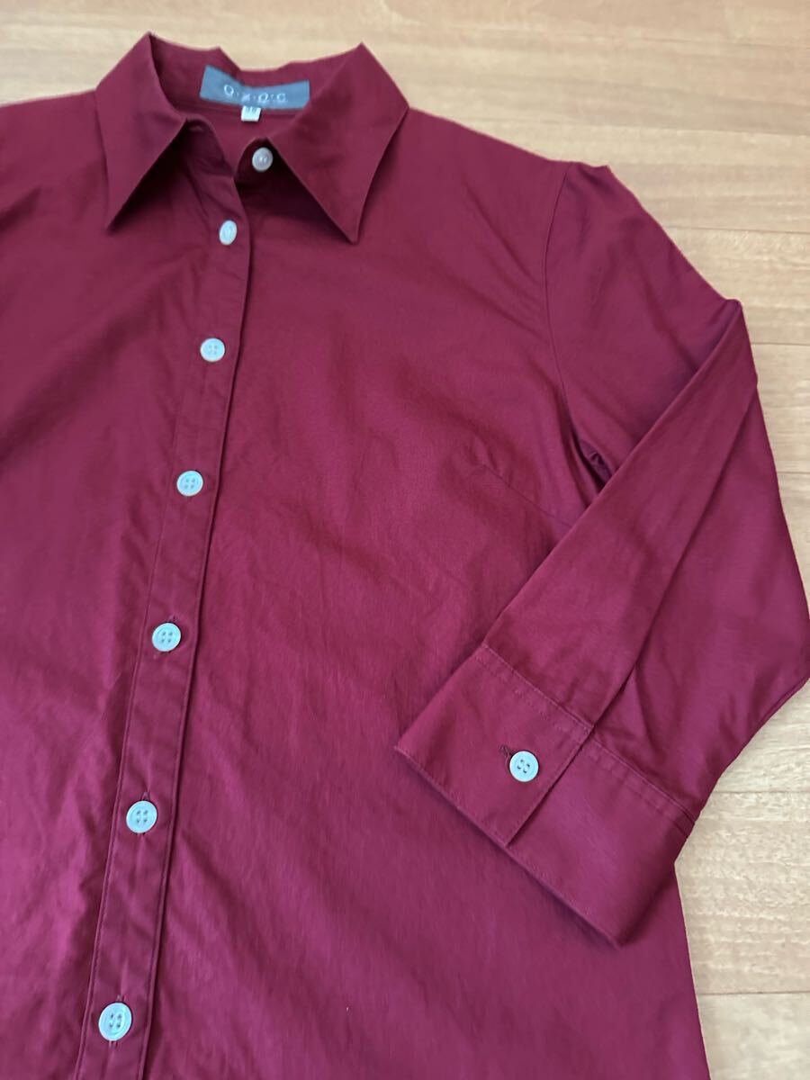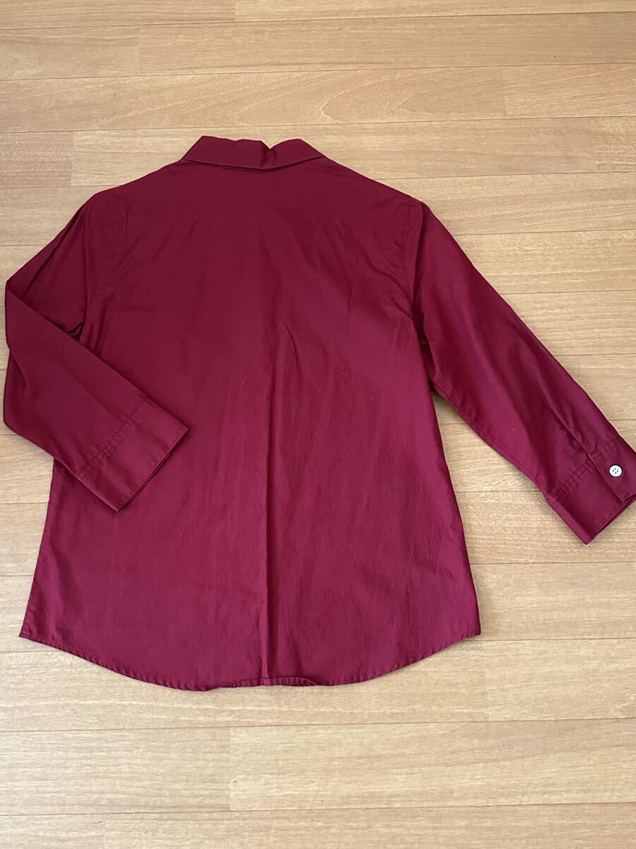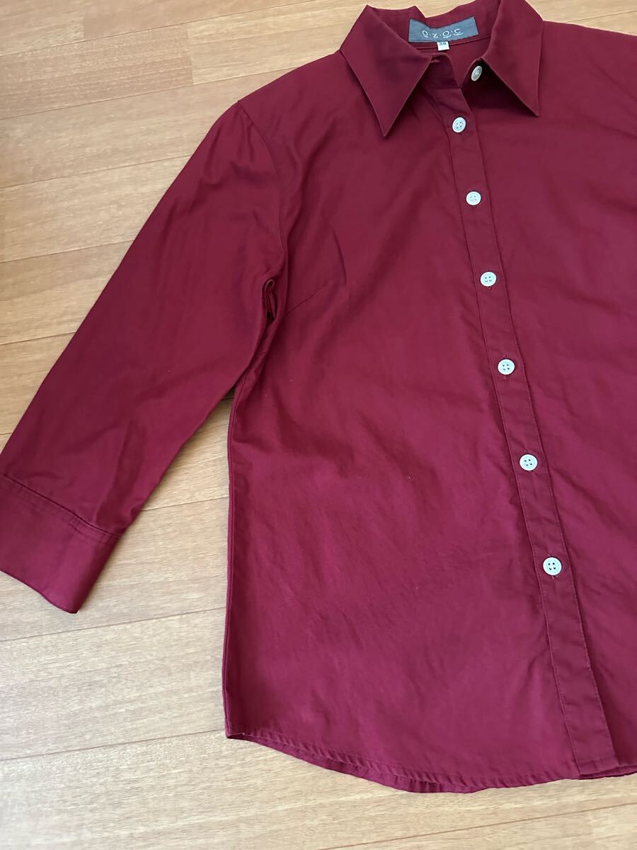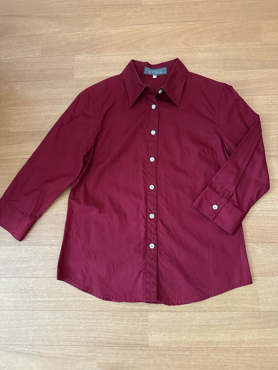 ★オゾックのストレッチブラウスです。サイズは38、M。着丈約59cm、お色バーガンディ、暗めの赤です。