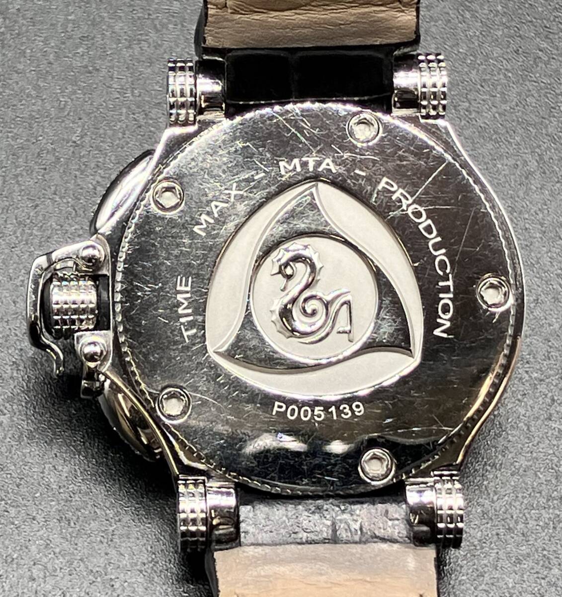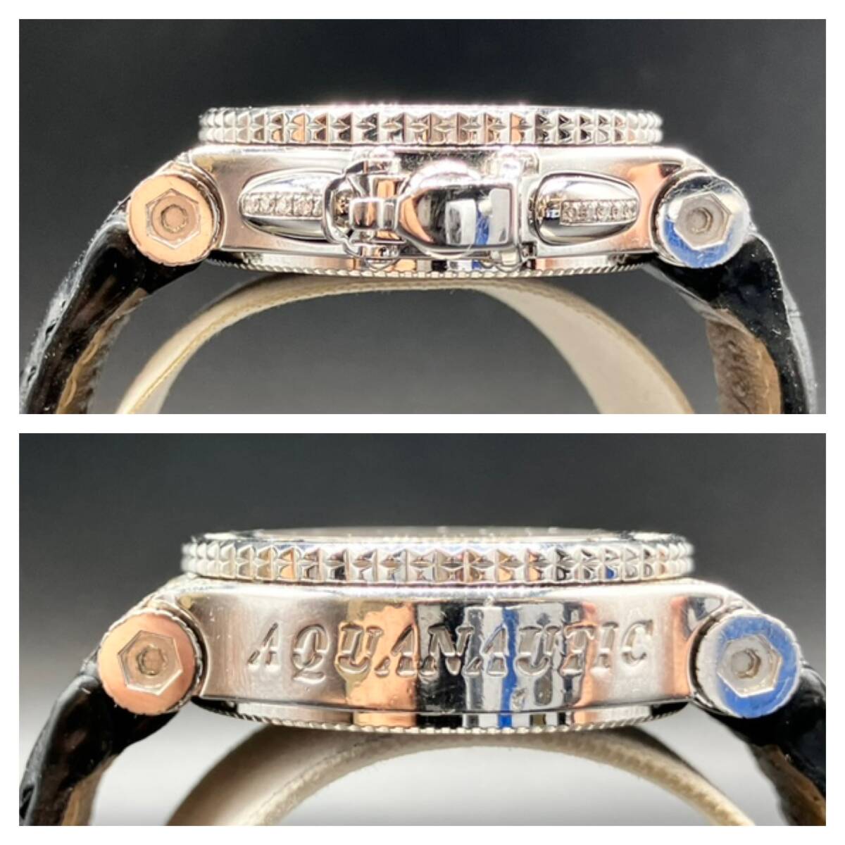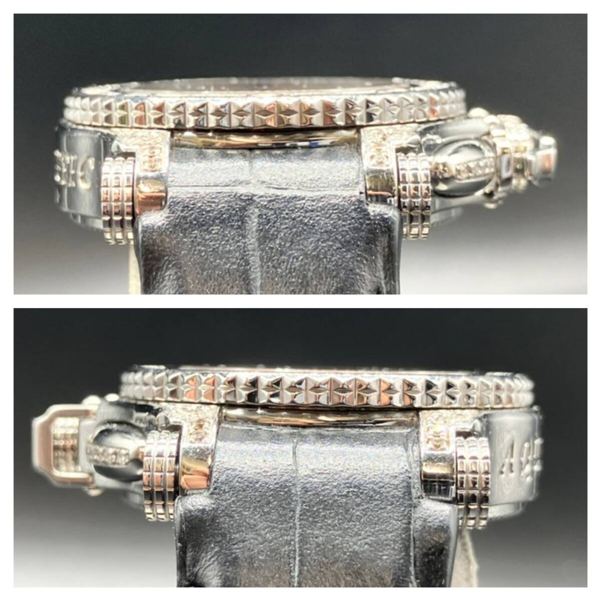 動作 リューズ稼働確認済 デイト動作確認済 クロノグラフ ボタン動作確認済 状態 ケースキズ、打こんあり 裏蓋キズあり ベルト傷みあり サファイアガラス | ||||||