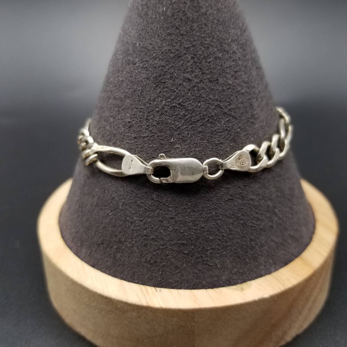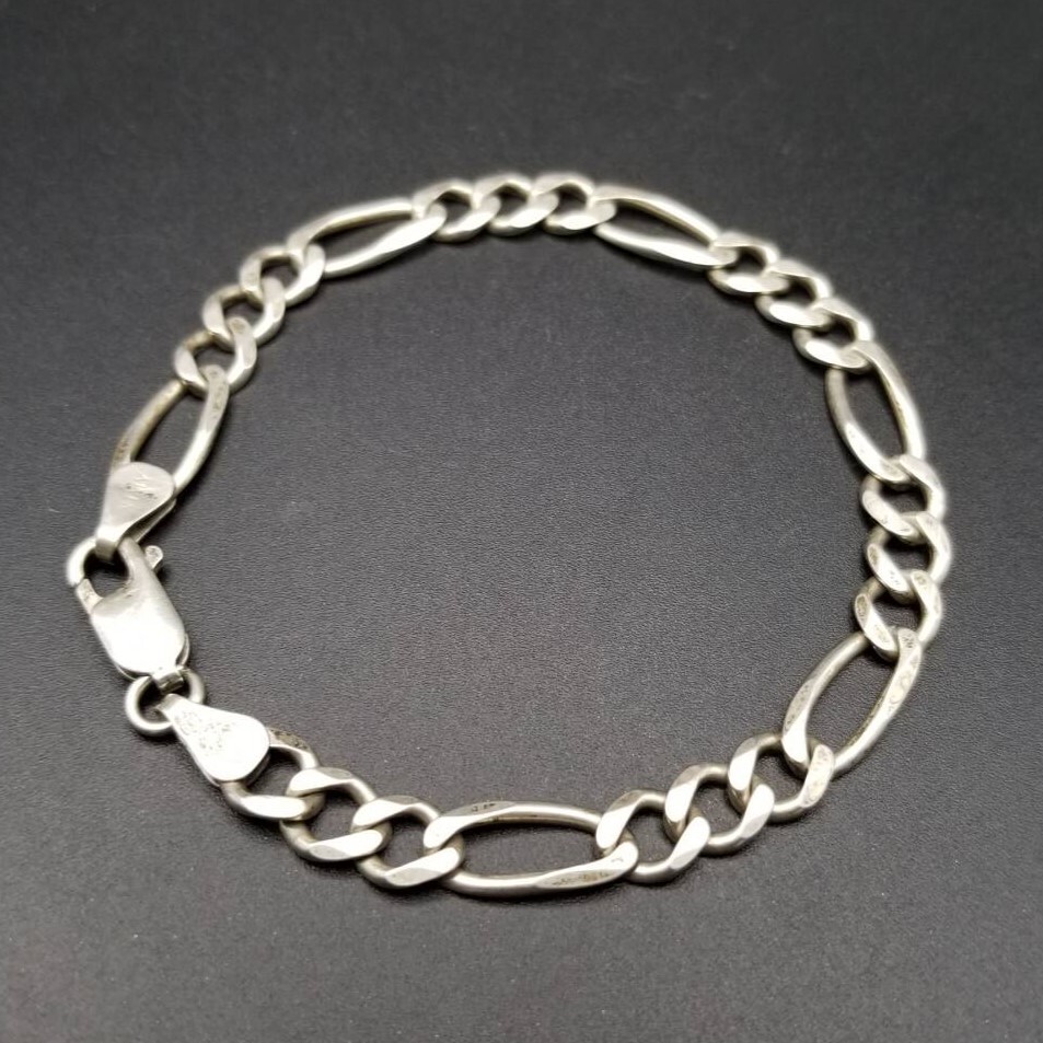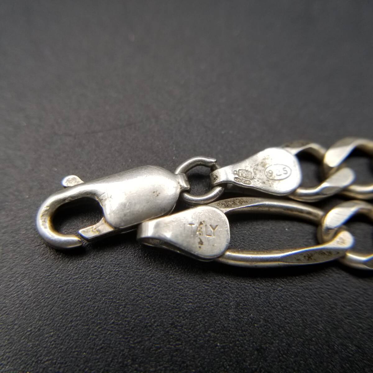 イタリア製 シンプル フィガロチェーン 925 シルバー ヴィンテージ ブレスレット 英国 Sheffield Convention マーク ユニセックス Y23-D