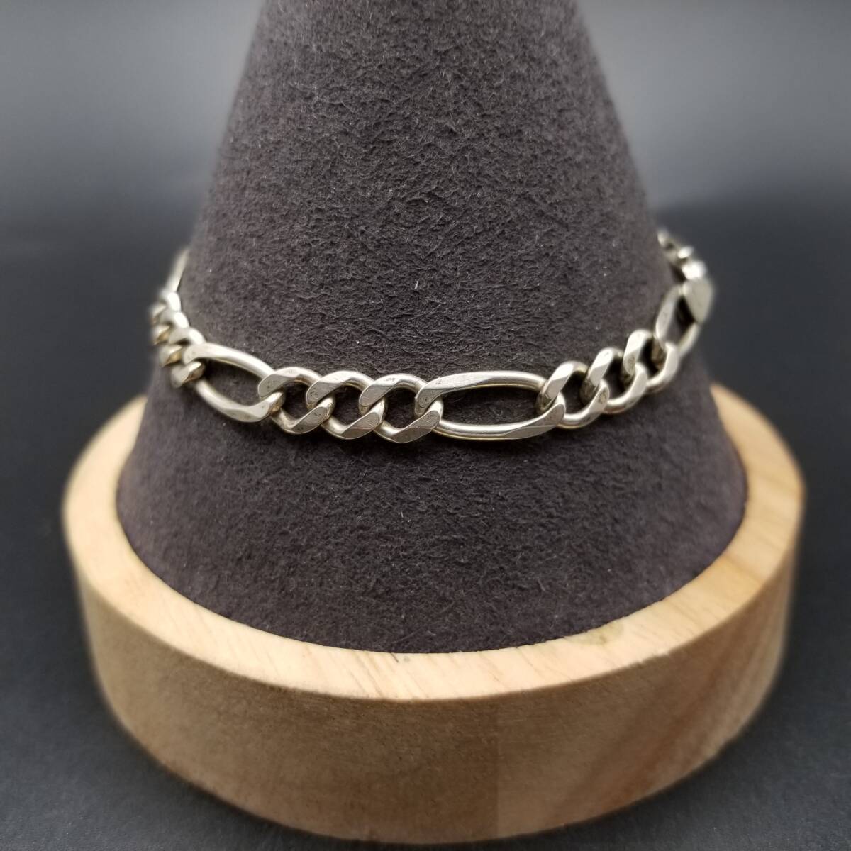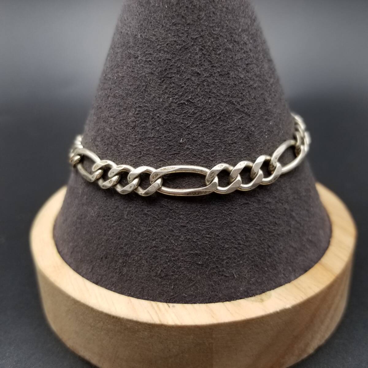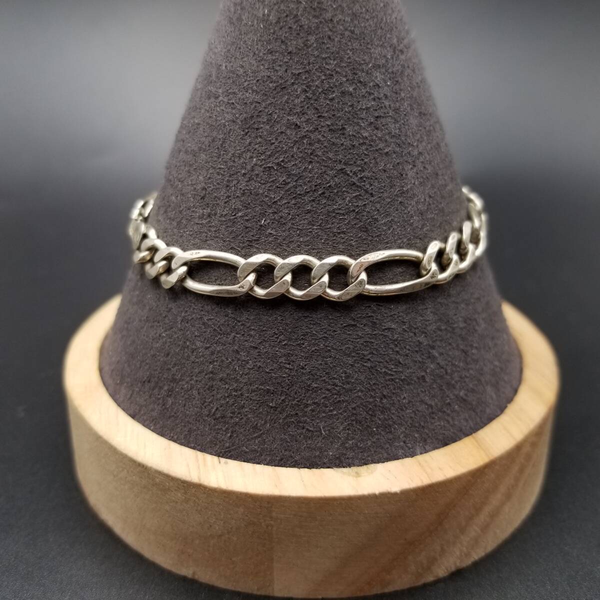 イタリア製 シンプル フィガロチェーン 925 シルバー ヴィンテージ ブレスレット 英国 Sheffield Convention マーク ユニセックス Y23-D