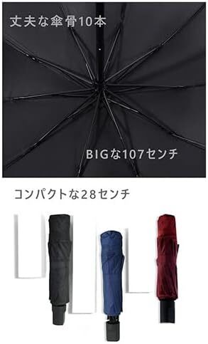 ワインレッド 折りたたみ傘 晴雨兼用 日傘 メンズ レディース ビッグ 撥水 耐風 遮光 軽量 三つ折り 傘骨10本 紫外線