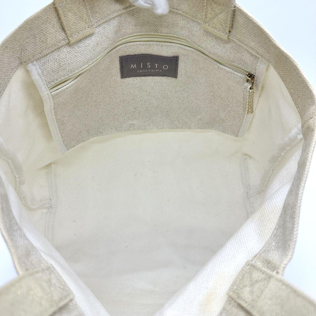 ホワイト・アイボリーカラーのキャンバスにラメ入りのかわいいバッグです。
