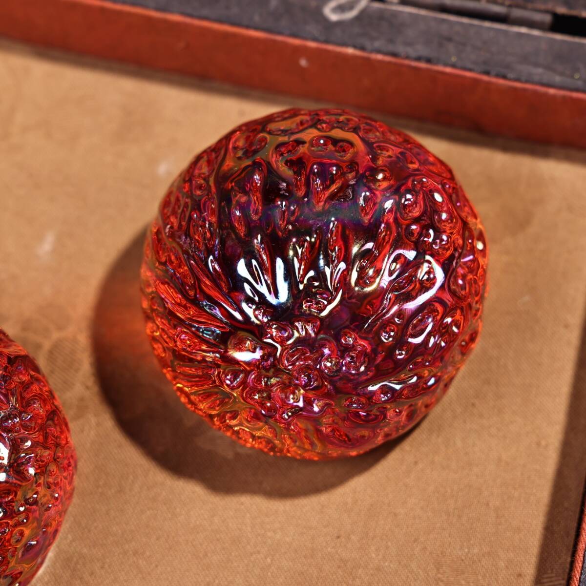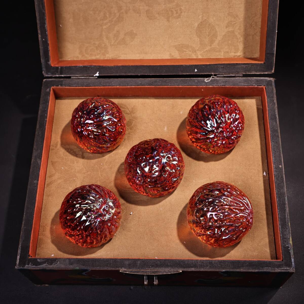 清時代 宮廷御藏 古宝石彫 隕石 球 紅宝石 手把件 手球 箱付 時代物 古董品 骨董 旧家蔵出し 唐物 中国古玩 古美術