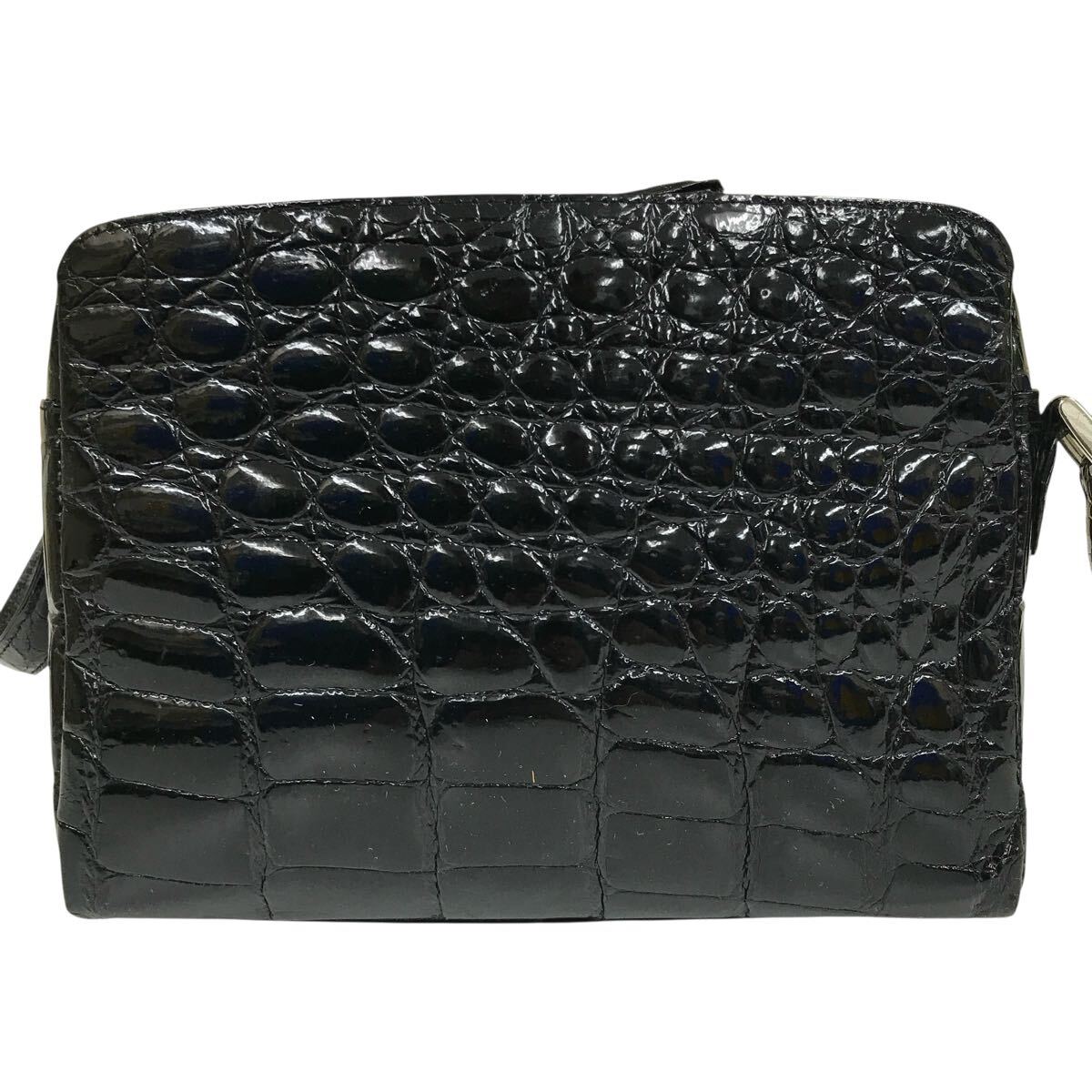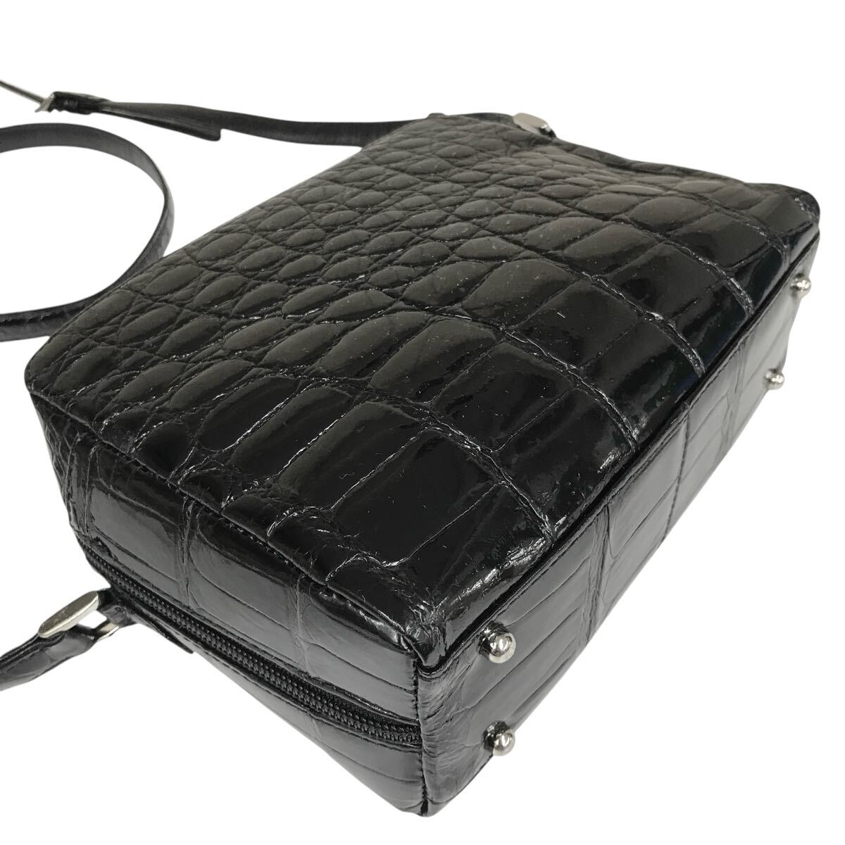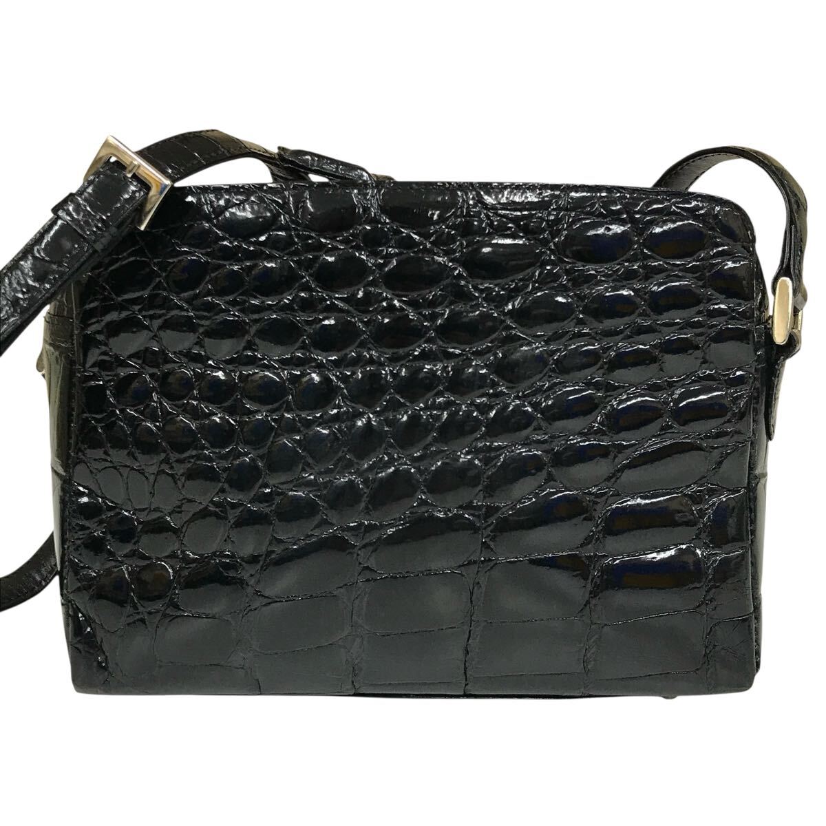【JRA】本物 クロコダイル 黒 ショルダーバッグ 斜め掛け ポシェット サコッシュ ワニ革 エキゾチックレザー メンズ レディース 日本製