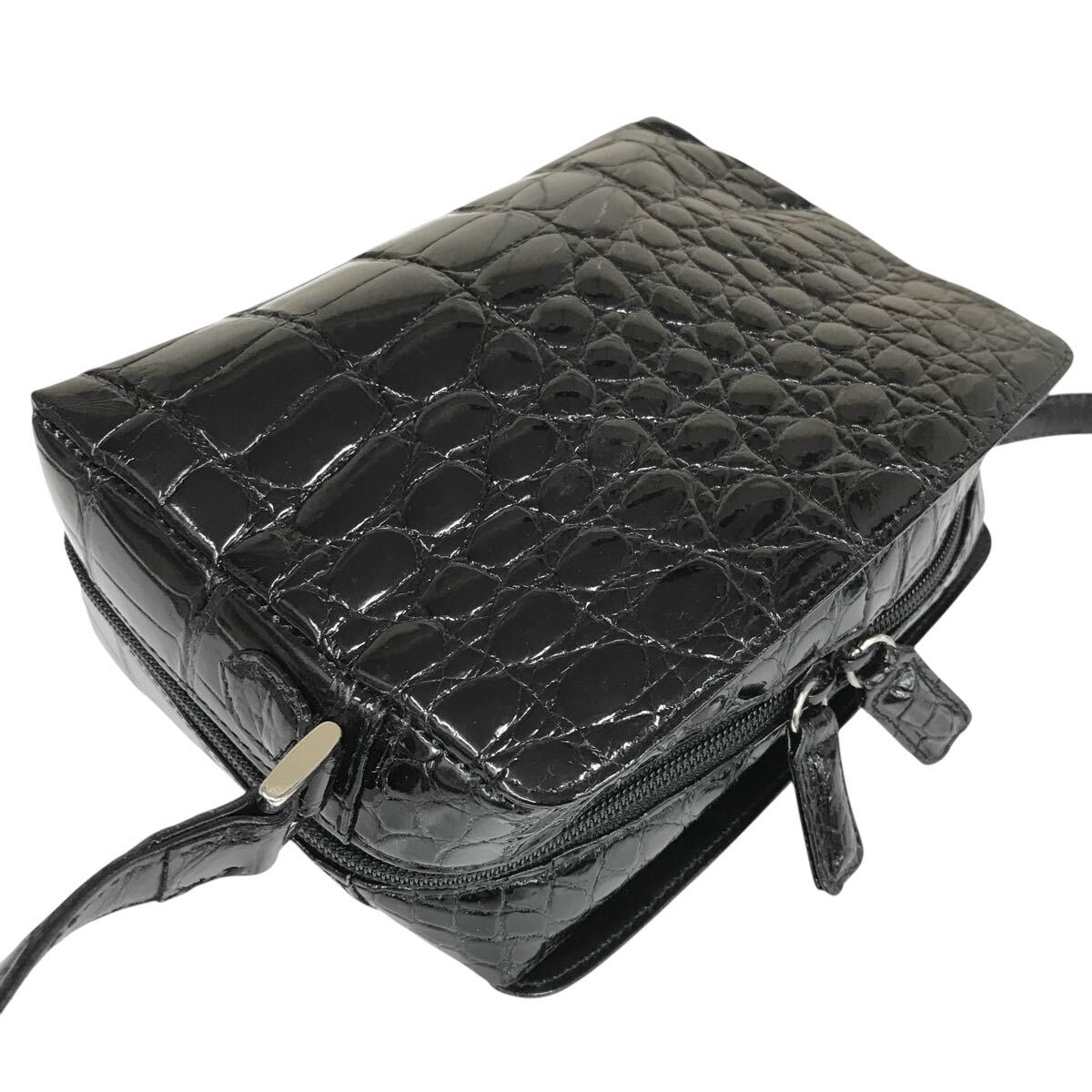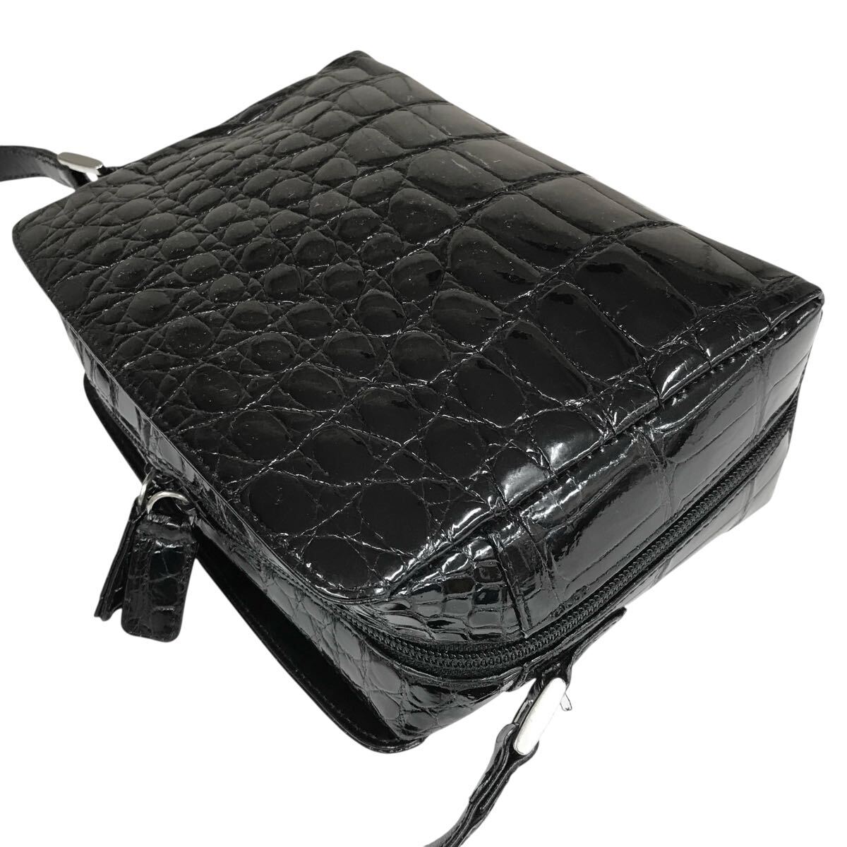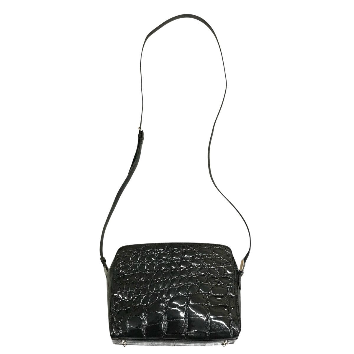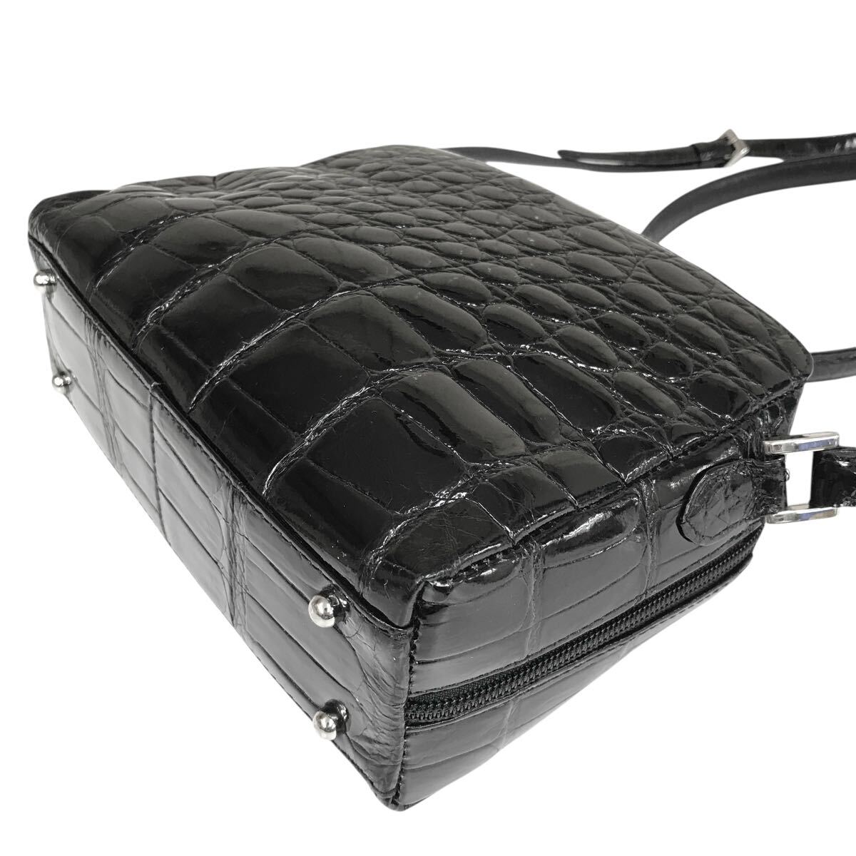 【JRA】本物 クロコダイル 黒 ショルダーバッグ 斜め掛け ポシェット サコッシュ ワニ革 エキゾチックレザー メンズ レディース 日本製