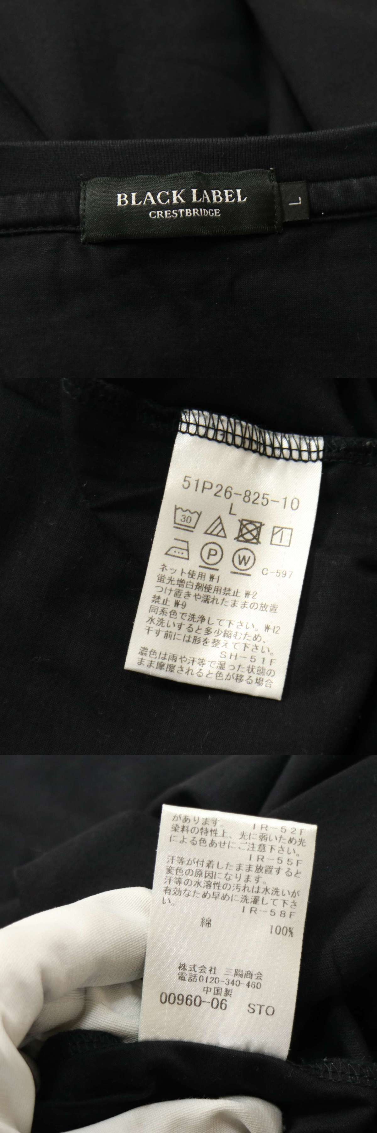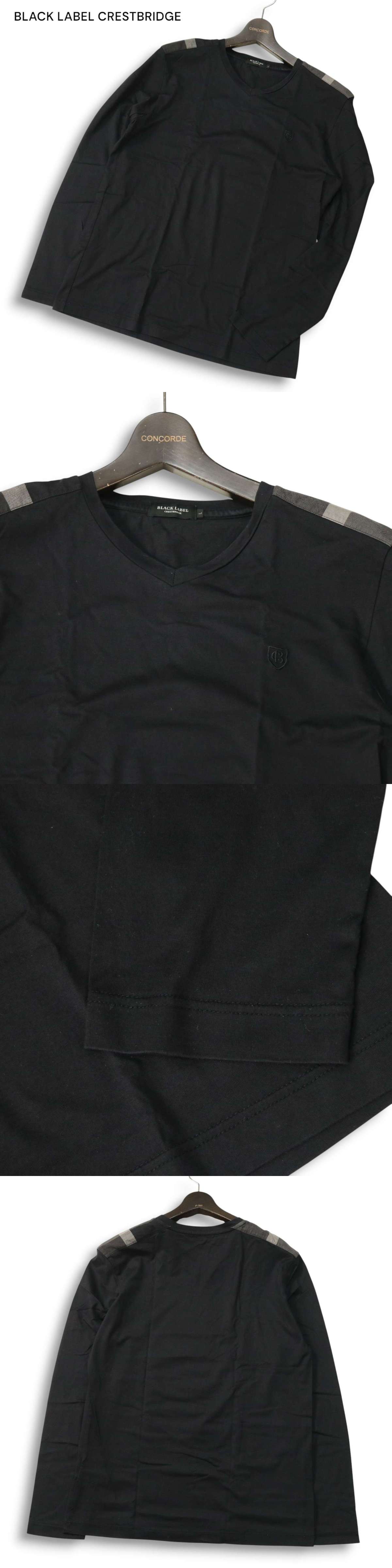 BLACK LABEL CRESTBRIDGE ブラックレーベル クレストブリッジ 通年★ 肩チェック 長袖 Tシャツ カットソー Sz.L メンズ 黒