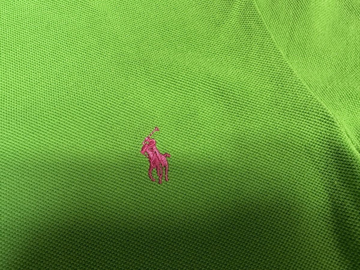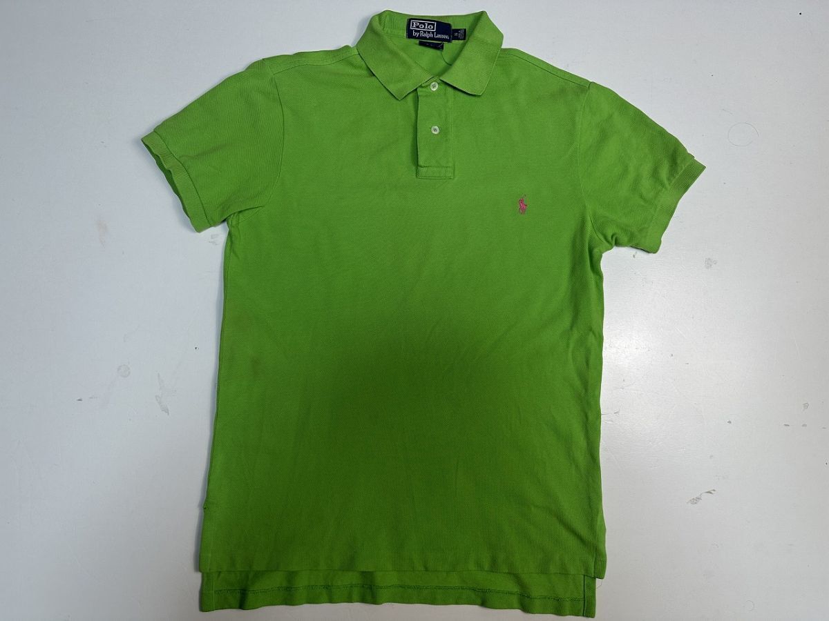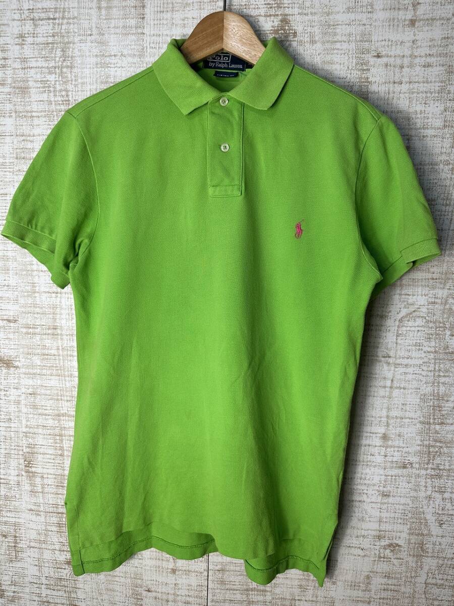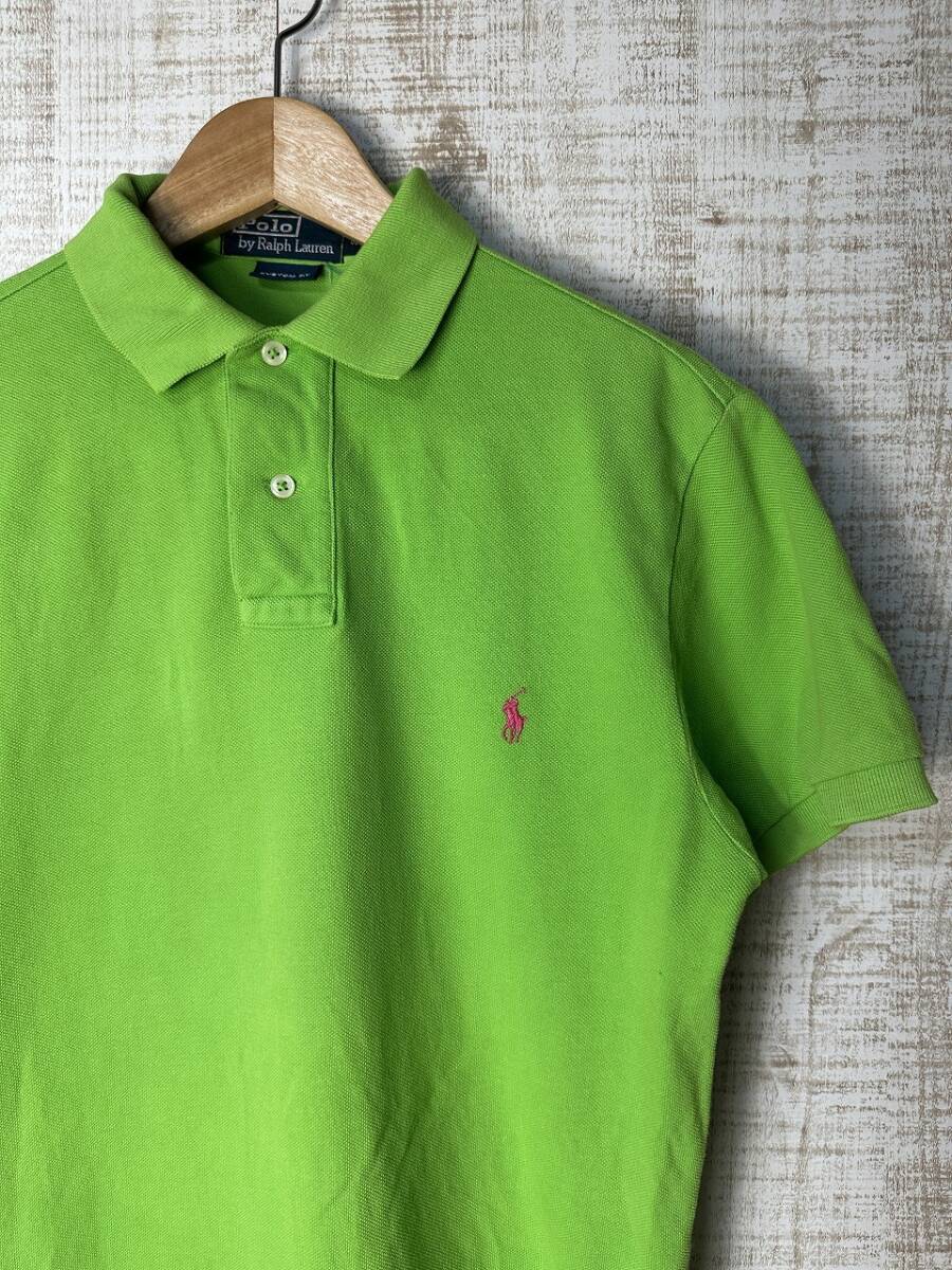 ●US USED POLO Ralph Lauren ラルフローレン ポロシャツ ポニーロゴ刺繍 半袖 黄緑 グリーン カスタムFIT【S】鹿の子