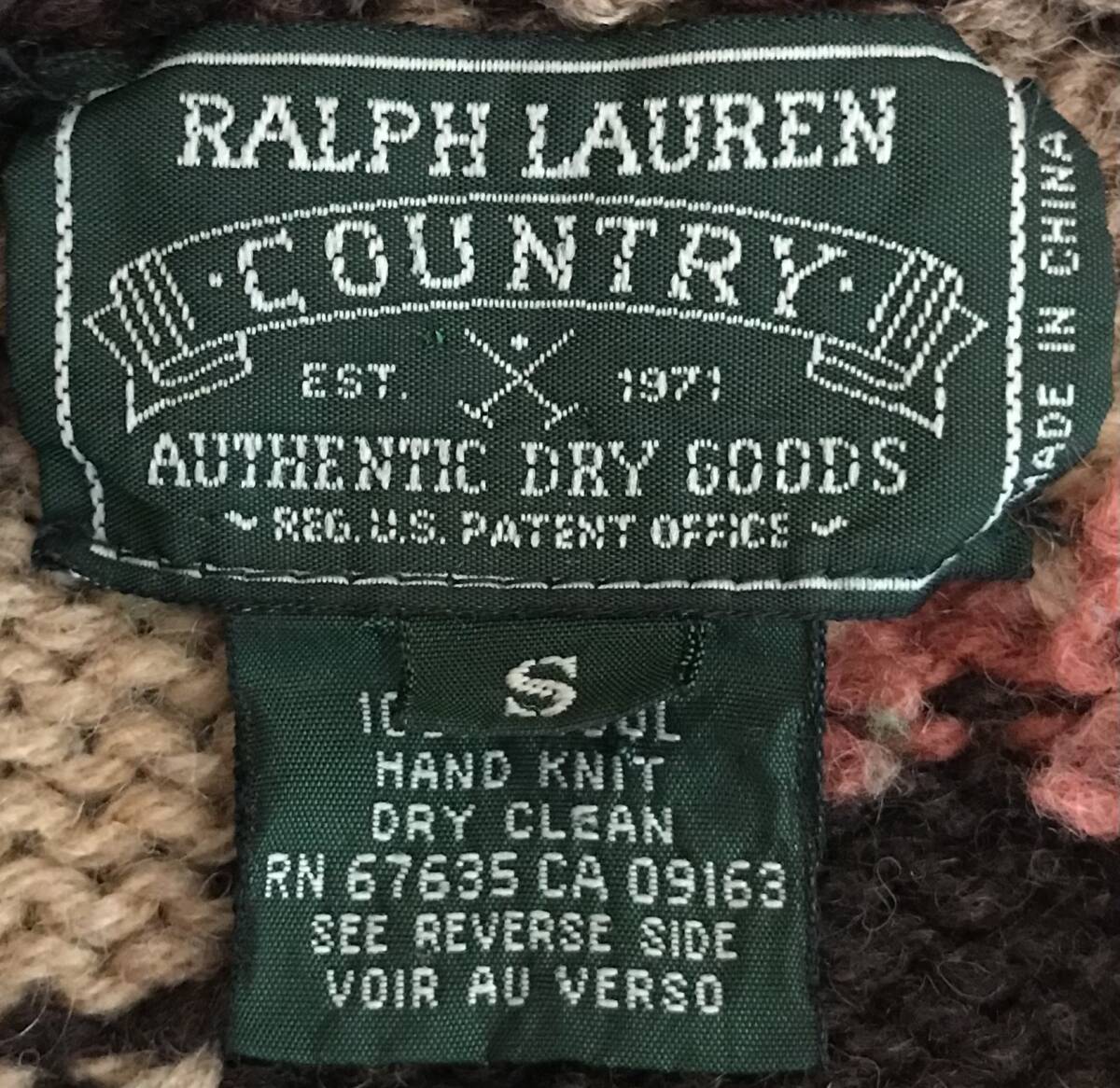 極上のナバホ柄 超スペシャル 肉厚 80's vintage ★ RALPH LAUREN COUNTRY ★ ラルフローレン カントリー ネイティブ柄 ショールカラー カウチン ニット カーディガン ガウン S です。