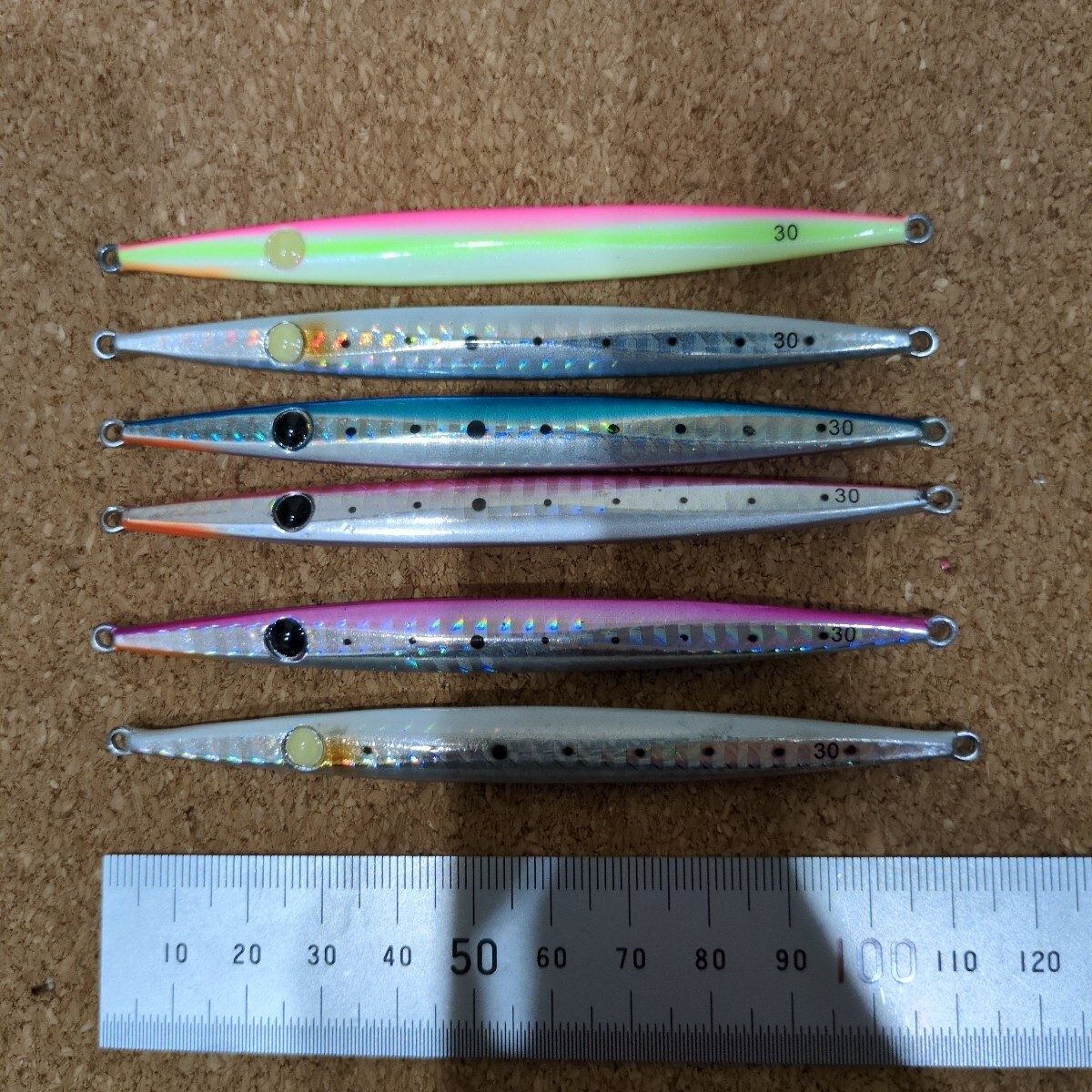 C-10752 メーカー不明 メタルジグ 30g 6本セット   メタルジグ 青物 ショアジギングに その他同梱可!