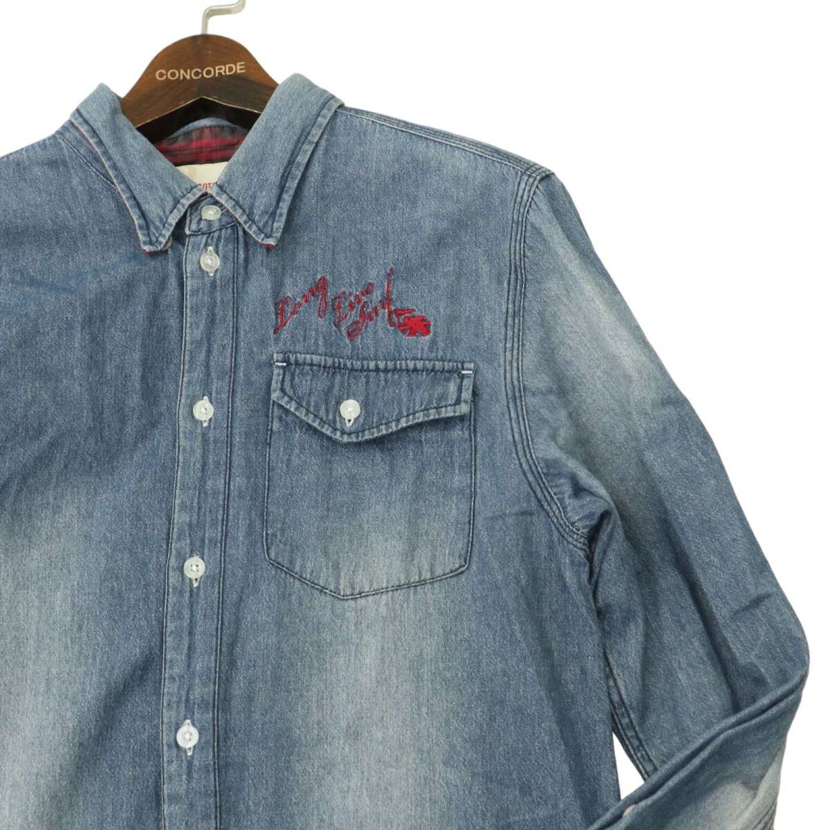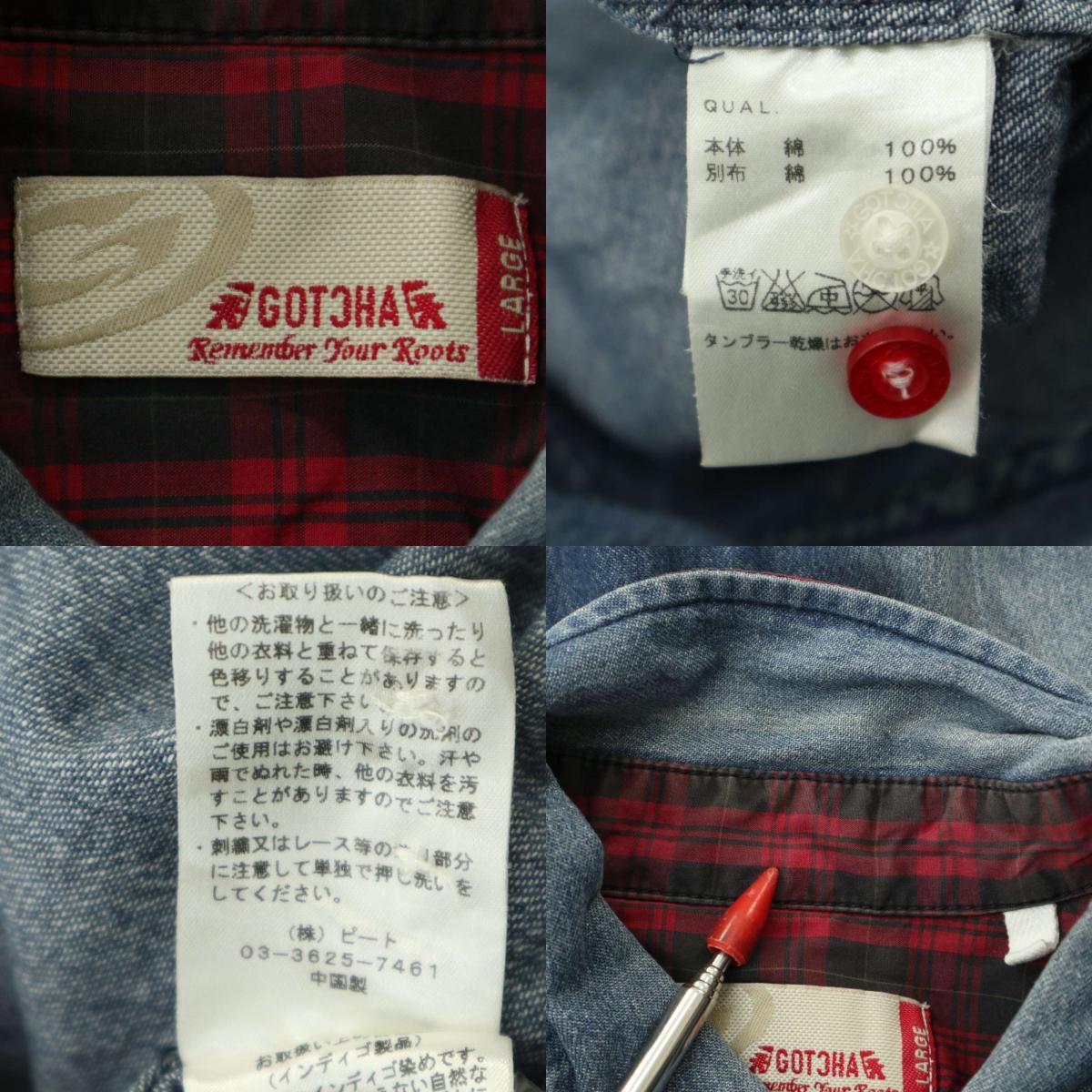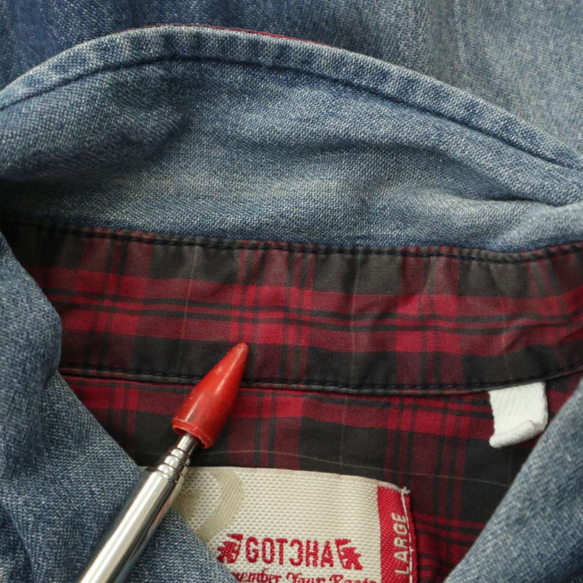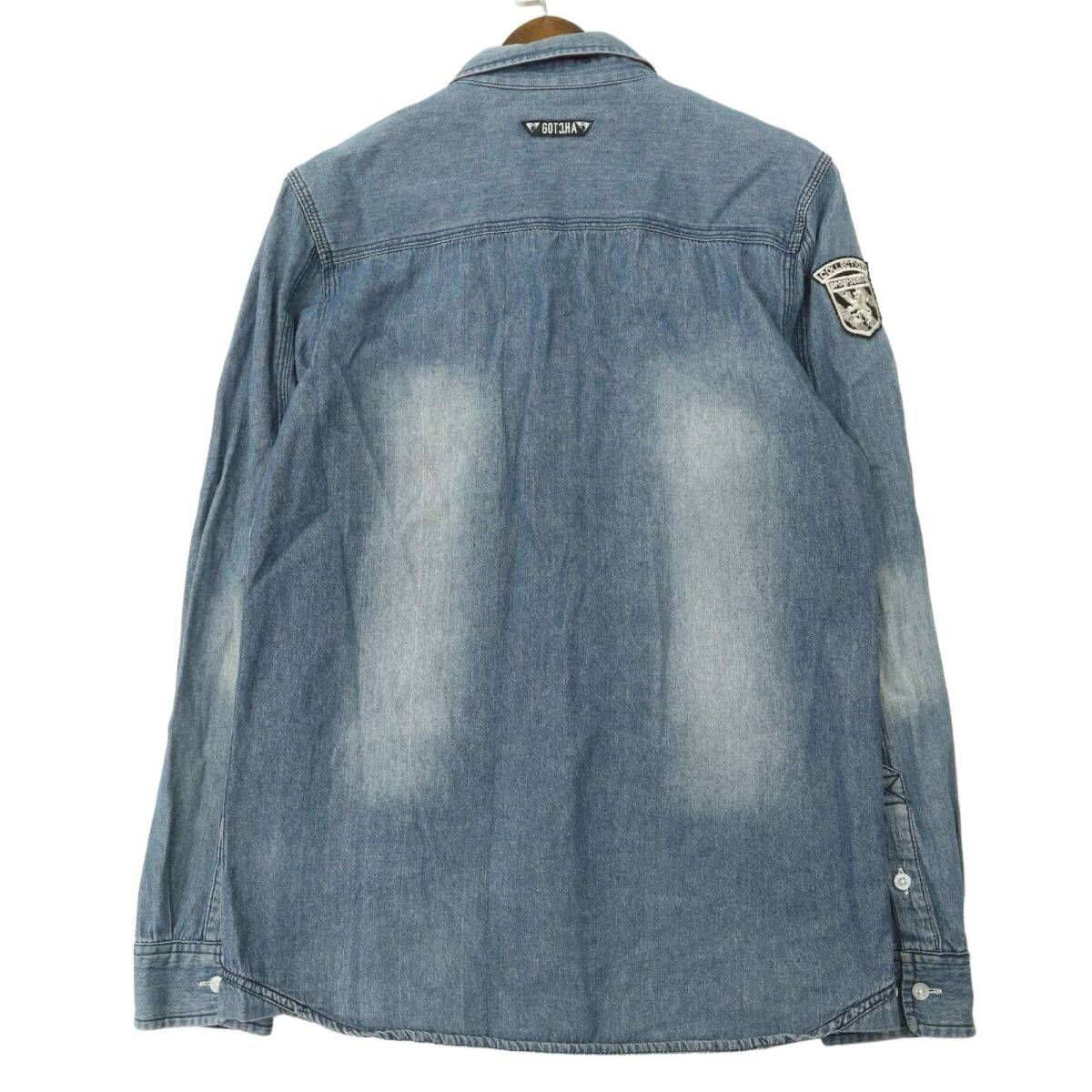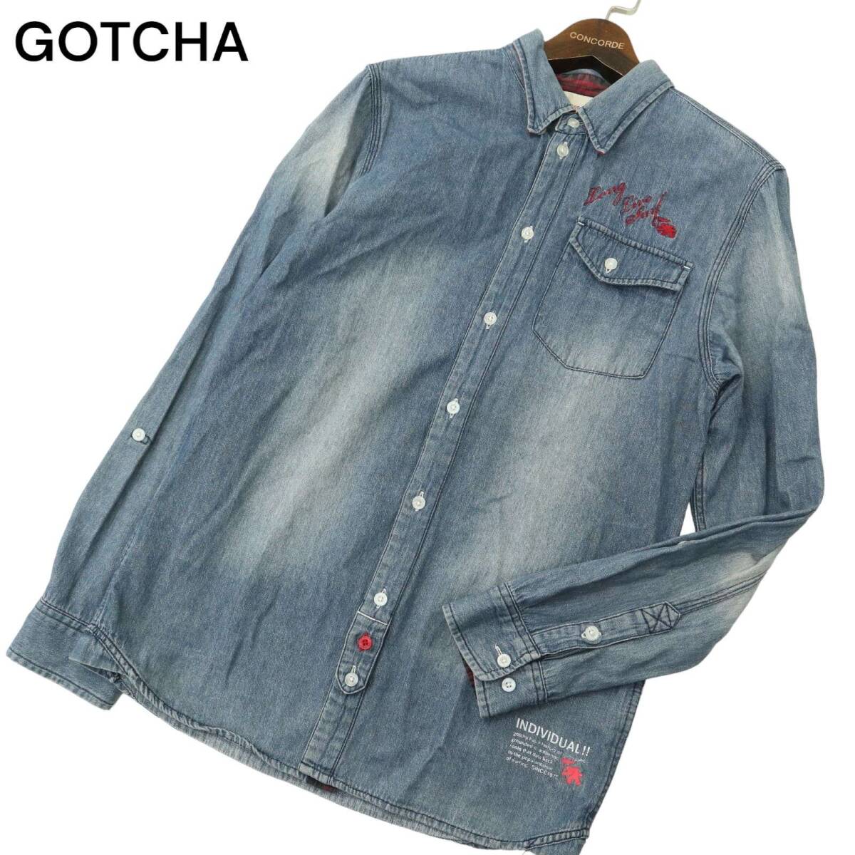 GOTCHA ガッチャ 通年 ロゴ刺繍★ USED加工 長袖 ボタンダウン デニム シャツ Sz.L メンズ