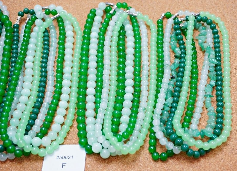 天然 緑石 ネックレス まとめて 20点セット 天然石のネックレス まとめて 20点セットです。 とても丁寧に研磨されており、艶、色味ともに非常に美しいものです。 写真がお譲りする商品の全てになります。 材質: メノウ 玉髄 マレー翡翠 等の天然石 個数: 20点 ※全て未使用品ですので基本良品ですが大量まとめ販売につき細かい検品はしておりません。 そのため仮に不良がありましても補償はいたしかねます。 入札の時点でその点をご理解いただいたものと考えさせていただきます。 当店の他の出品商品との同梱料は下記のとおり落札1点につき200円です。 |