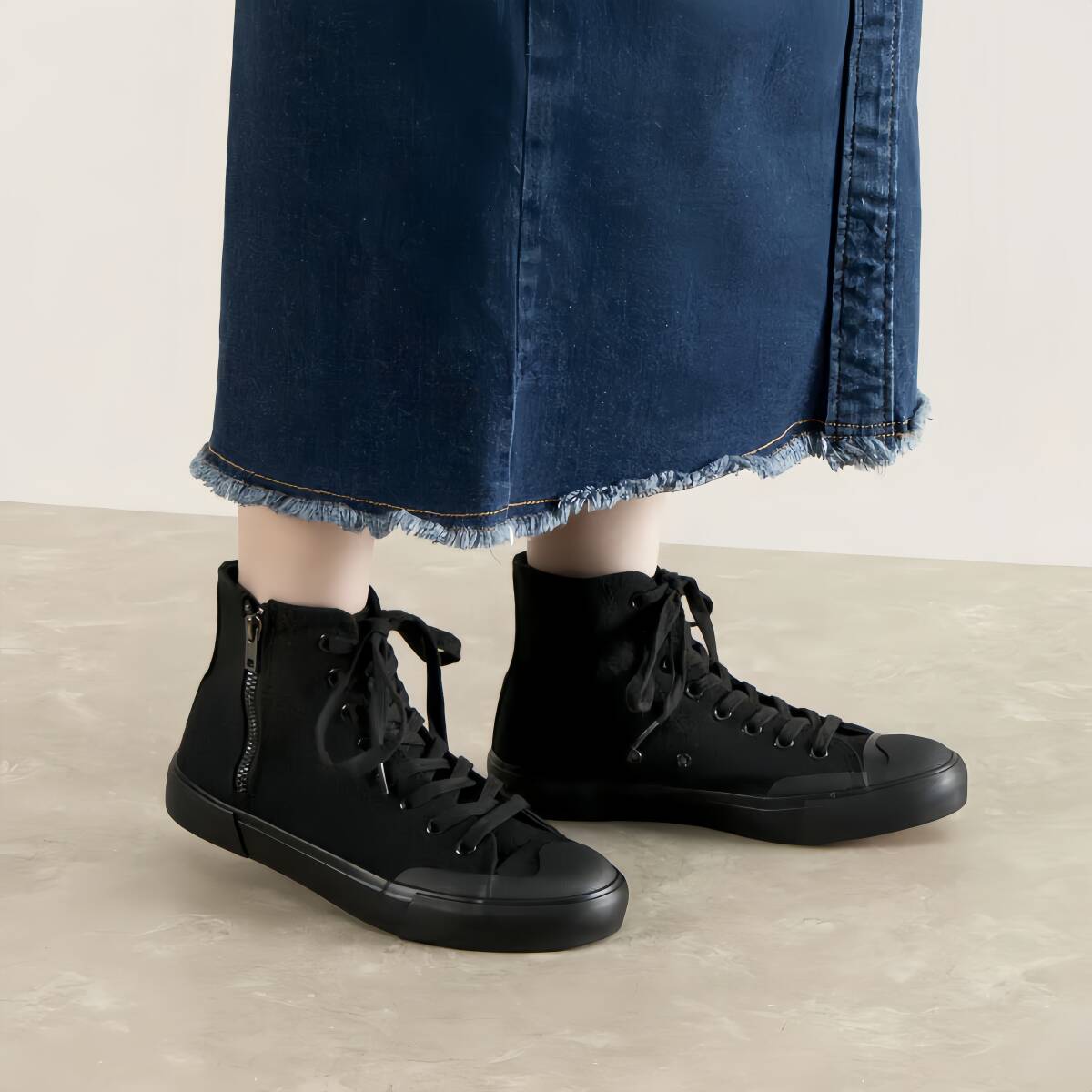 ジッパーを付け加えことで、ハイカットでも脱ぎ履きが楽ちん。