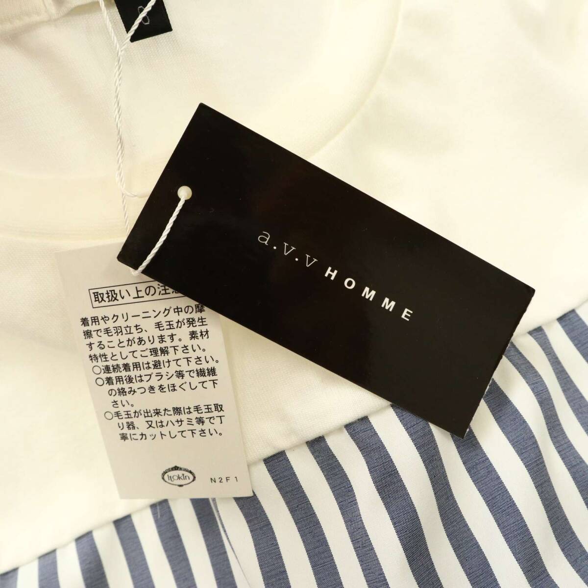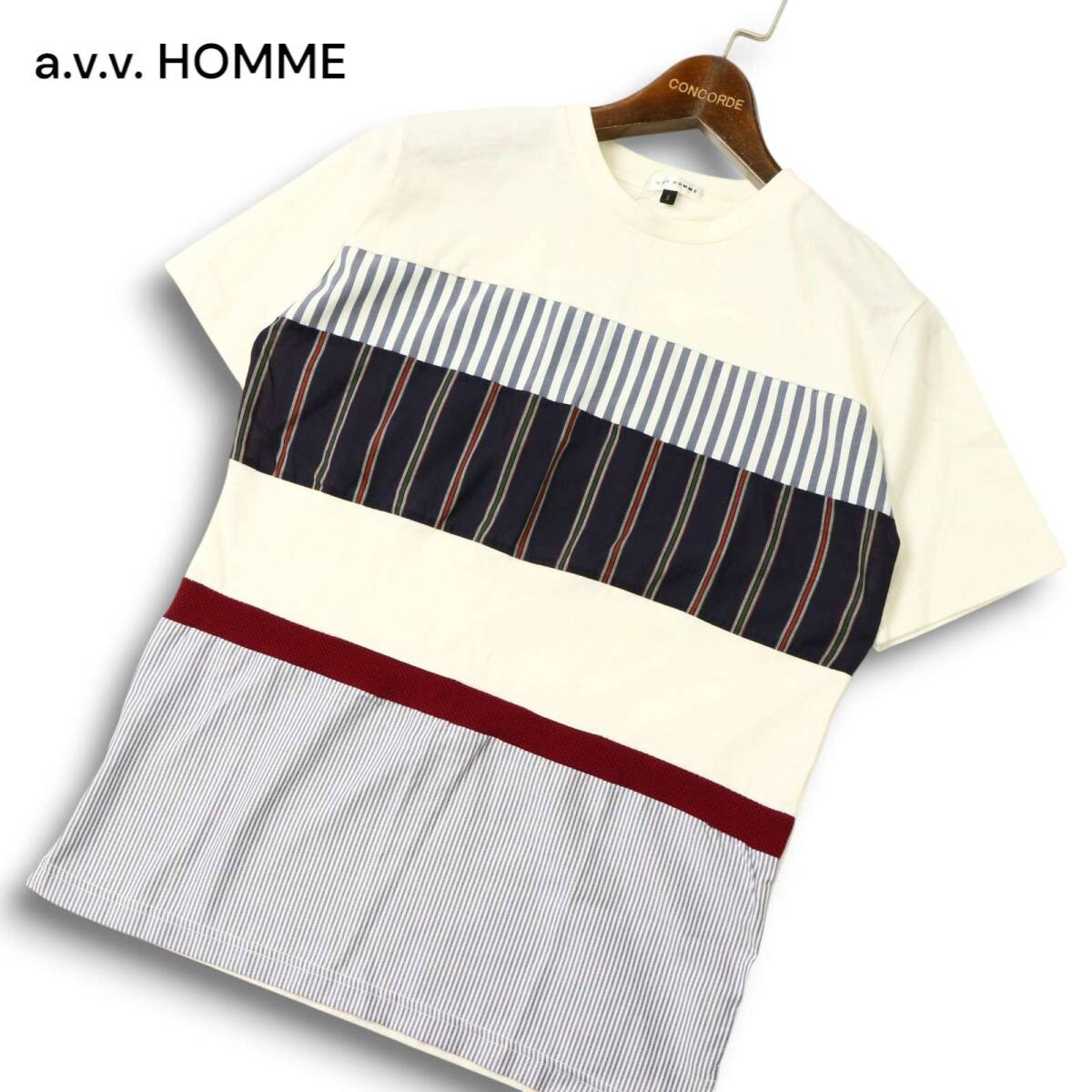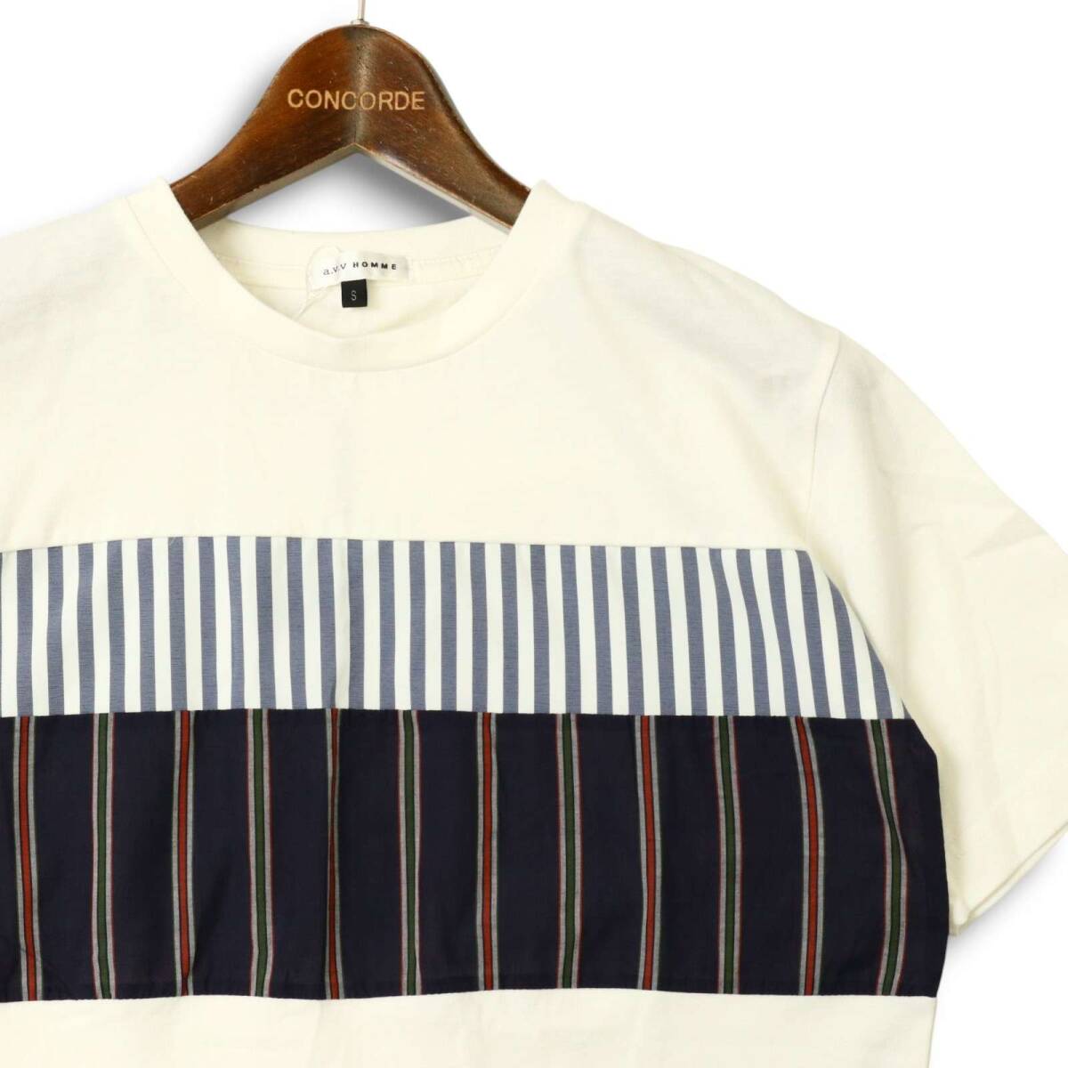 【新品 未使用】 a.v.v. HOMME アーヴェヴェオム 春夏★ ストライプ切替 半袖 Tシャツ カットソー Sz.S メンズ 白