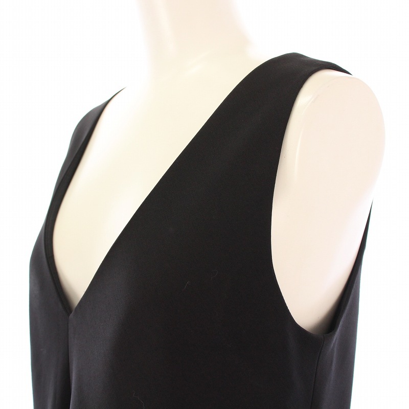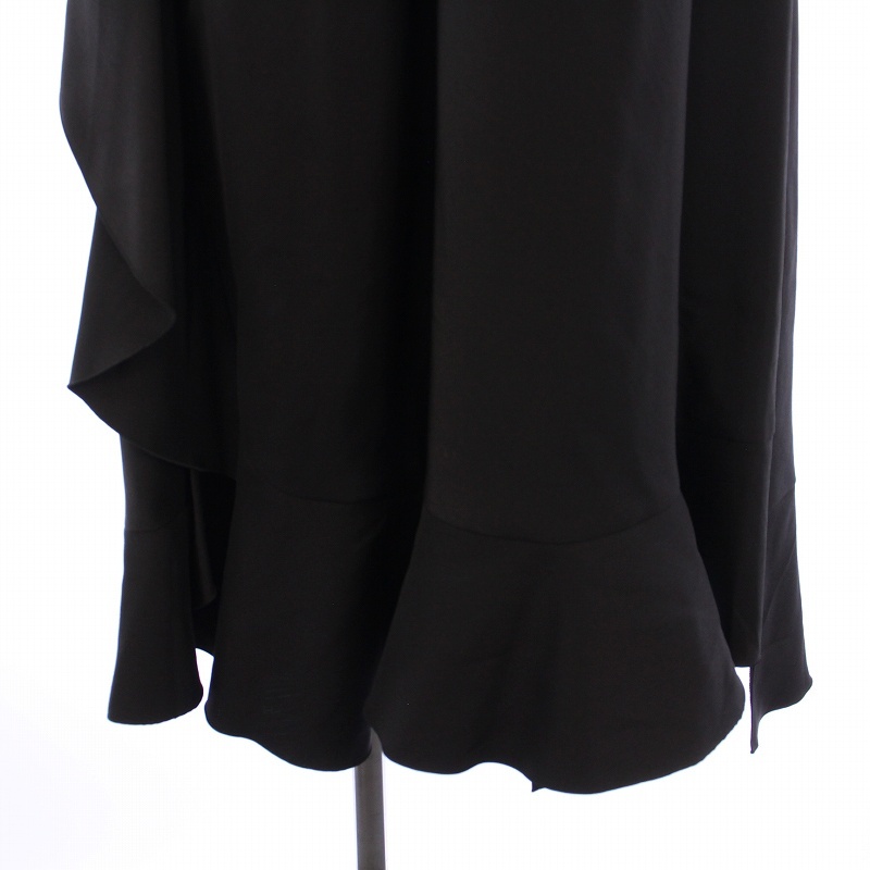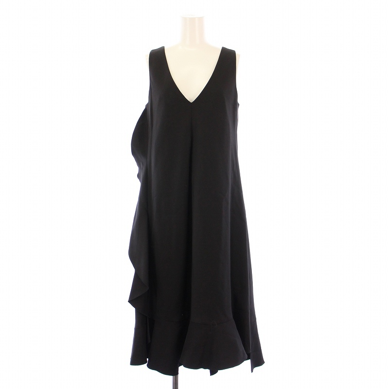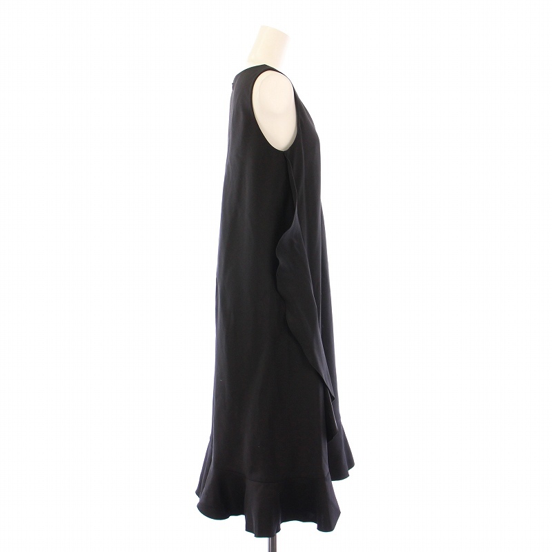 ルルロジェッタ ルールロジェット leur logette フレアワンピース ミモレ ロング ノースリーブ Vネック フリル ウール シルク混 0 黒