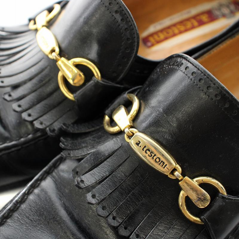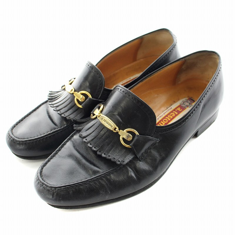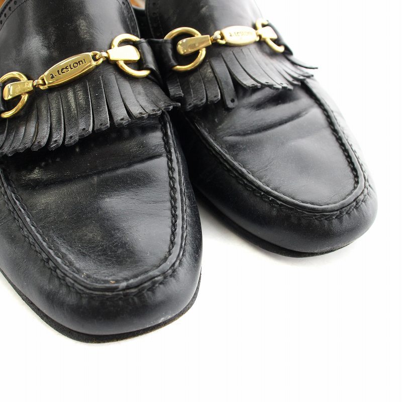 ア・テストーニ a.testoni ローファー タッセル ローヒール レザー 7 24cm ブラック /NQ レディース