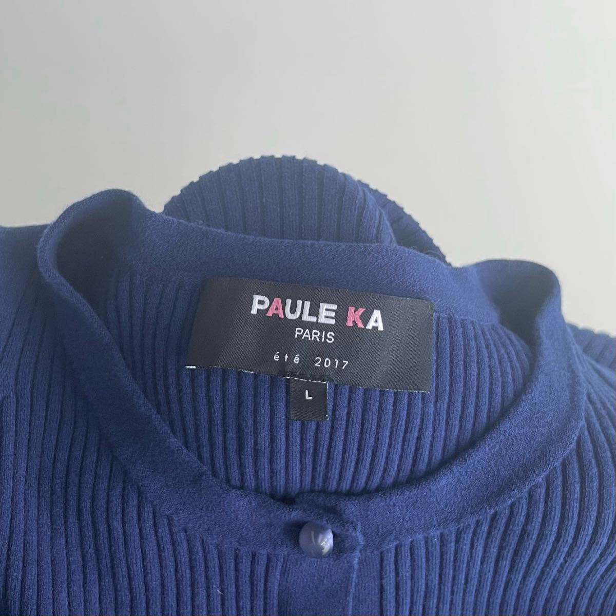 PAULE KA ブルー リブカーディガン・半袖リブニットセット Lサイズ D