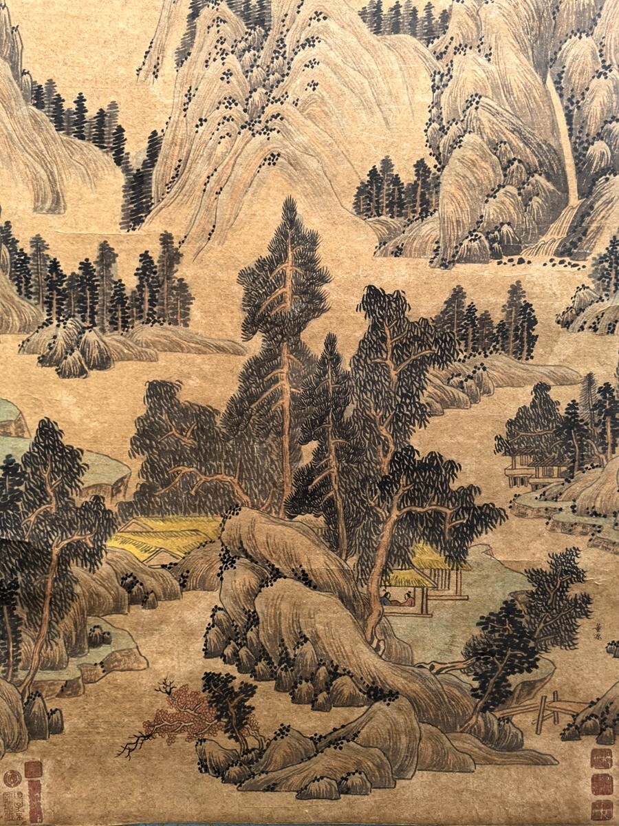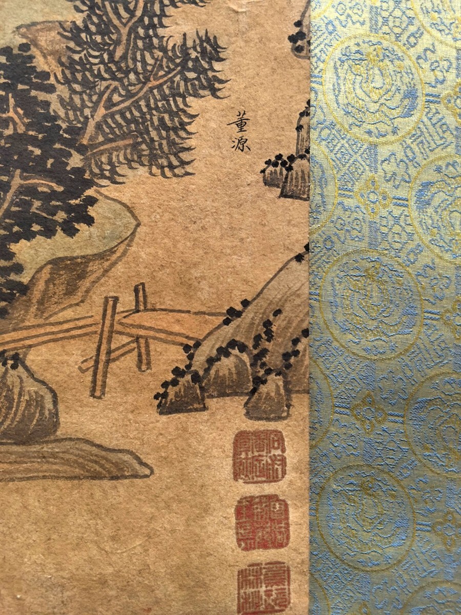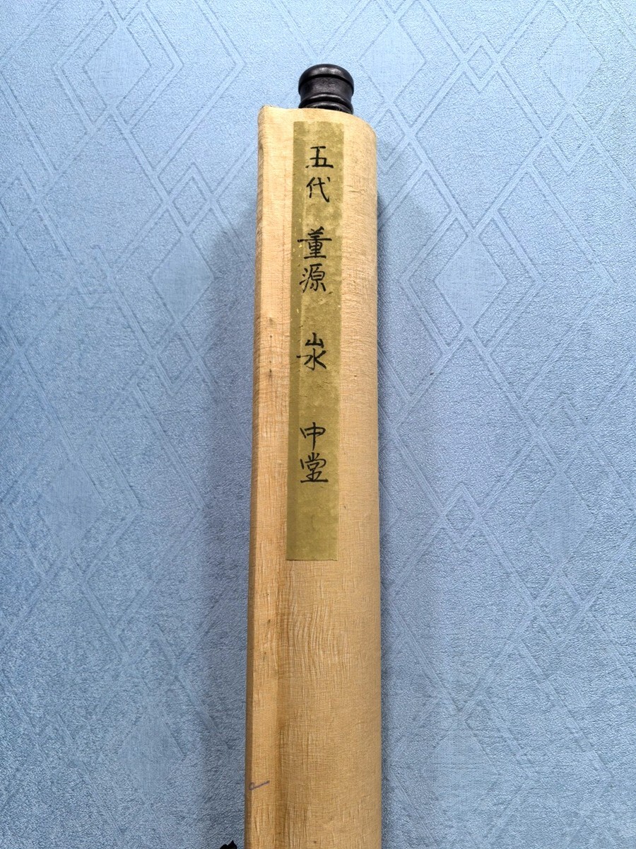 「董源畫 山水図」五代画家 肉筆紙本【仁】掛け軸 書画立軸 巻き物 中国書画 古美術 蔵出 畫芯約63.8×128.6cm