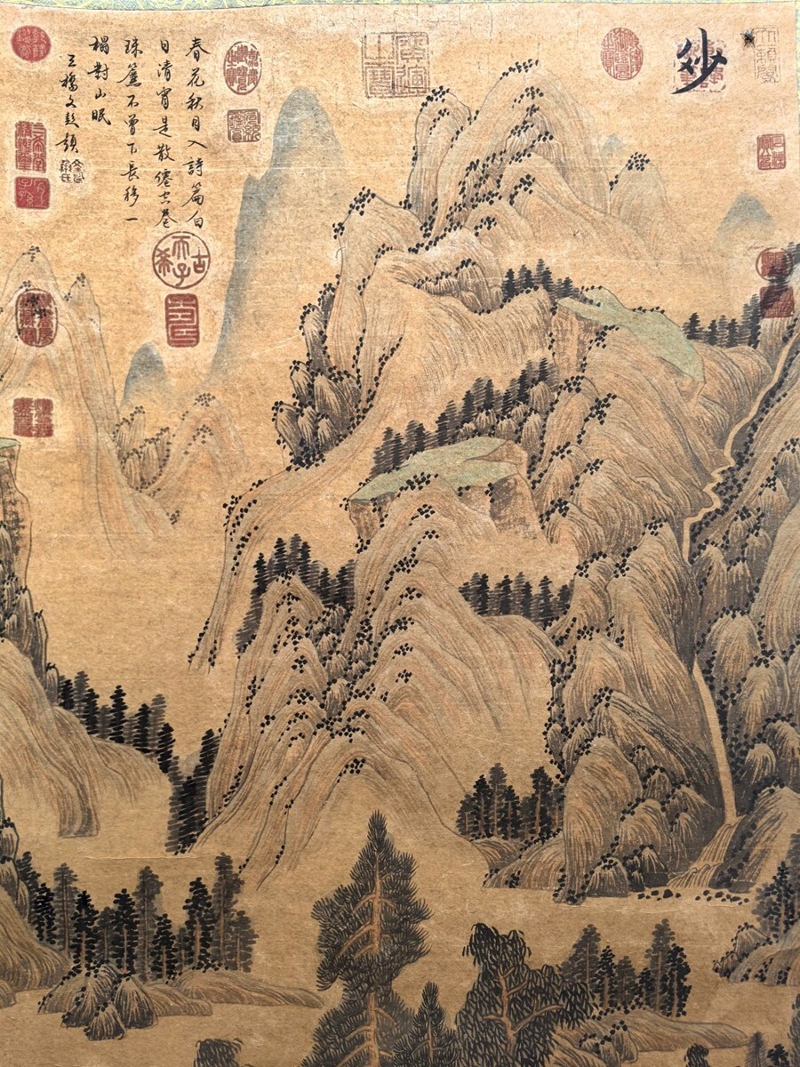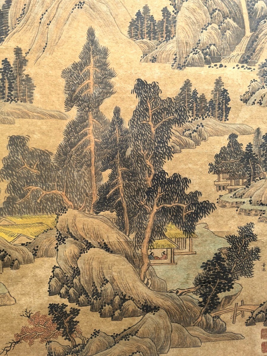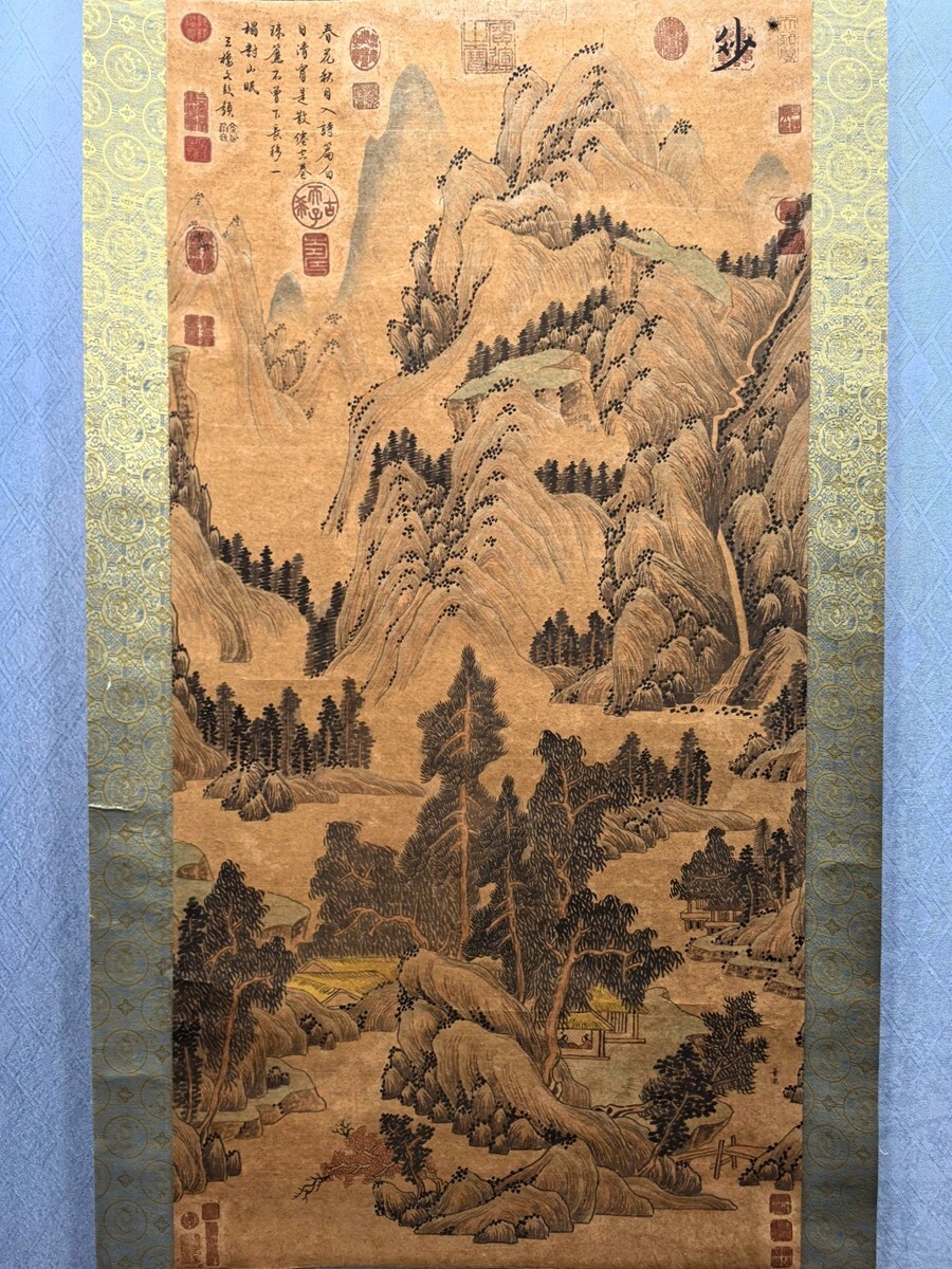 「董源畫 山水図」五代画家 肉筆紙本【仁】掛け軸 書画立軸 巻き物 中国書画 古美術 蔵出 畫芯約63.8×128.6cm