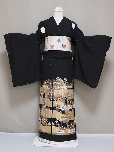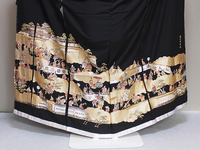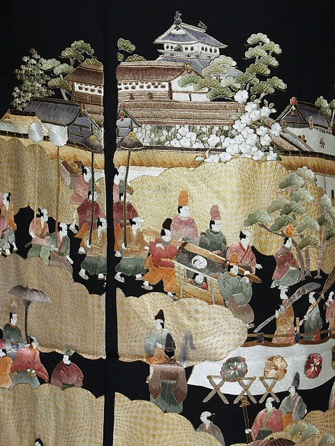 | J1200-06 長宇野 和装において既婚女性の第一礼装となる江戸妻(黒留袖・五つ紋)の紹介です。 中国伝統工芸の刺繍柄で非常に精巧な加工が施された上品な柄の逸品です。 ぜひ このすばらしい黒留袖にて お祝いの佳き日を迎えてみてはいかがでしょうか。 お知らせ・・・こちらのお品ですが当店在庫処分となっておりますので ご理解のうえでお求め下さるようお願いいたします。 中国刺繍と純金使用との豪華な絵柄の一枚です。 お写真では判りずらいと思いますが お顔や松の柄・着物柄など精巧なグラデーションとなっています。年代も広く 個性的な黒留袖をご希望の方におすすめしたい逸品な一枚です。 こちらのお品ですが目立つ難は見つかりませんでした。 ☆ |