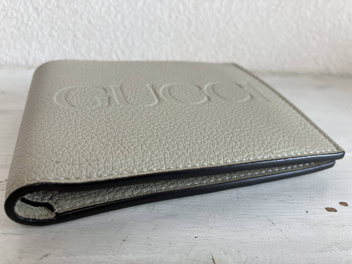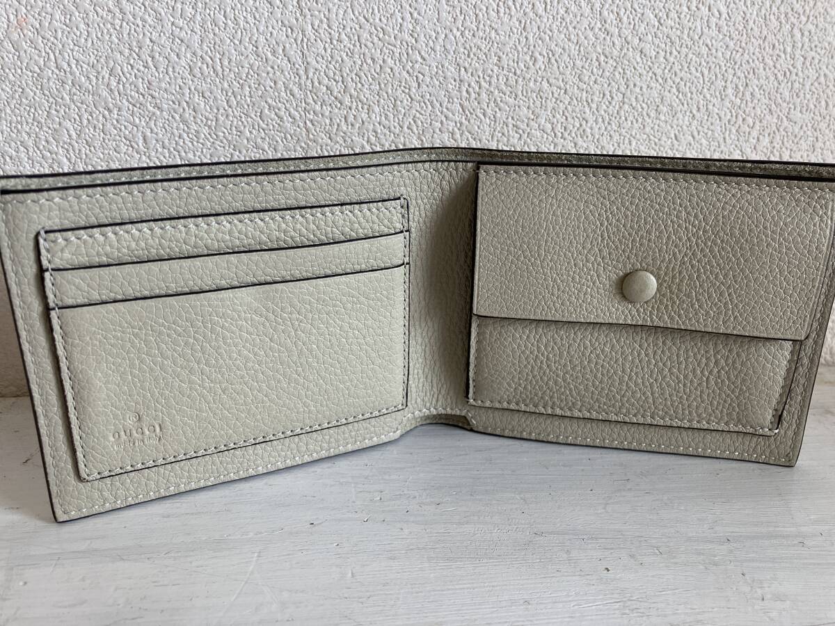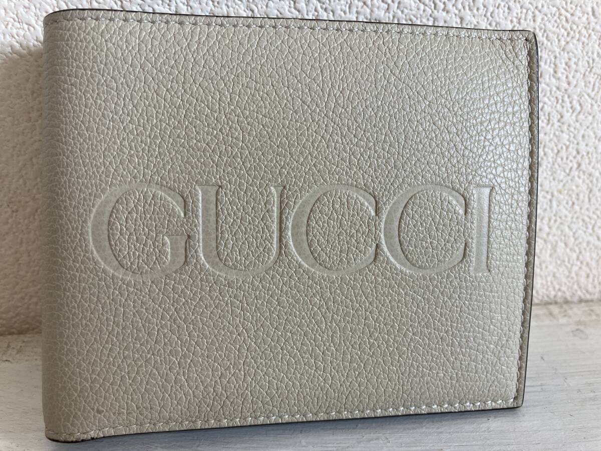 即決 GUCCI グッチ 2ッ折り財布 ウォレット ロゴ エンボス 小銭入 コインケース付 ミニウォレット 658681 アイボリー ユニセックス