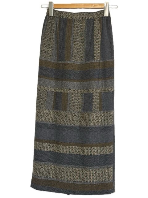 シセンドウ 詩仙堂 HITOSHI TAMURA ちりめん 縮緬 タイト スカート 切替 ネイビー ブラウン 茶色 ボトムス レディース