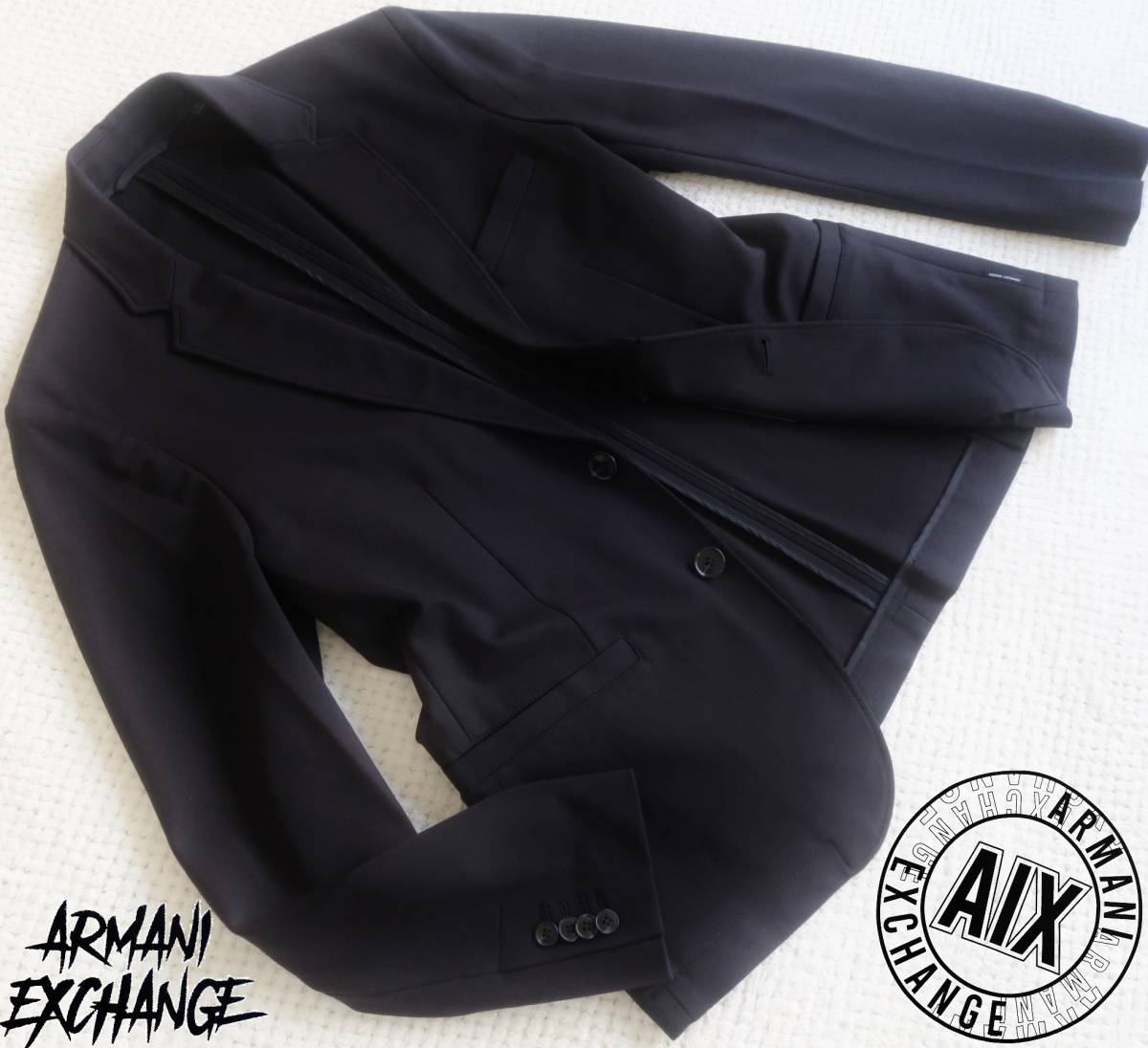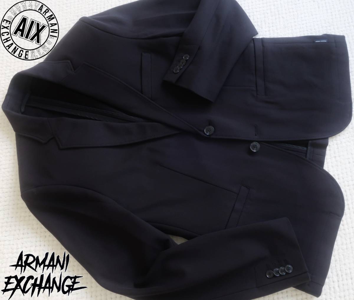 新品★アルマーニ★ネイビー ジャージ ニット ジャケット★ストレッチ ソフトジャケット★紺 ブレザー XL★AX ARMANI★975