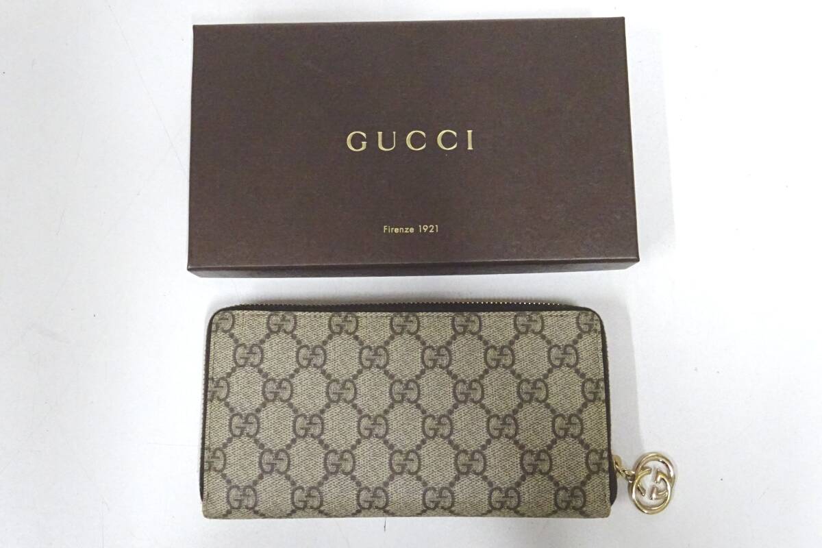 [宅60]0412 GUCCI グッチ GGスプリーム レザー ラウンドファスナー長財布 | ||