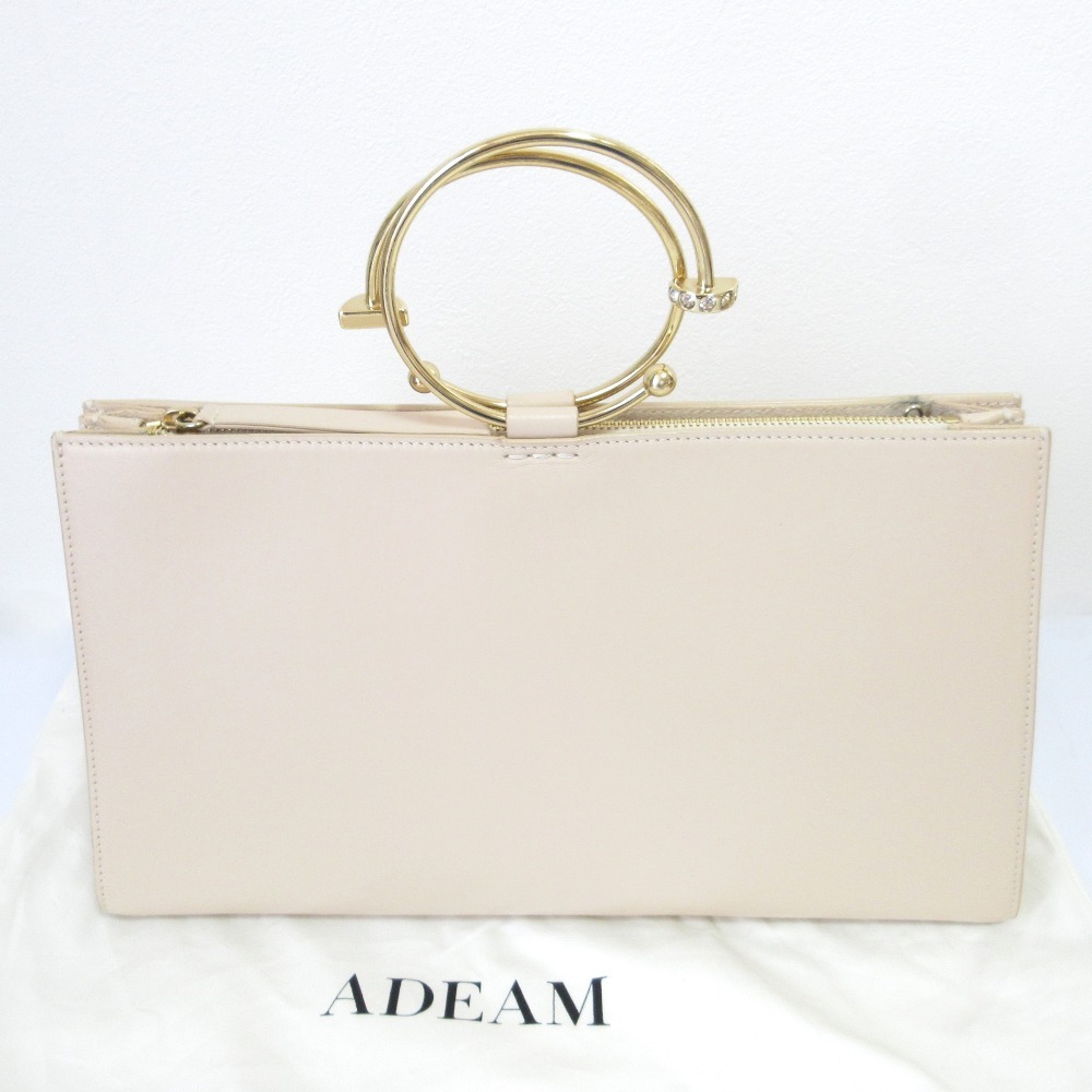 良品 ADEAM アディアム フォクシー スクエア Art Frame Bag レザー ビジュー 2WAY トートバッグ ショルダーバッグ ベージュ