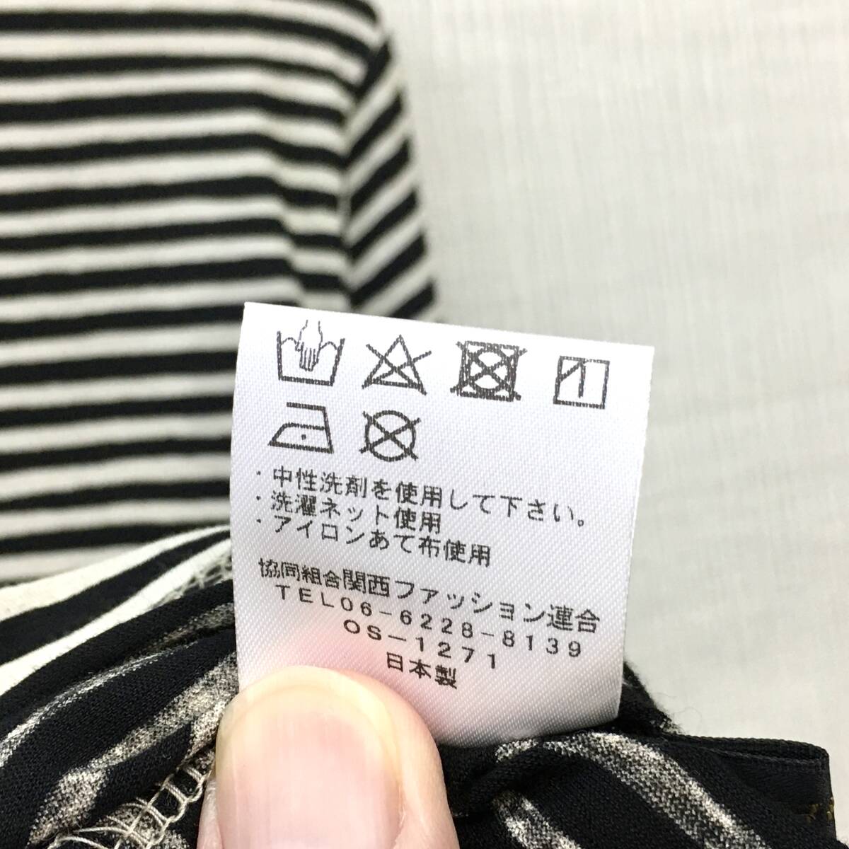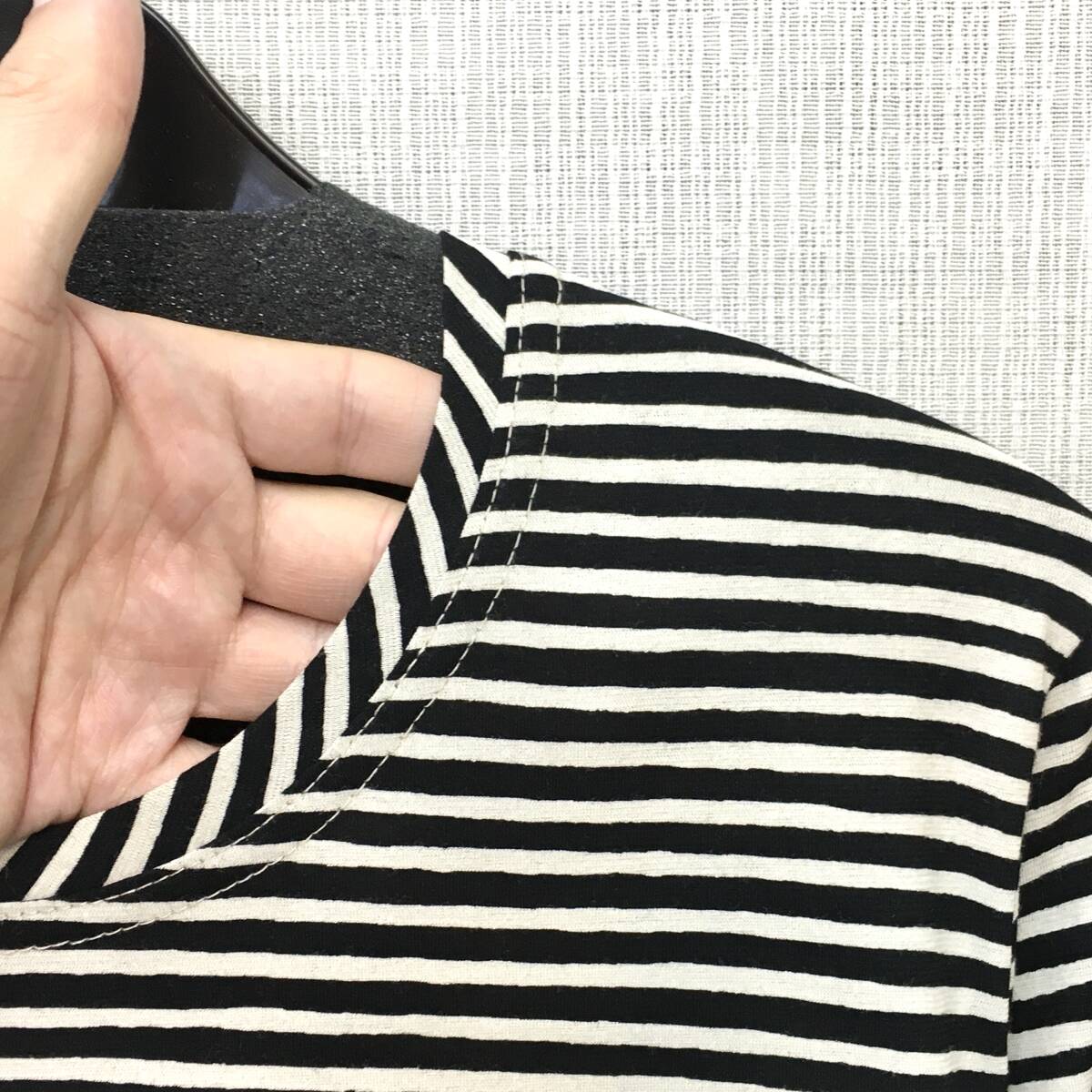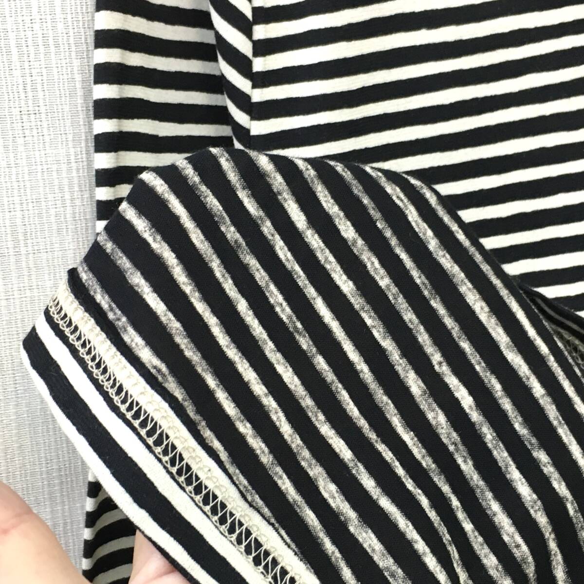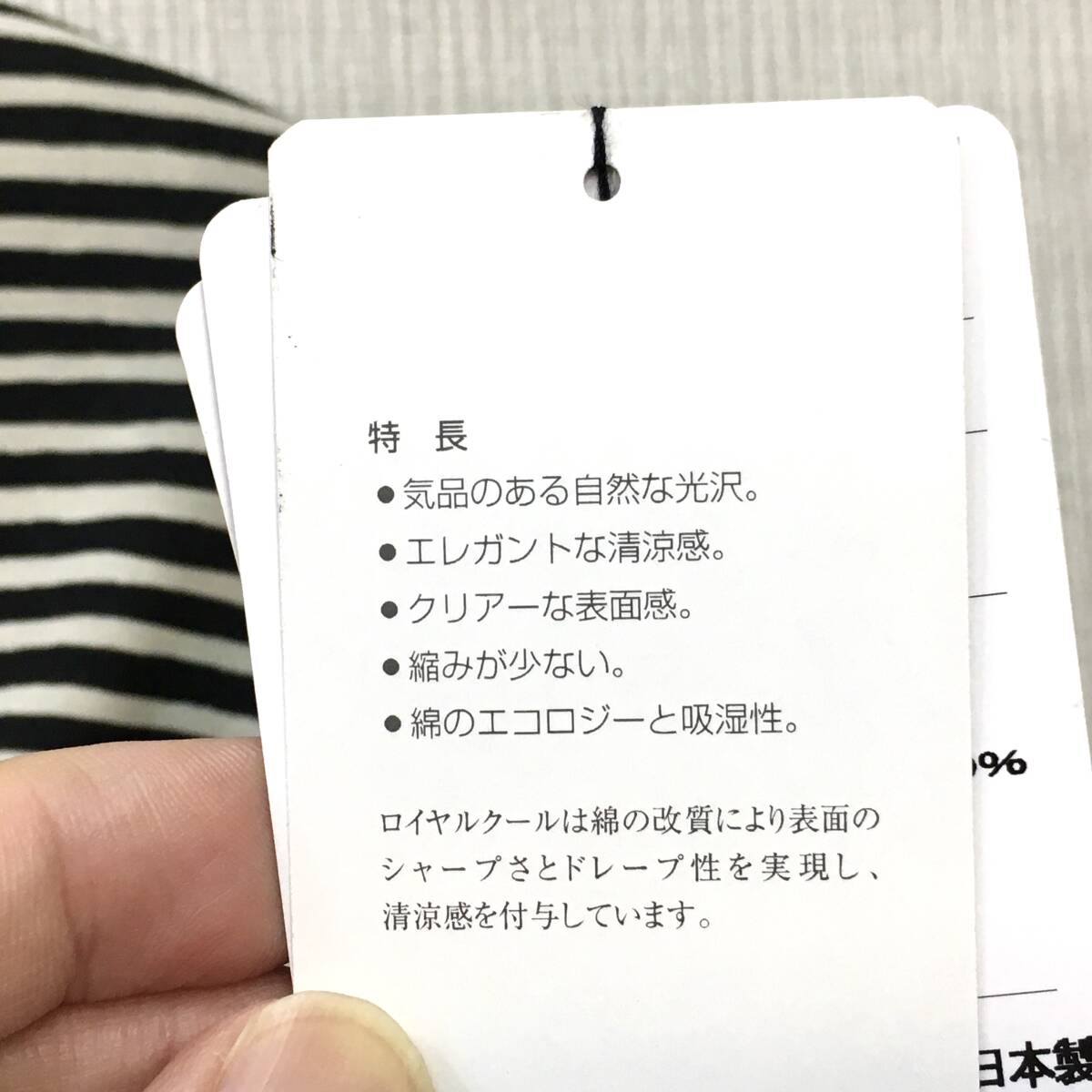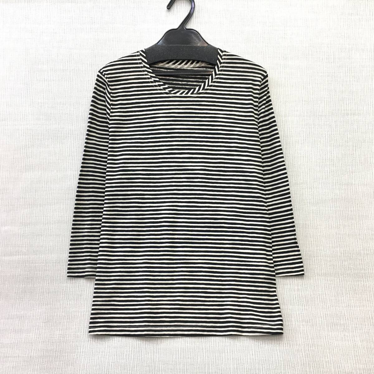 【新品】日本製 婦人 7分袖 カットソー 綿100% M-Lサイズ 強撚糸 送料無料b 手洗いOK 抜染ボーダー 薄ベージュ クロ 婦人Tシャツ