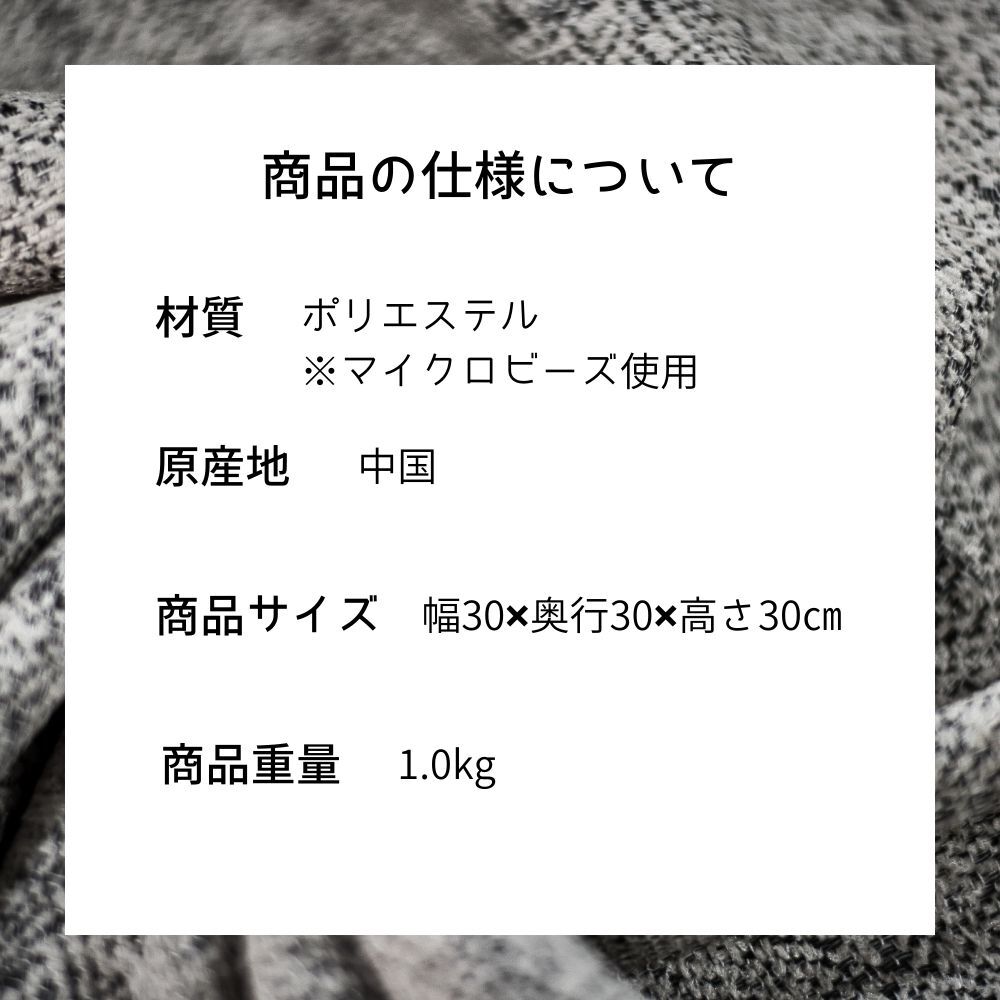 ![]() クッション colon ミニビーズクッション MBC-804 カラー:グレー 単品 ◇◆商品の仕様について◆◇ 【材質】ポリエステル ※マイクロビーズ使用 【原産地】中国 【商品サイズ】幅30×奥行き30×高さ30(cm) 【商品重量】1.0kg ◇◆発送について◆◇