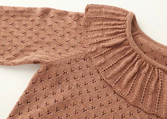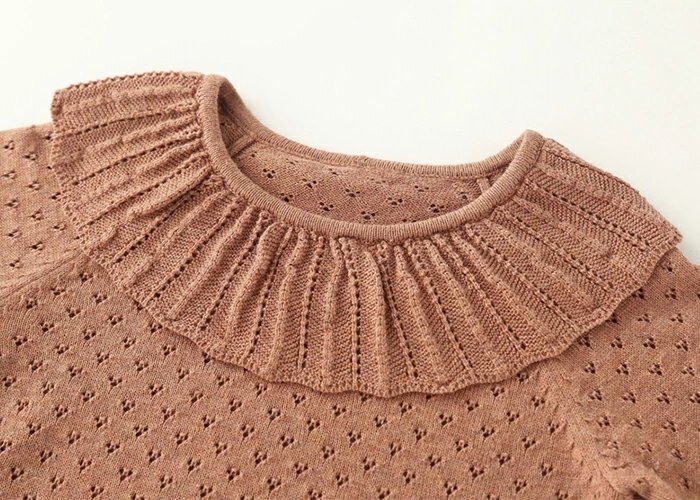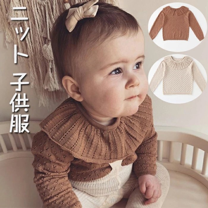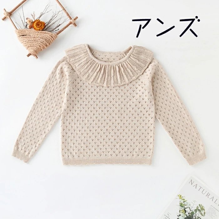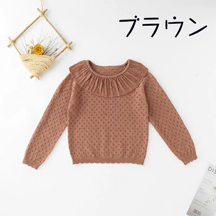 キッズ服 ニットセーター 子供セーター 子供服 女の子 フリル襟 トップス フリル 上着 長袖ニット ガールズ セーター☆2色/80-140選択/1点