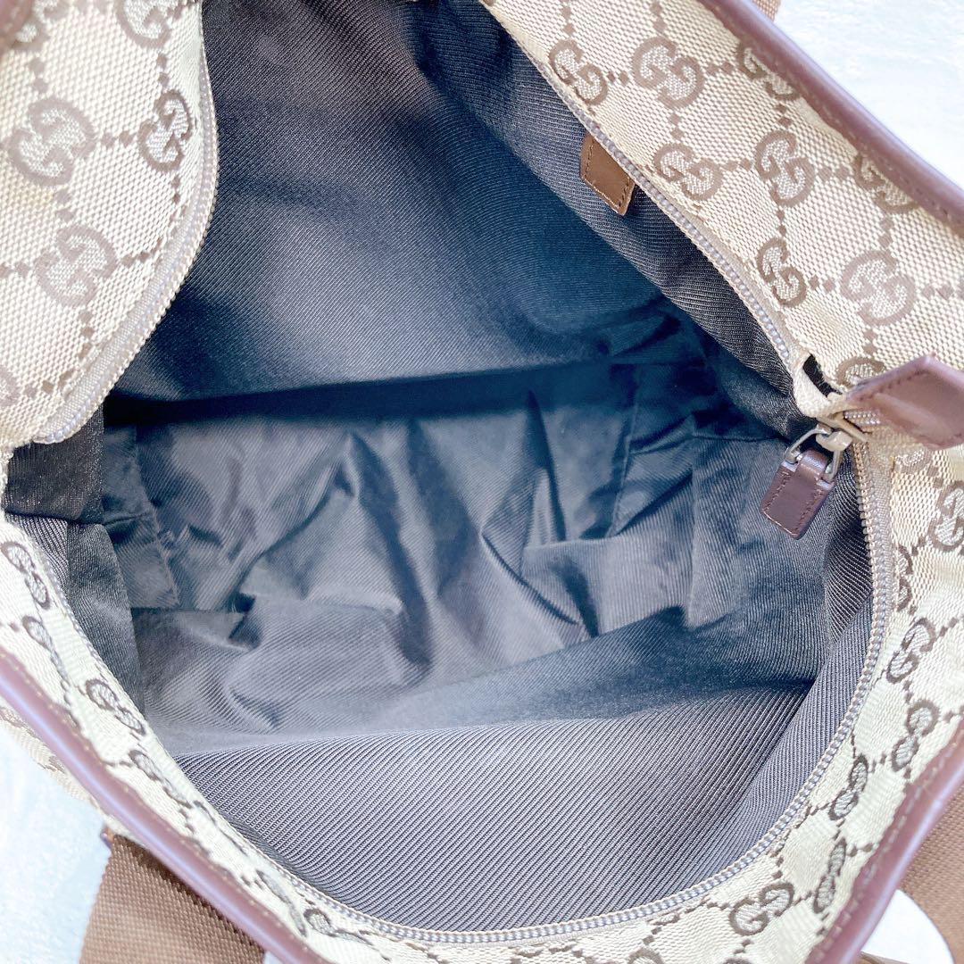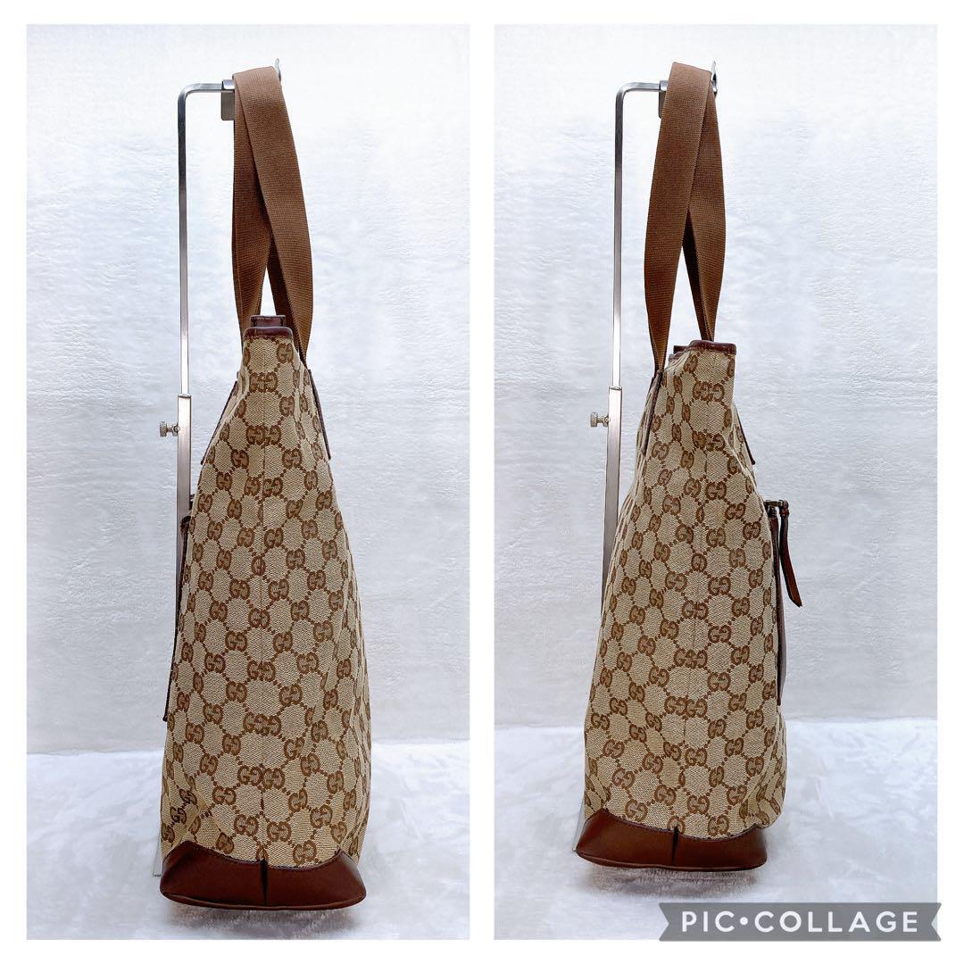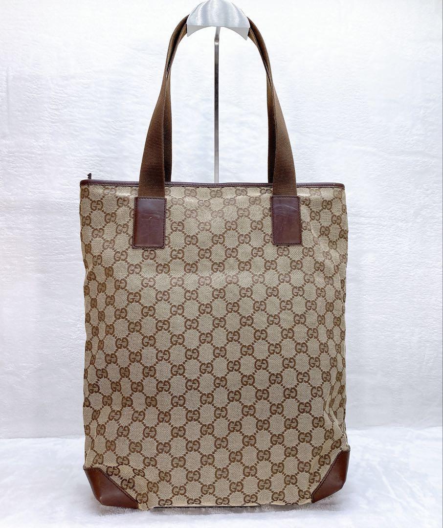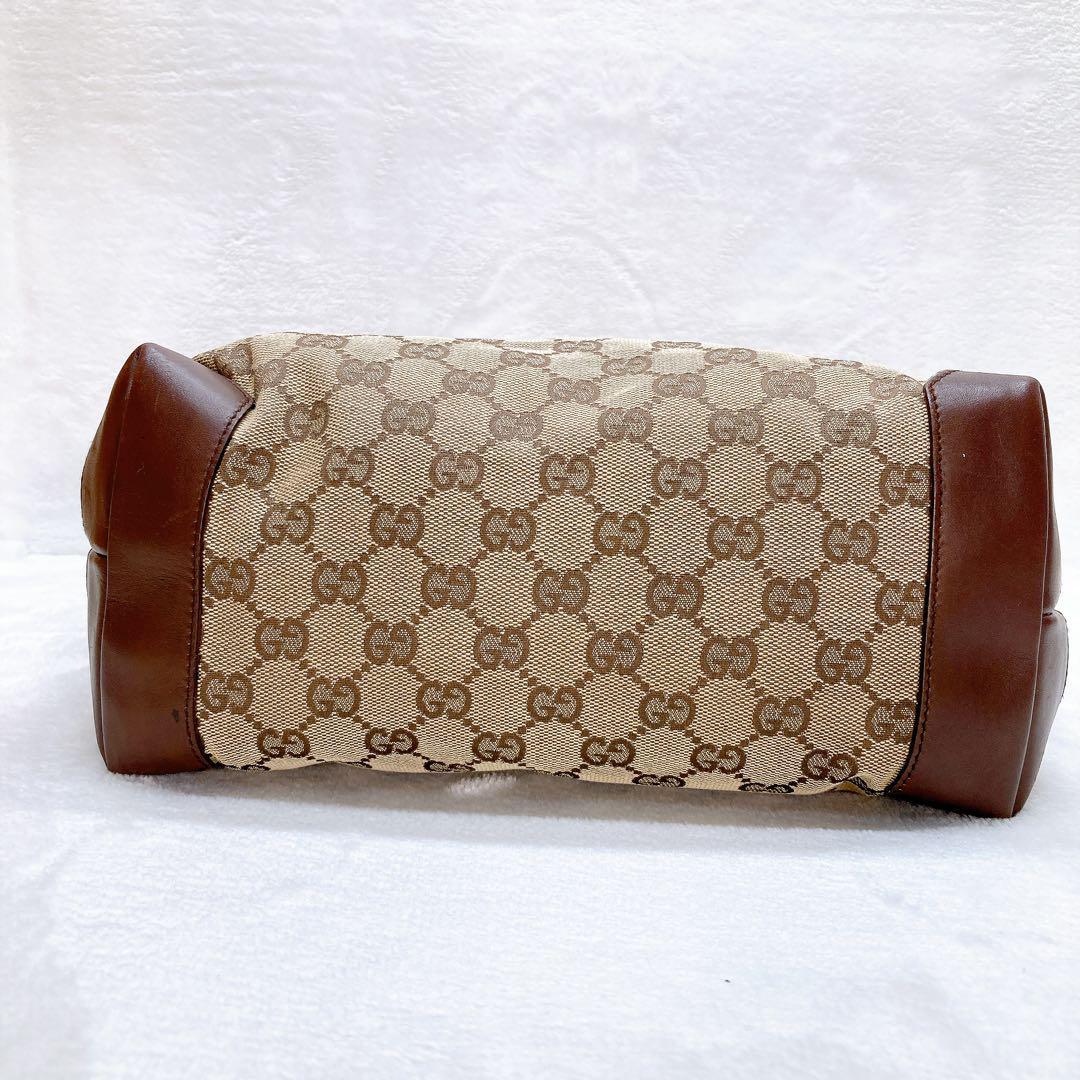 GUCCI グッチ トートバッグ GGキャンバス レザー ブラウン ロゴ