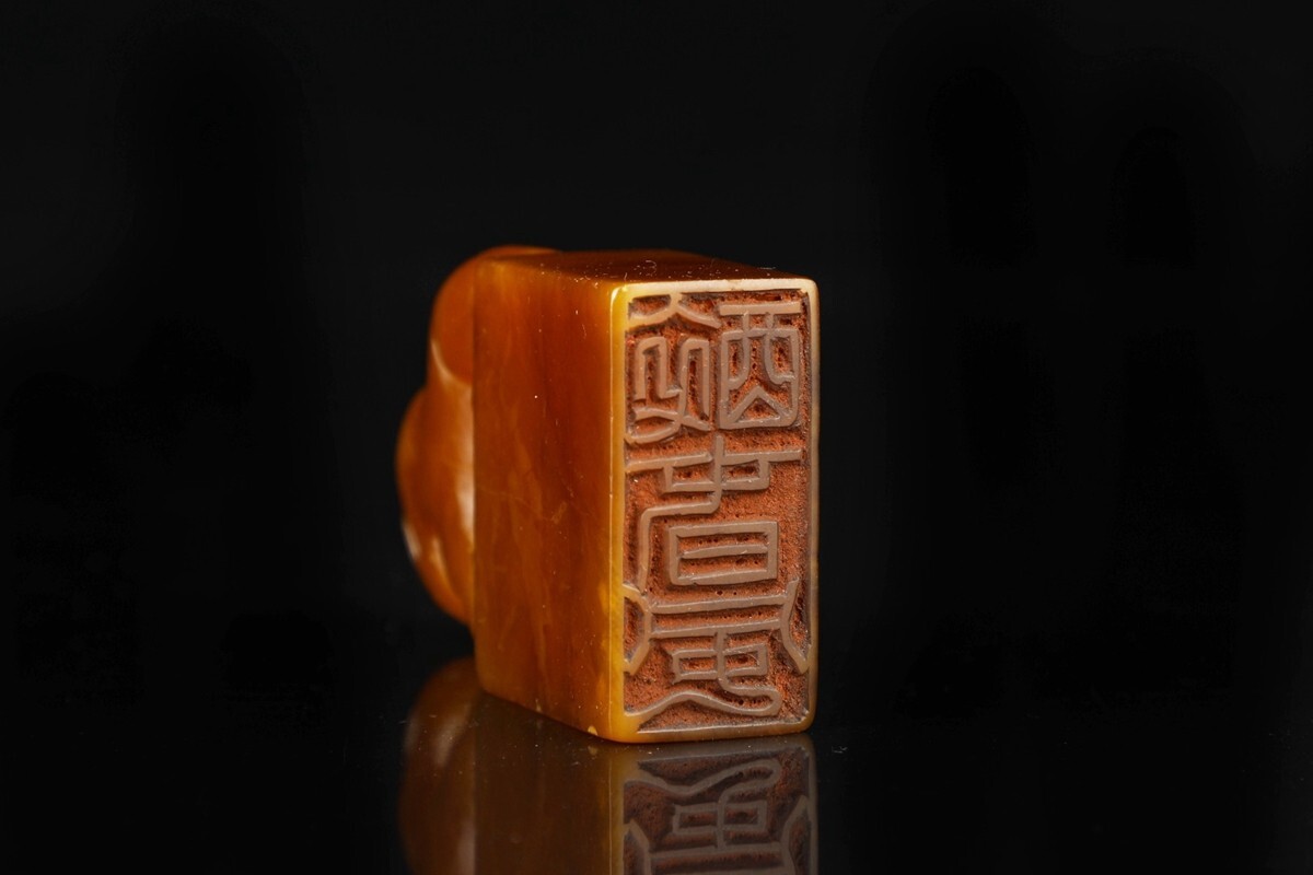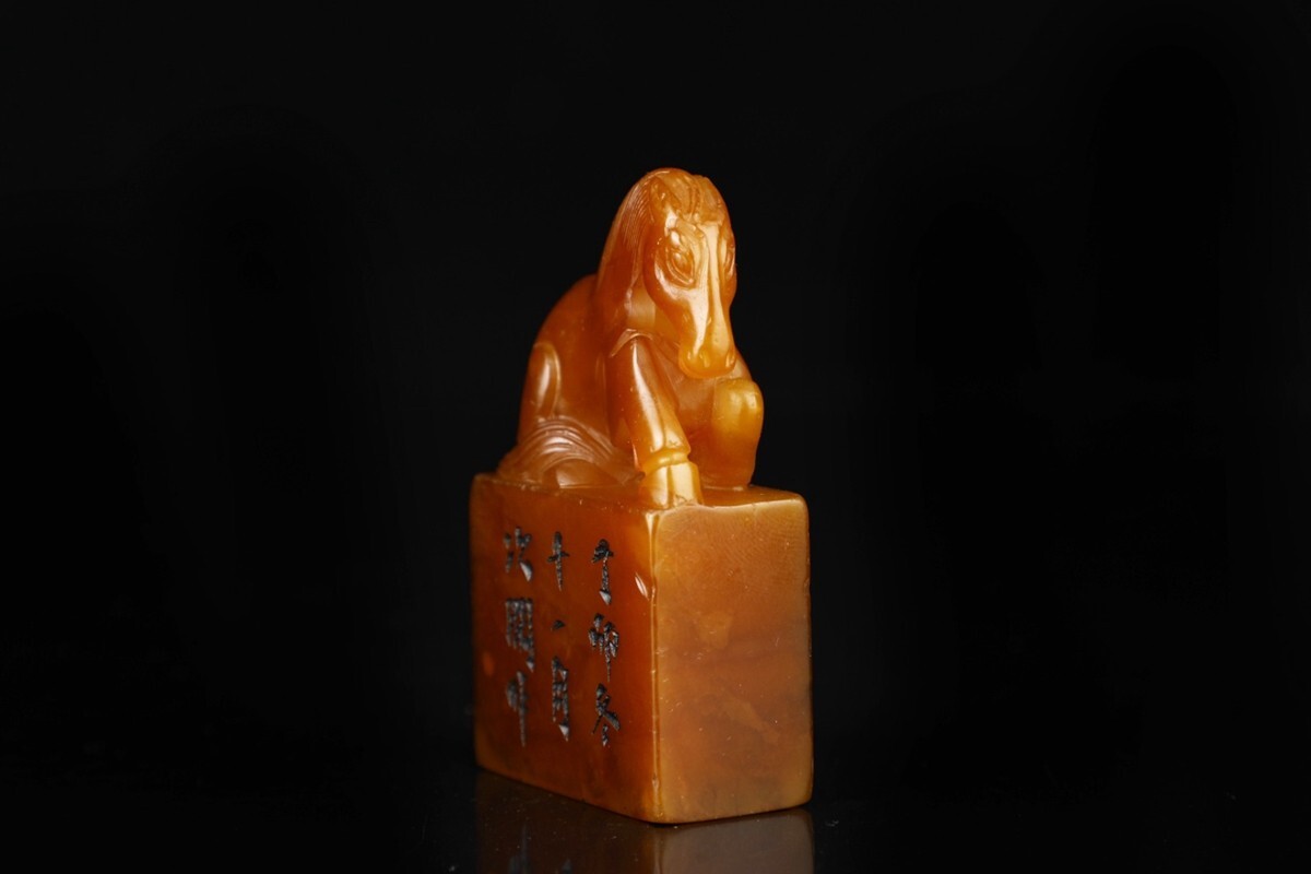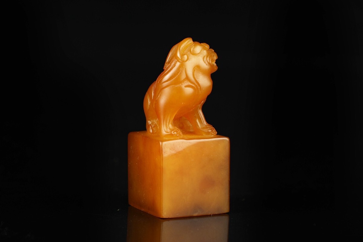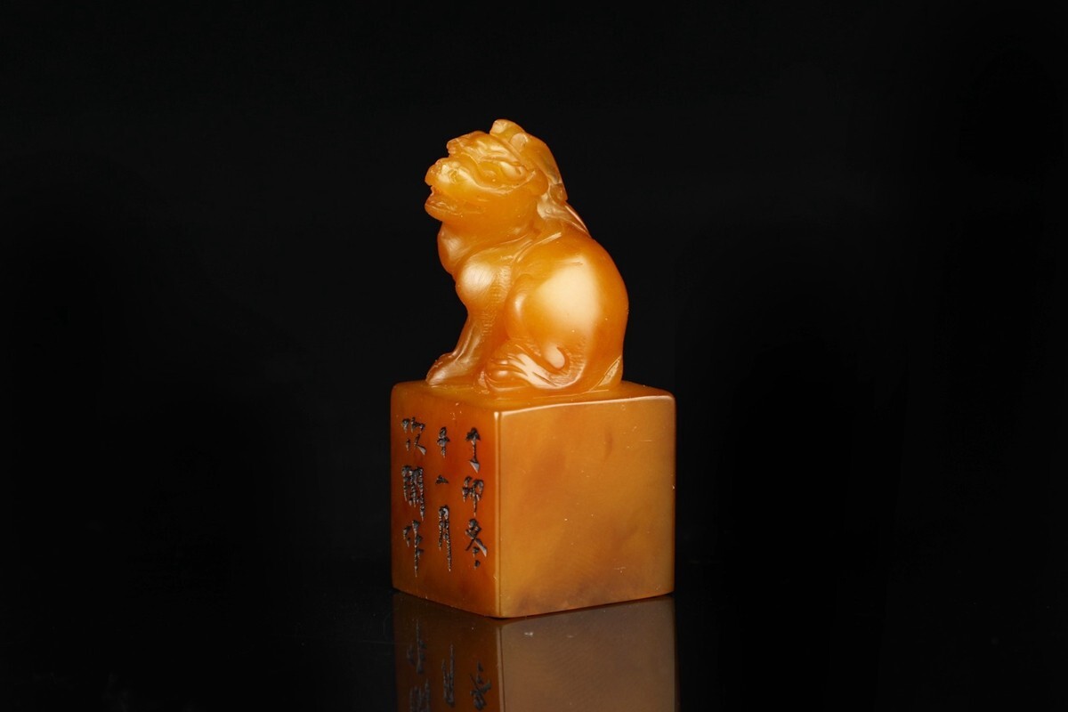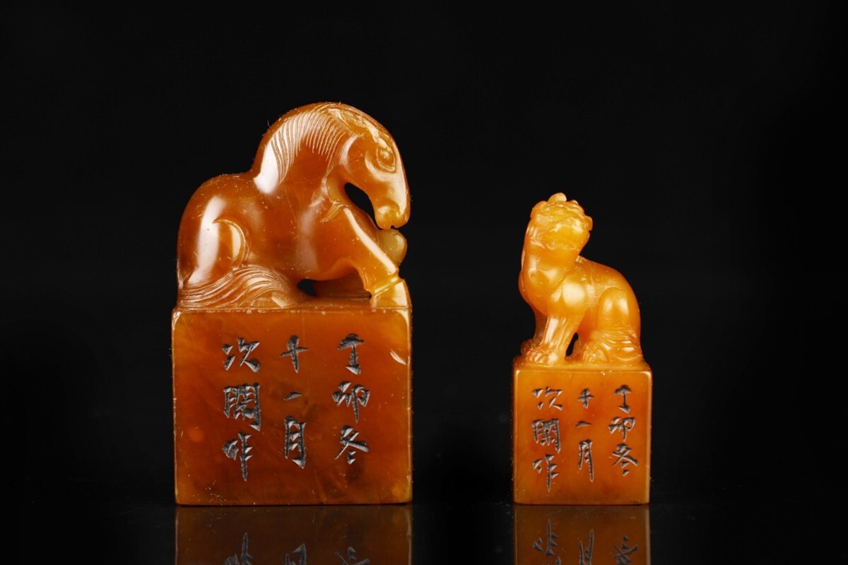 【瓏】寿山石 田黄石彫 瑞獣鈕対章 清代 次閑作 極細工 手彫り 置物擺件 中国古賞物 古美術 蔵出