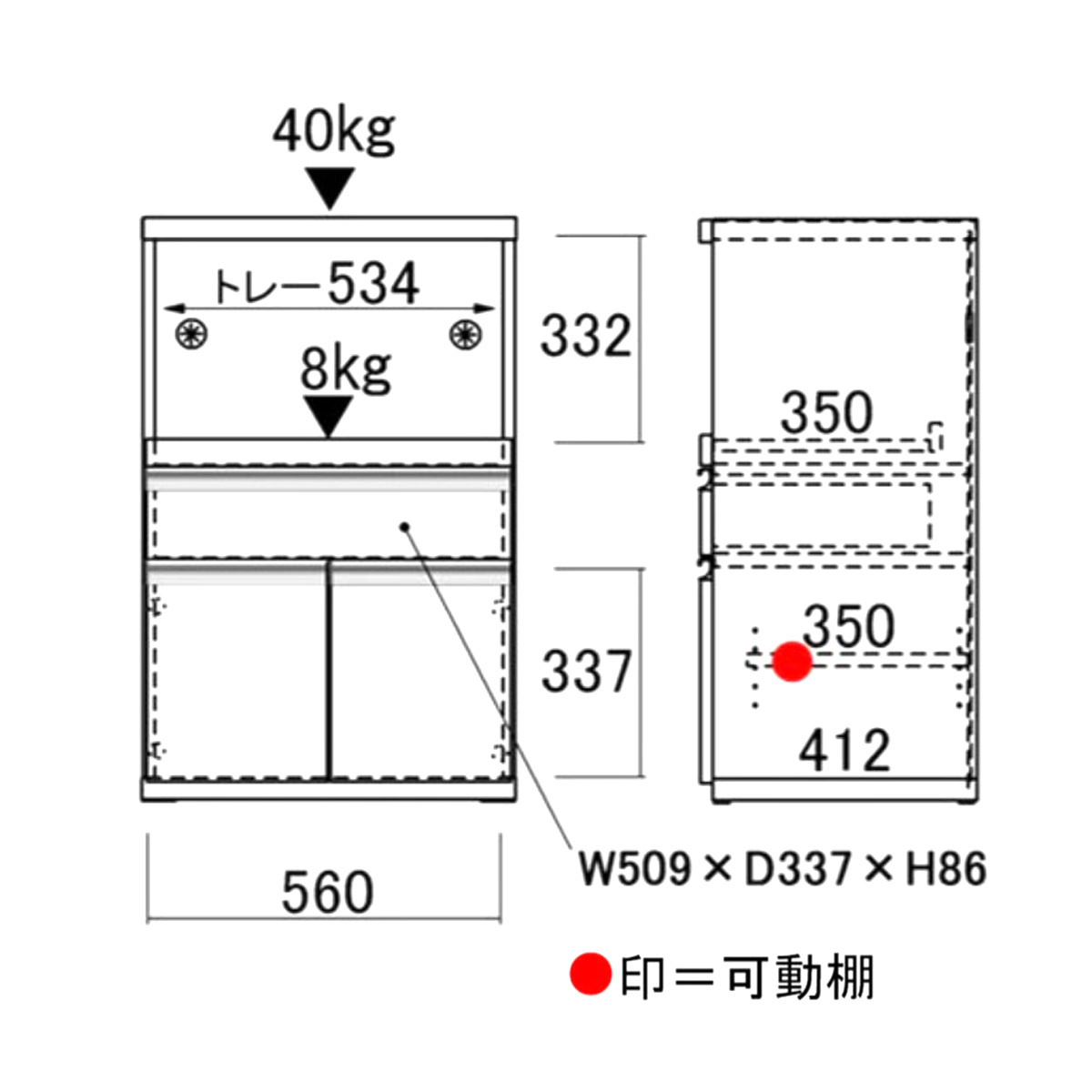 | 備考 | ・棚板 大1枚 ・天板耐荷重40kg ・スライド棚板耐荷重8kg ・完成品 |